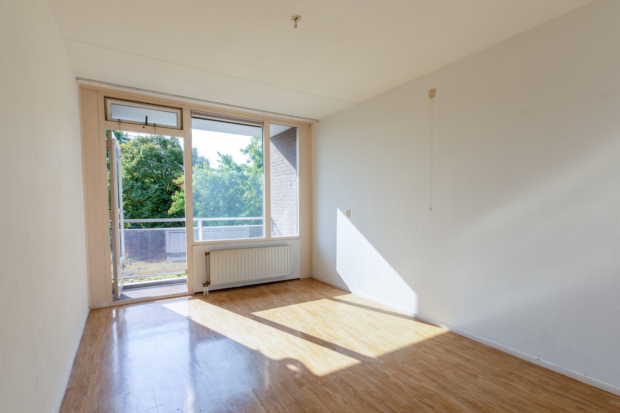 Het appartement heeft een praktische indeling. De woonkamer met open keuken biedt samen ca. 34 m² aan ruimte. De slaapkamer van ca. 12 m² is ruim genoeg voor een groot bed en kasten. Vanuit de slaapkamer is het balkon van 3 m² te betreden. De badkamer is uitgerust met een douche, wastafel en toilet. Het appartement beschikt verder over een interne berging met de CV-installatie en een externe privéberging van ruim 4 m², ideaal voor extra opslagruimte.