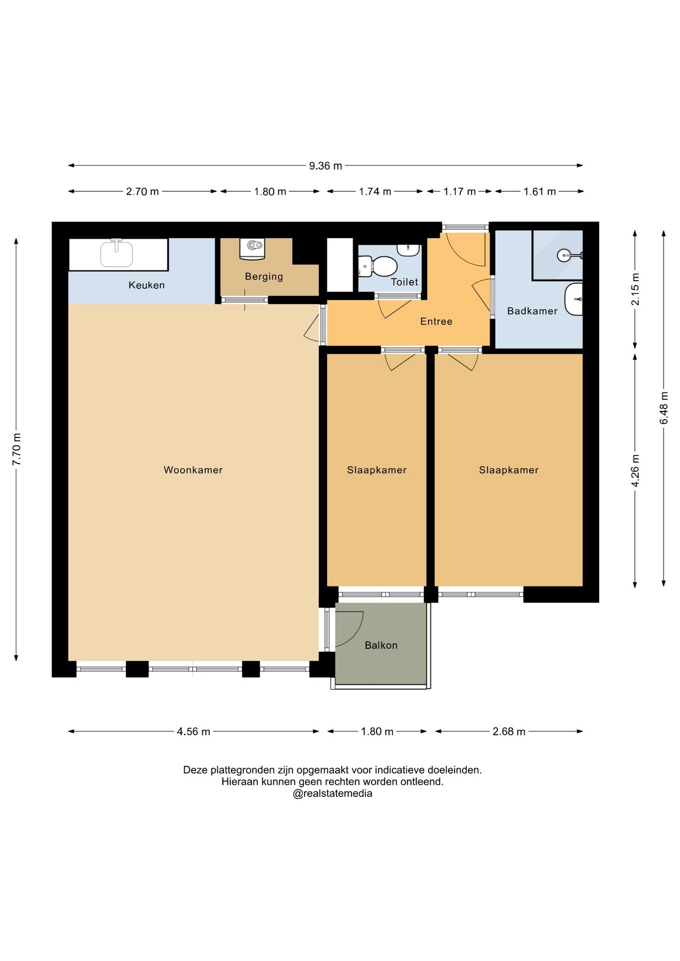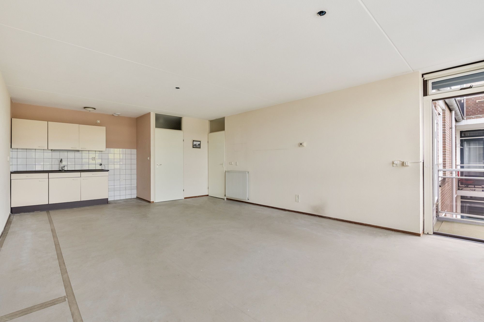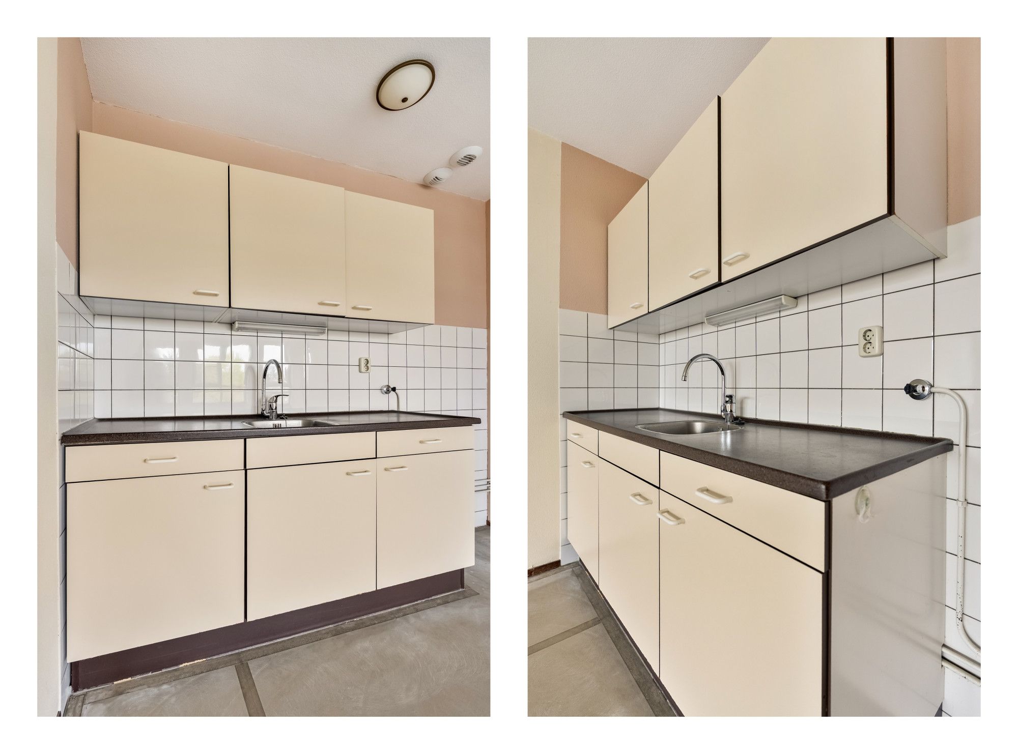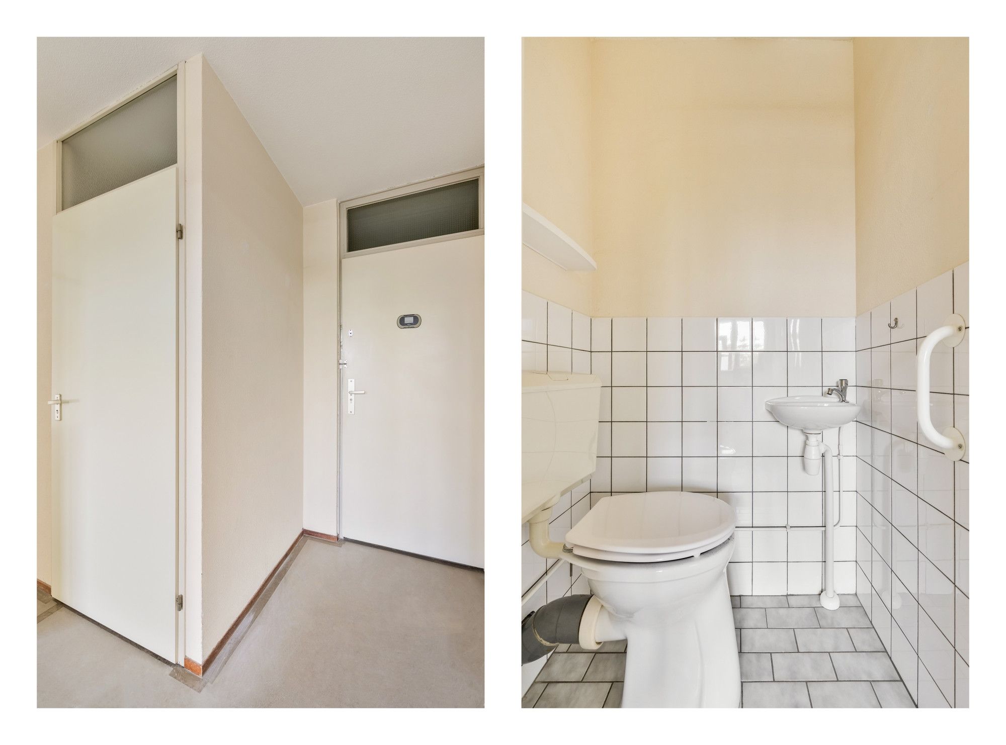 De entree met meterkast biedt toegang tot de ruime en lichte woon/eetkamer, twee slaapkamers, badkamer, toilet en de open keuken. De badkamer en het toilet zijn halfhoog betegeld. In de badkamer bevindt zich een vaste wastafel en douche. De woonkamer is ruim van opzet (ca. 35 m²) en biedt toegang tot het balkon.