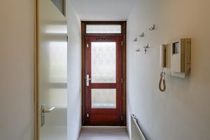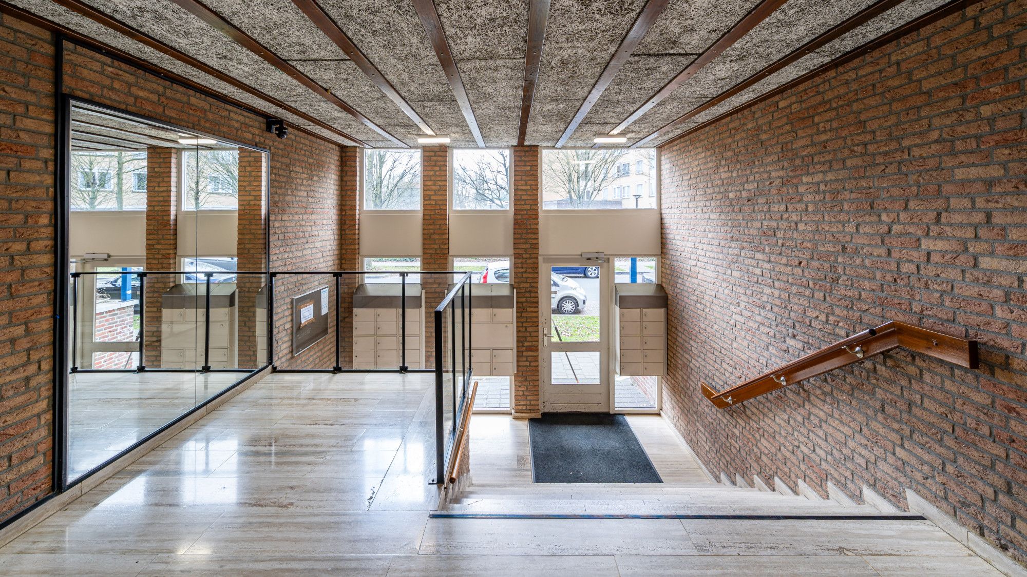 Centrale entree met beltableau met videofooninstallatie en brievenbussen. De hal geeft toegang tot het trappenhuis en de liftinstallatie.