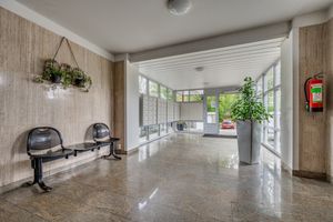 Via een overdekte entree met beltableau is de ruime centrale hal te bereiken. Vanuit de hal is via een liftinstallatie en een trappenhuis het appartement op de 3e etage te bereiken.