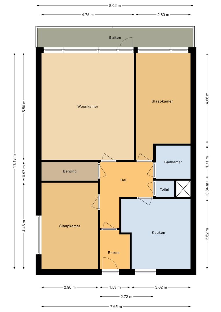 Begane grond: Centrale entree met brievenbussen en beltableau. Aparte ruime berging.