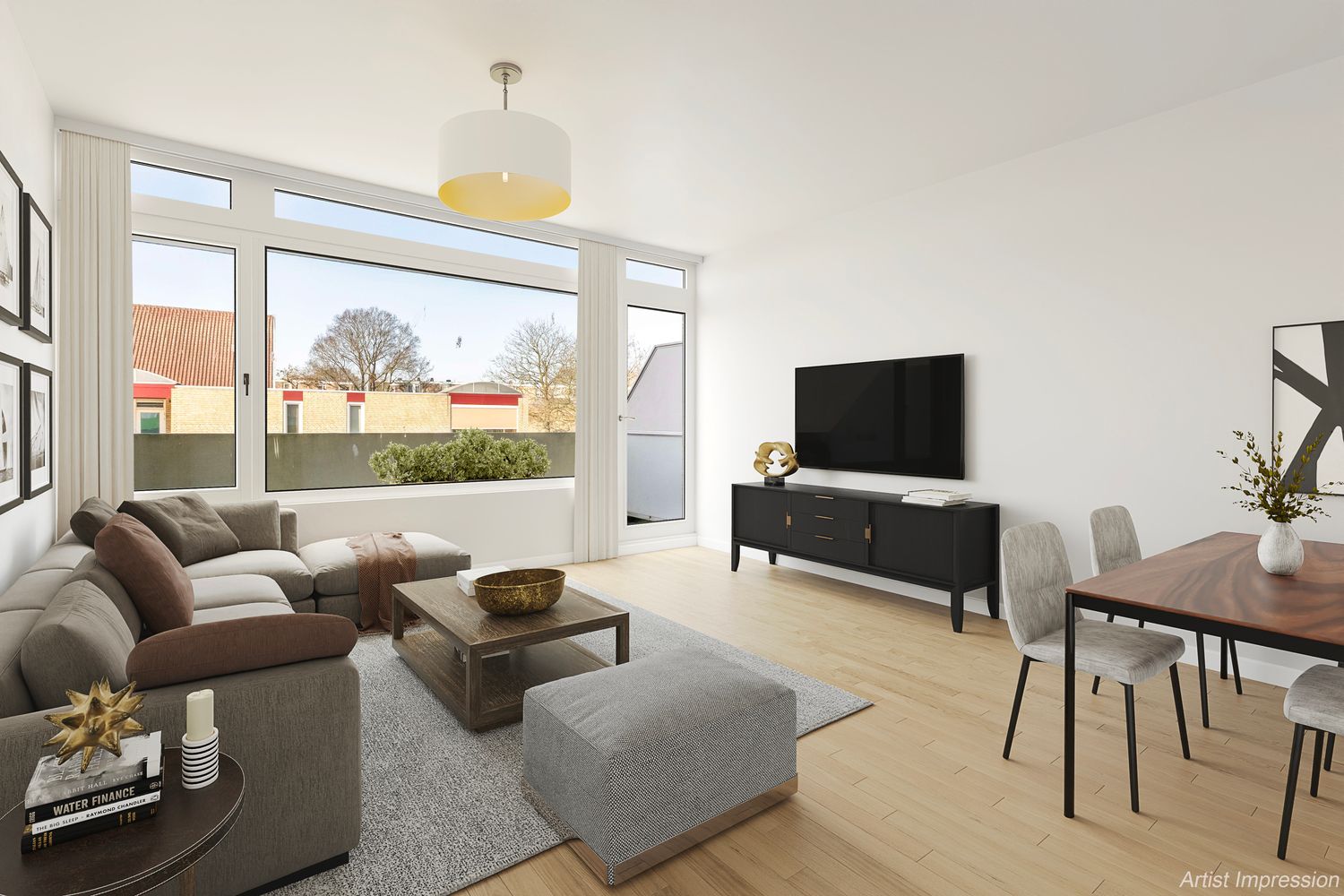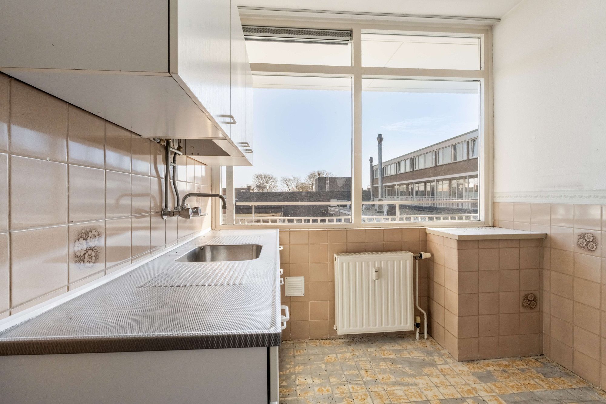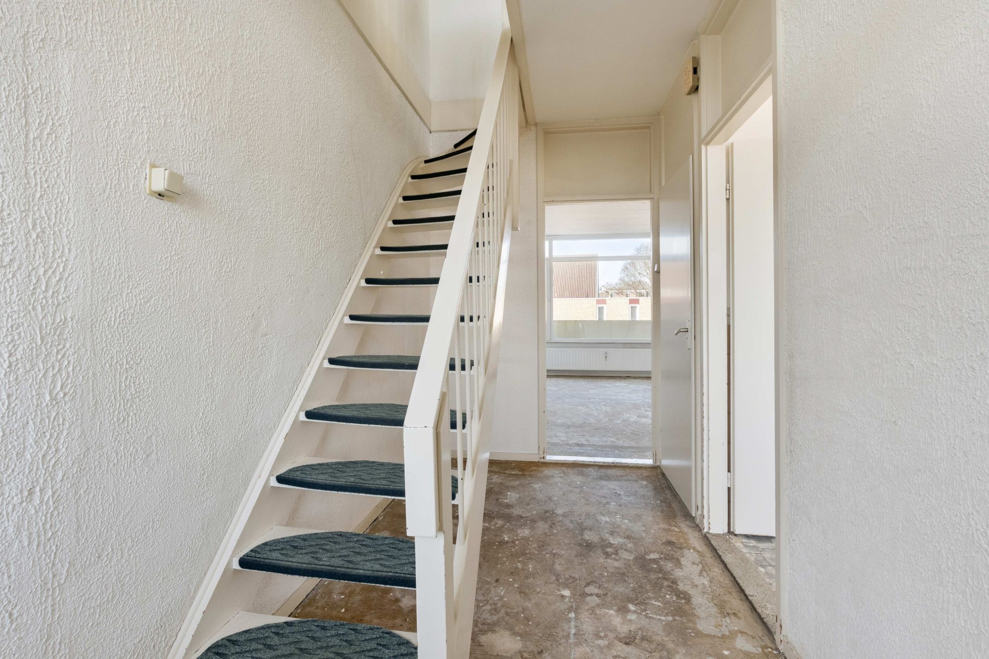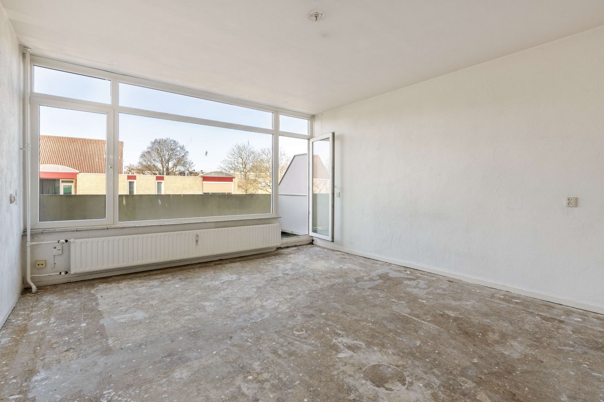 Bij binnenkomst tref je de hal, die toegang biedt tot de keuken, het separate toilet en de ruime woonkamer. De grote raampartijen zorgen voor veel natuurlijk licht, wat de ruimte een open en aangename sfeer geeft. Vanuit de woonkamer stap je het balkon op, waar je heerlijk buiten kunt zitten.