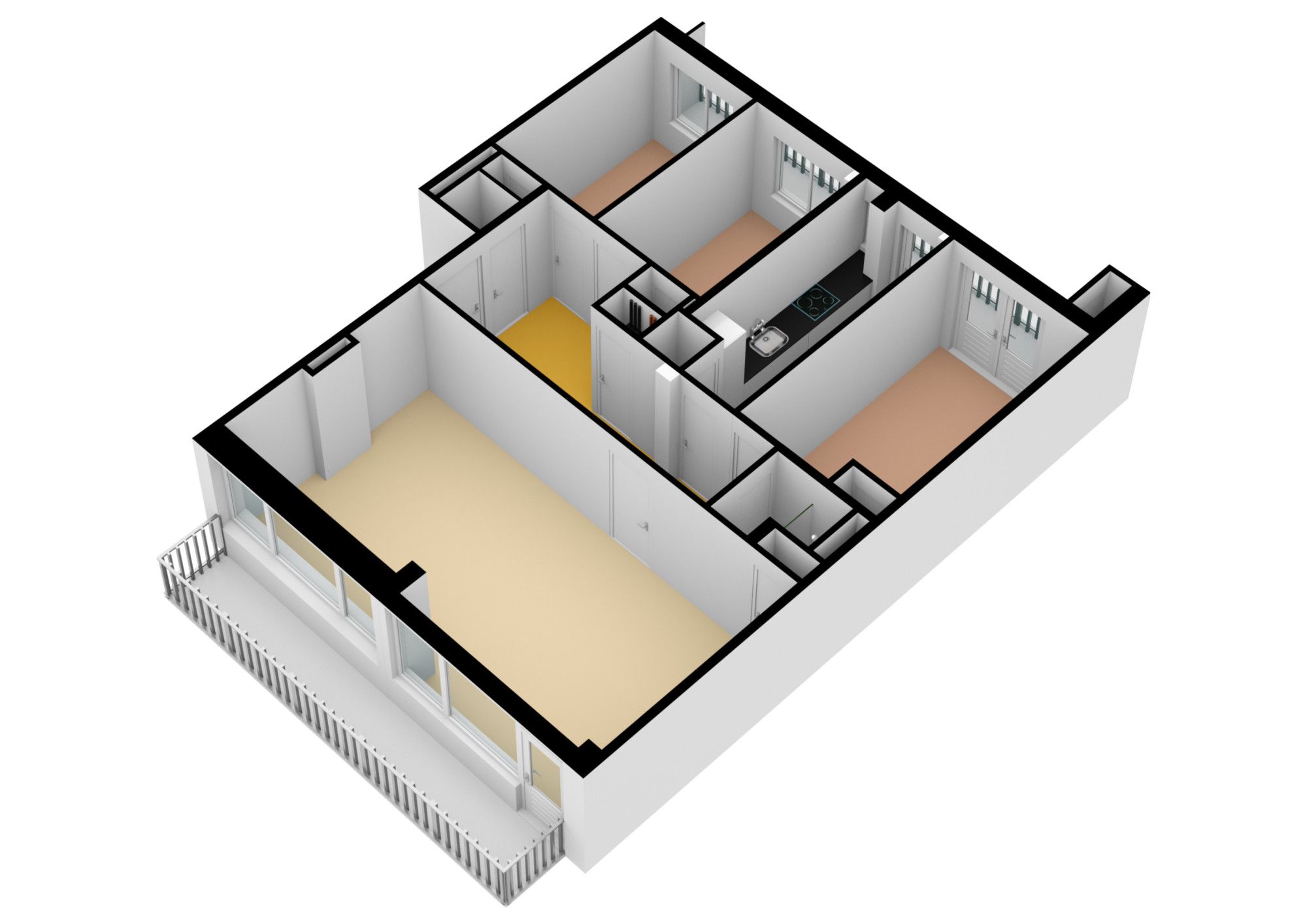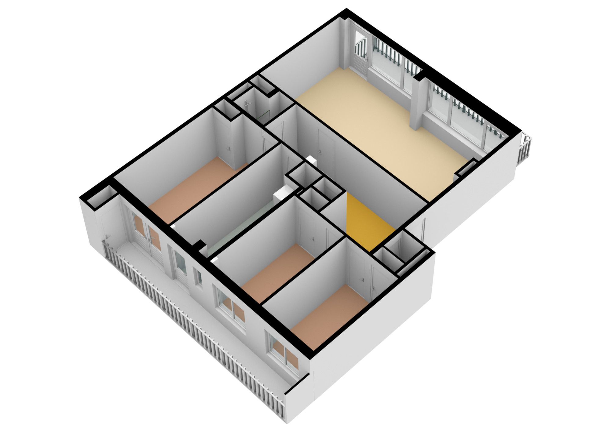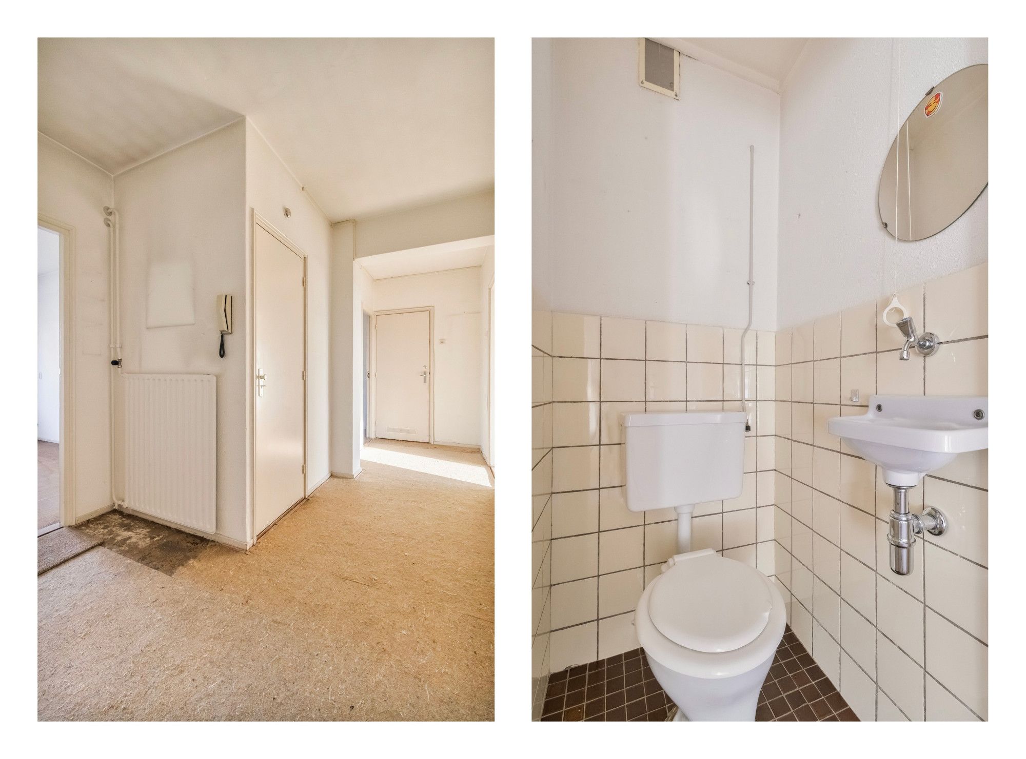 Via de royale entree/hal (ca. 12,5 m²) zijn alle vertrekken bereikbaar. De lichte en ruime woonkamer (ca. 30 m²) is voorzien van grote raampartijen en biedt toegang tot een ruim balkon van ca. 9 m². De dichte keuken (ca. 8,5 m²) beschikt over een eenvoudig keukenblok, witgoedaansluitingen en veel praktische opbergruimte. Het appartement telt drie slaapkamers van ca. 13 m², 8 m² en 8 m², allen voorzien van handige inbouwkasten. Vanuit de keuken en de grootste slaapkamer is een tweede, breed balkon van ca. 8,5 m² bereikbaar. Verder is er een badkamer met douche en vaste wastafel en een separate toiletruimte met fontein.
