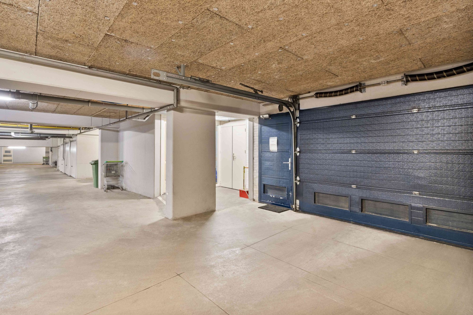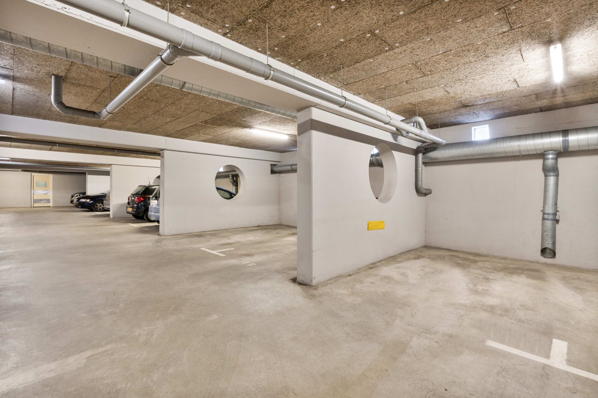 Via een hellingbaan en een op afstand bedienbare poort is de parkeerkelder bereikbaar. Hier bevinden zich een ruime parkeerplaats en een berging. De lift biedt toegang tot de parkeerkelder.
