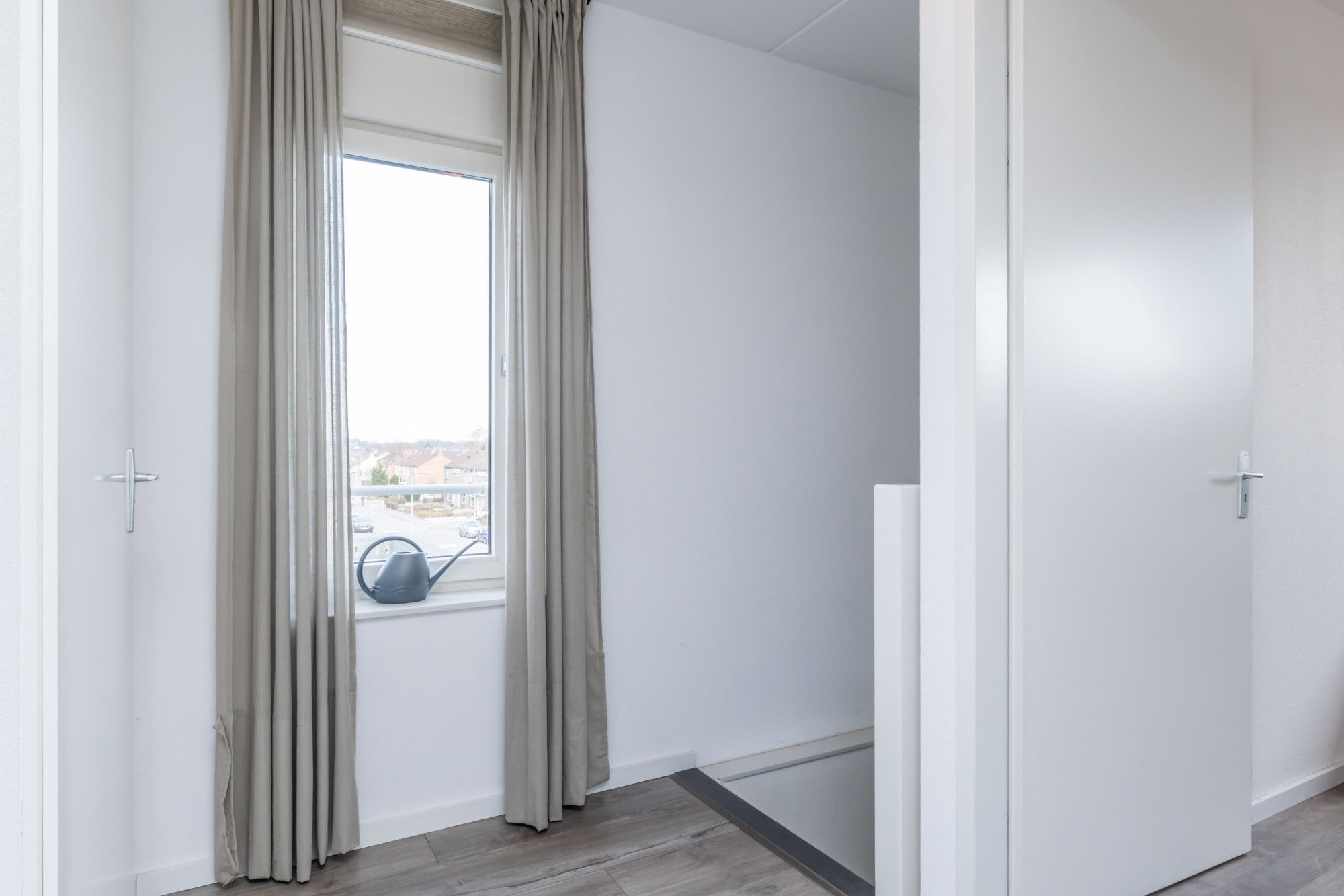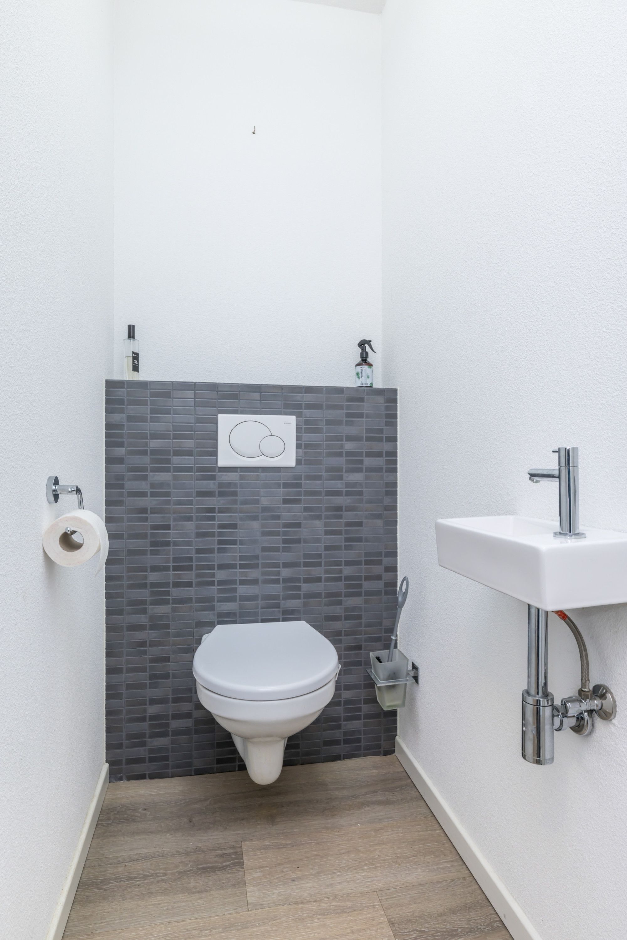 Entree/hal met meterkast (3 fase aansluiting aanwezig) en moderne toiletruimte voorzien van een zwevend closet en fontein. De ruime living (6,30 m x 5,00 m) is v.v. een pvc vloer, vanuit de woonkamer heeft men een open verbinding naar de keuken en middels openslaande deur toegang tot het dakterras.