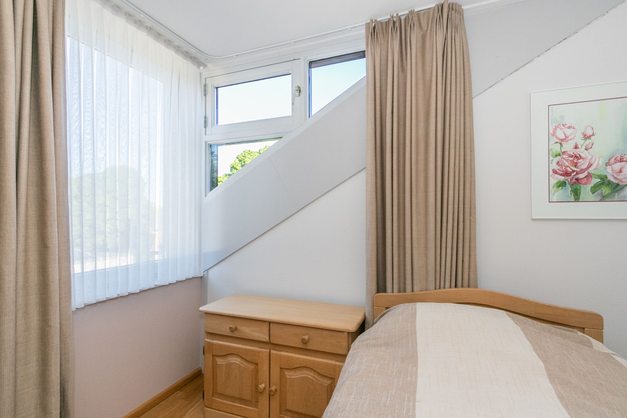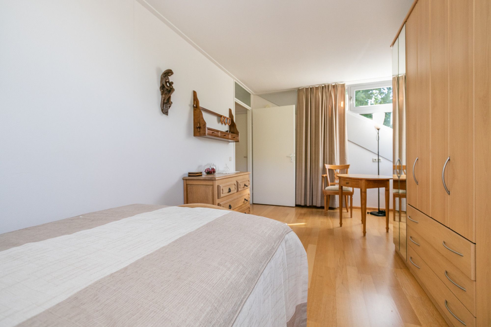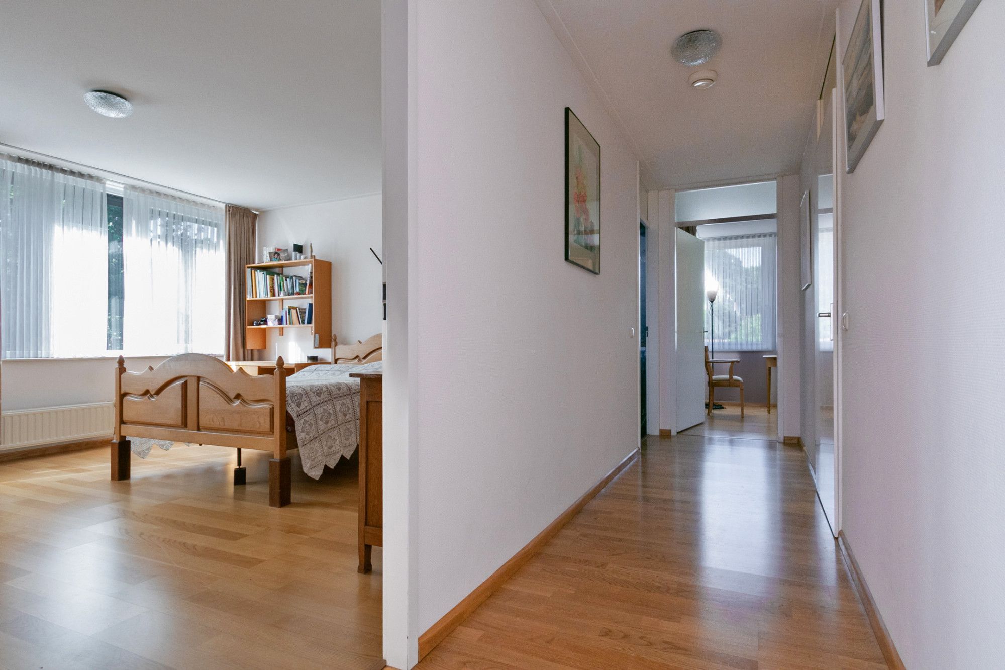 Het appartement heeft twee zeer ruime slaapkamers met een prettige lichtinval. De ruimte die nu in gebruik is als hobbykamer kan ook als derde slaapkamer worden ingericht.