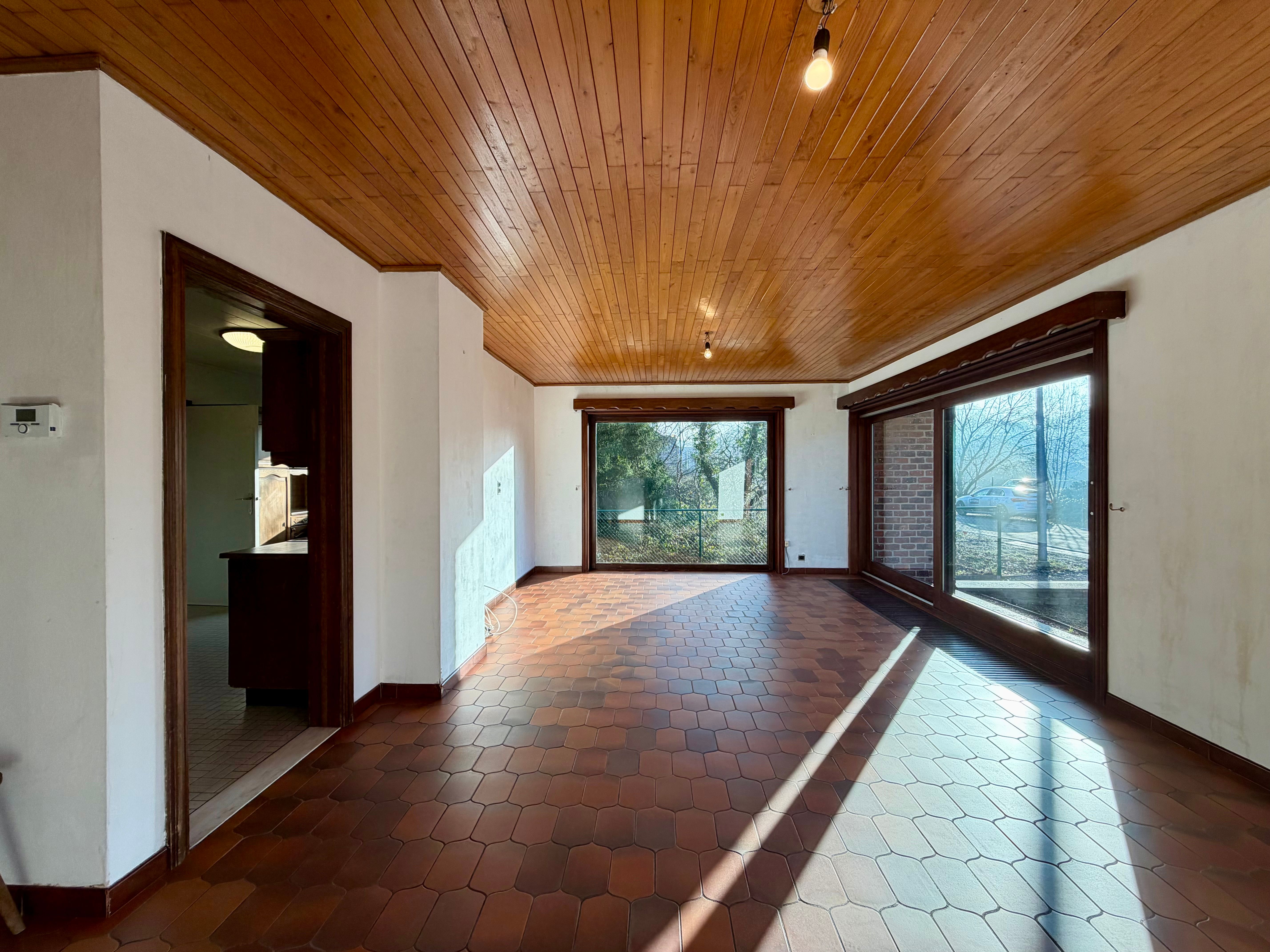 Bij het betreden van de woning kom je in een aangename inkomhal die toegang geeft tot de lichte en ruime woonkamer. Dankzij de grote raampartijen geniet je hier de hele dag door van een mooie natuurlijke lichtinval, wat zorgt voor een warme en huiselijke sfeer.