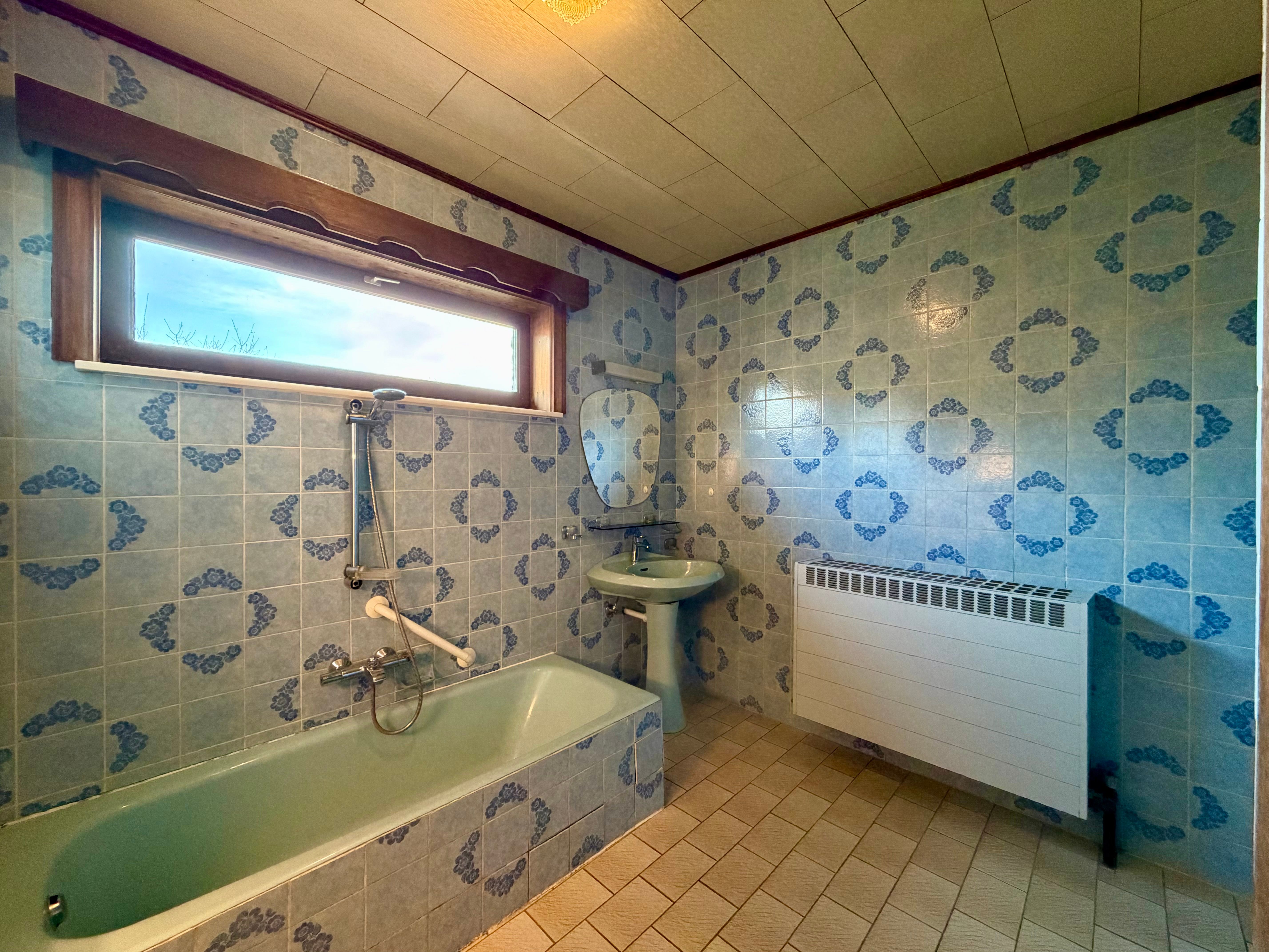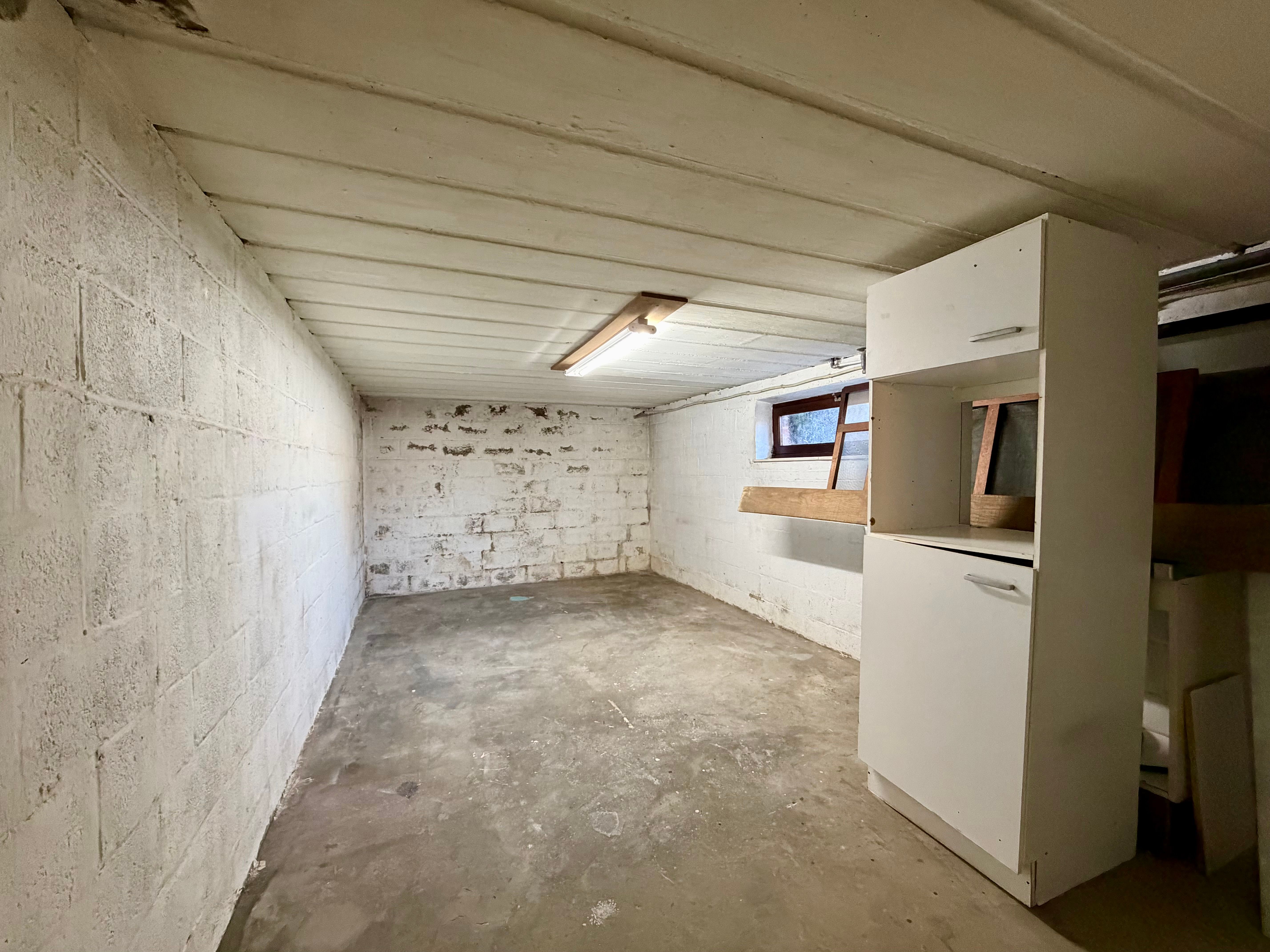 De woning beschikt over vijf volwaardige slaapkamers. De vloeren in deze kamers werden reeds verwijderd, waardoor de toekomstige eigenaar alle vrijheid krijgt om de ruimtes naar eigen wens af te werken of te renoveren. Verder is er een badkamer met ligbad, toilet en bidet, een apart gastentoilet en een inpandige garage.