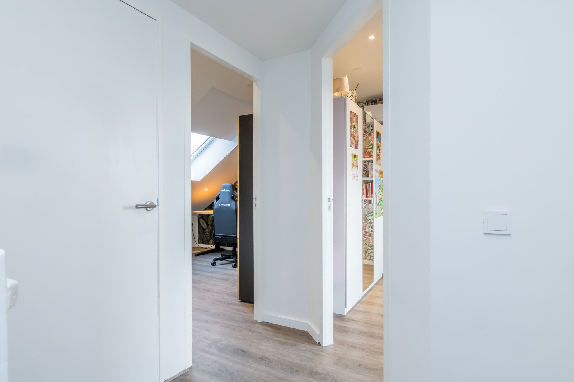De overloop biedt toegang tot de slaapvertrekken en de badkamer.