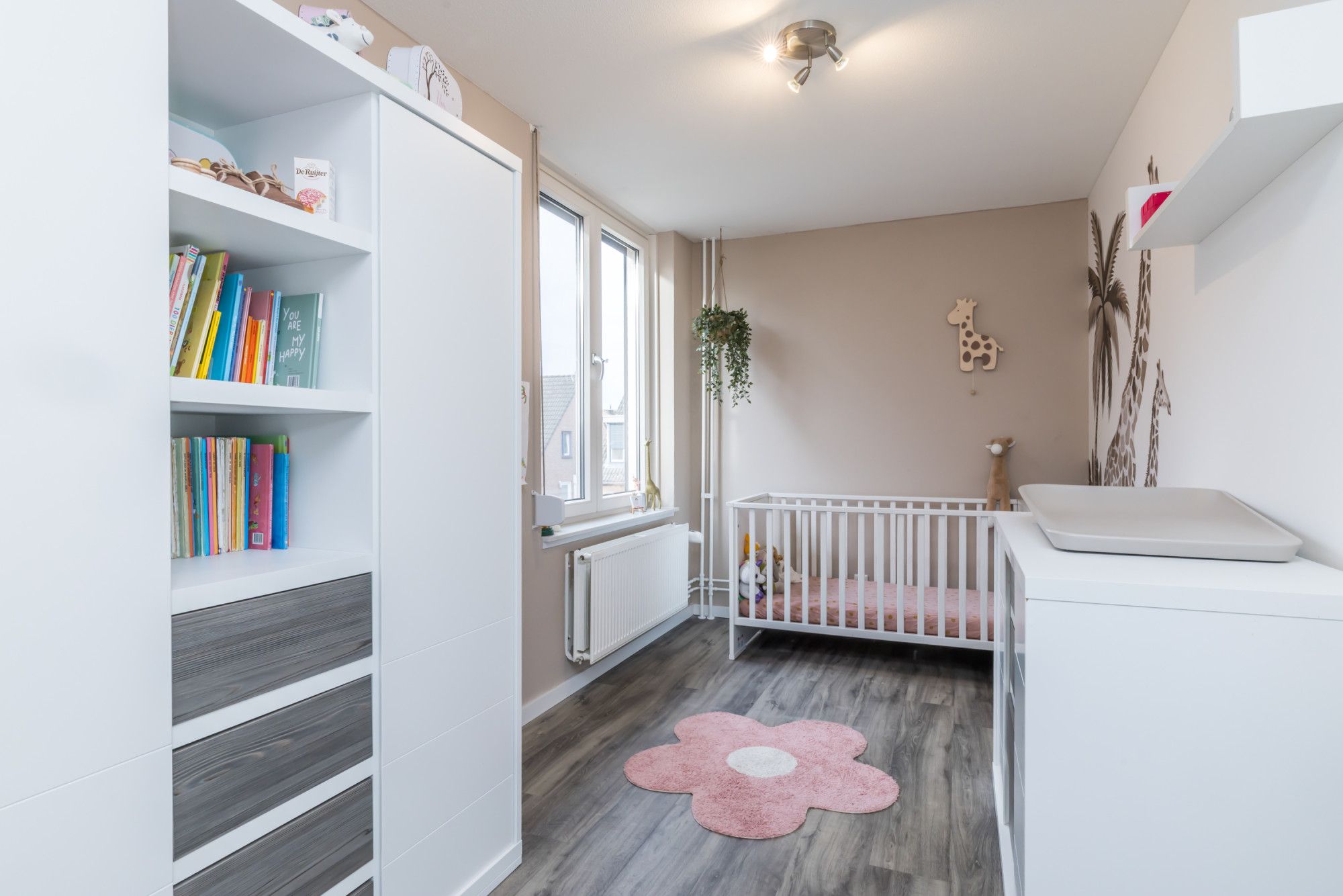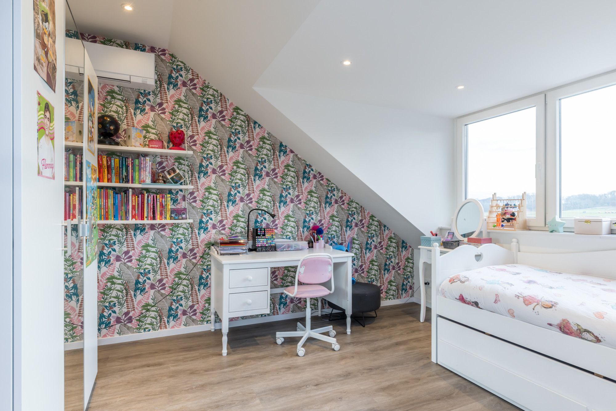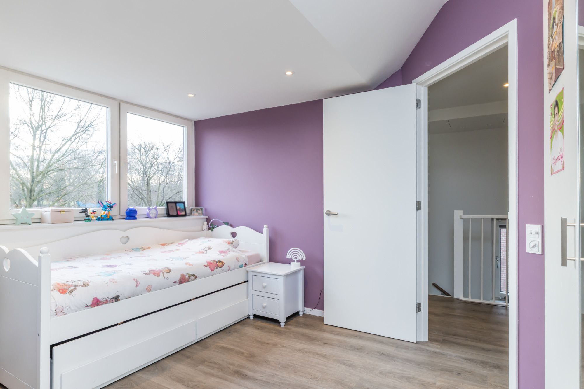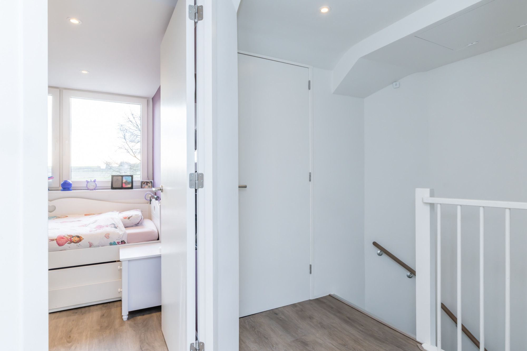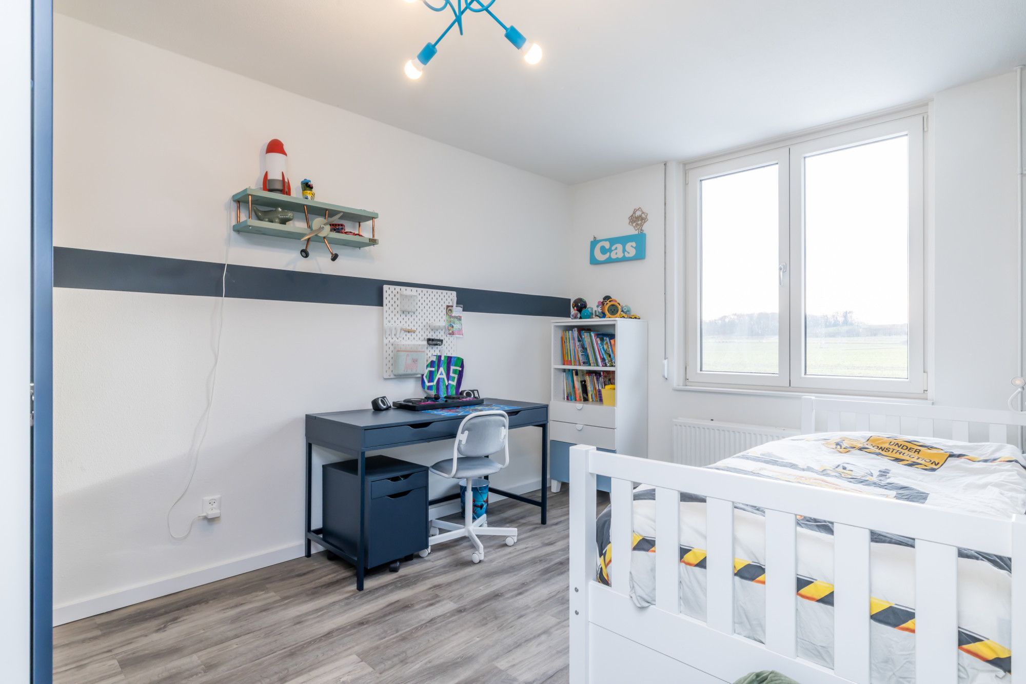 De derde slaapkamer ligt linksachter en doet dienst als kinderkamer.