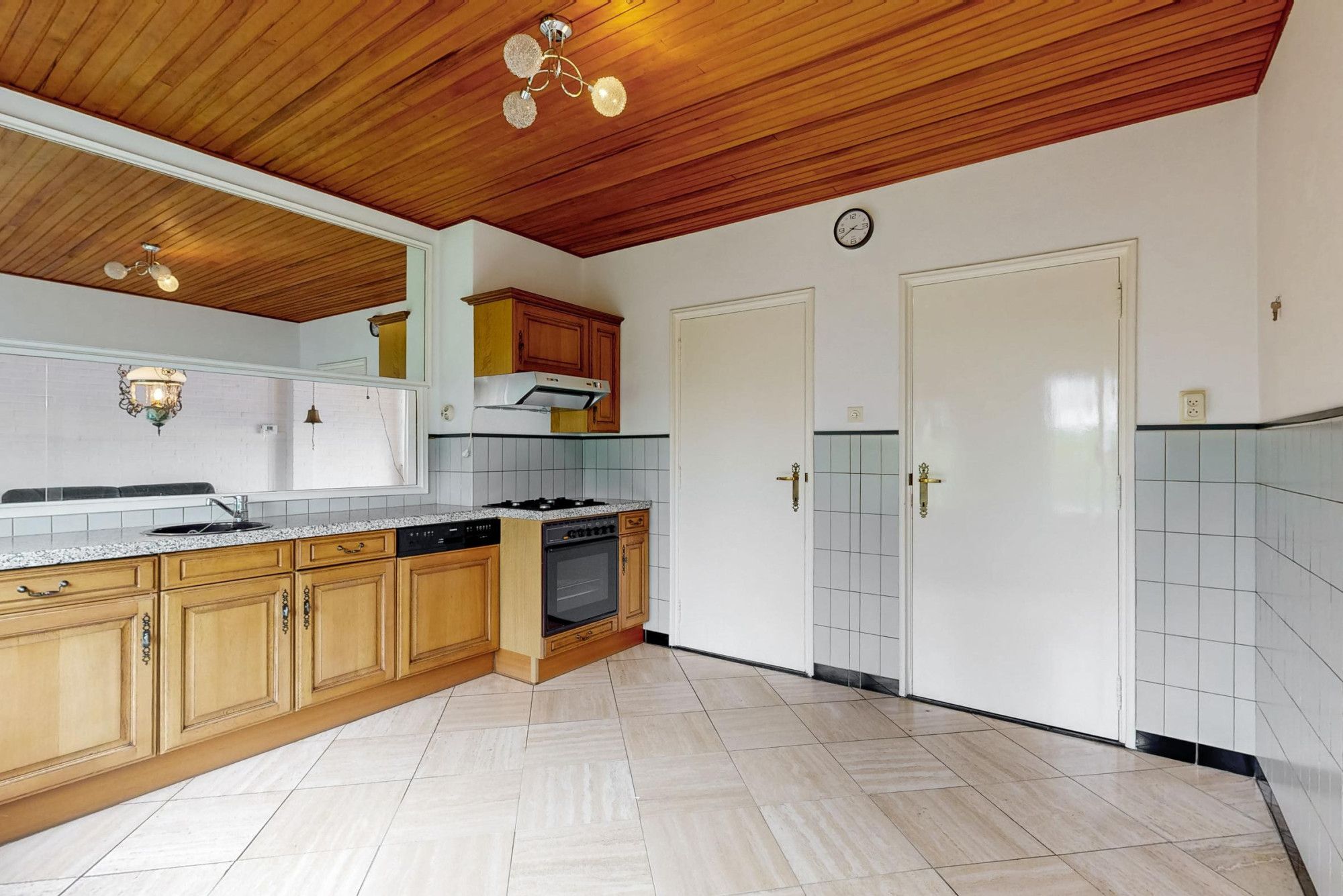 De ruime 2e keuken(3.78mx3.53m) met tegelvloer, aanbouwkeuken in een hoekopstelling is van alle gemakken voorzien: oven, gasfornuis,, afzuigkap, vaatwasser, koelkast. balkon, prachtig uitzicht over het hele weiland.