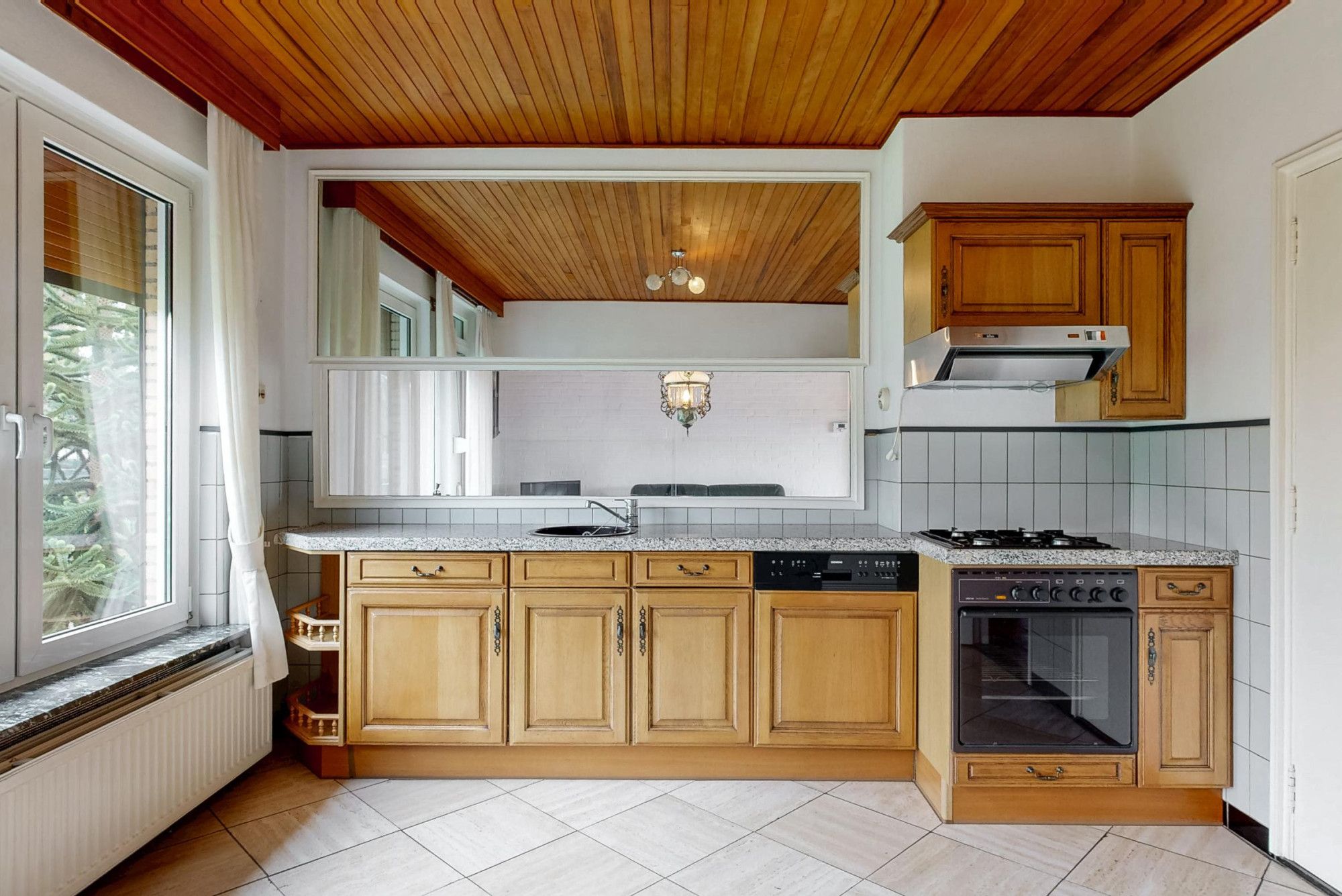 Keuken(3.62mx2.61m), met marmerenvloer en aanbouwkeuken inclusief apparatuur w.o. : gasfornuis, oven, vaatwasser, opstelplaats c.v. - ketel (eigendom).