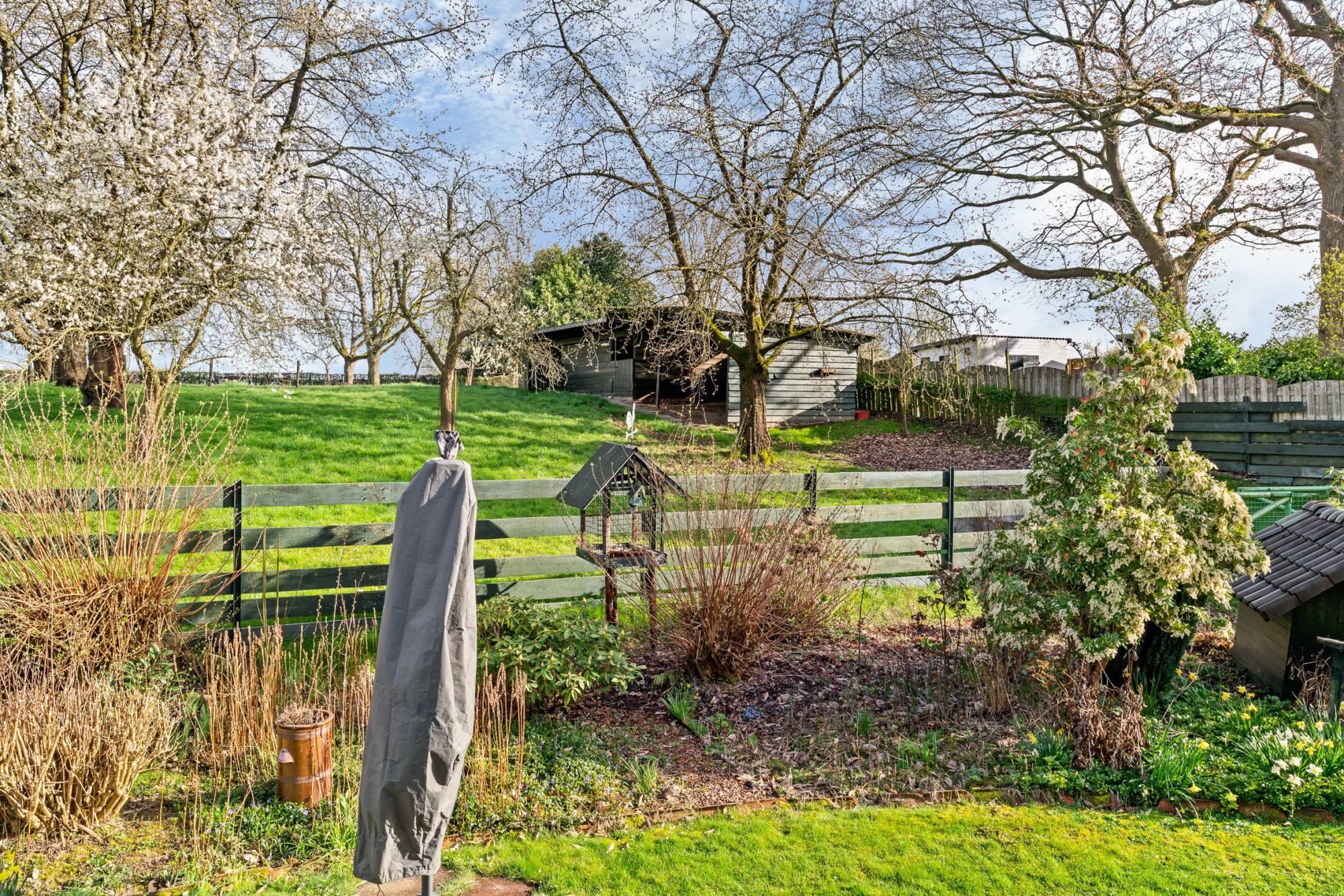 Vrijstaand oerdegelijk woonhuis met cenrale verwarming, grote garageberging en schuren in het weiland, totale opp: 775m2.