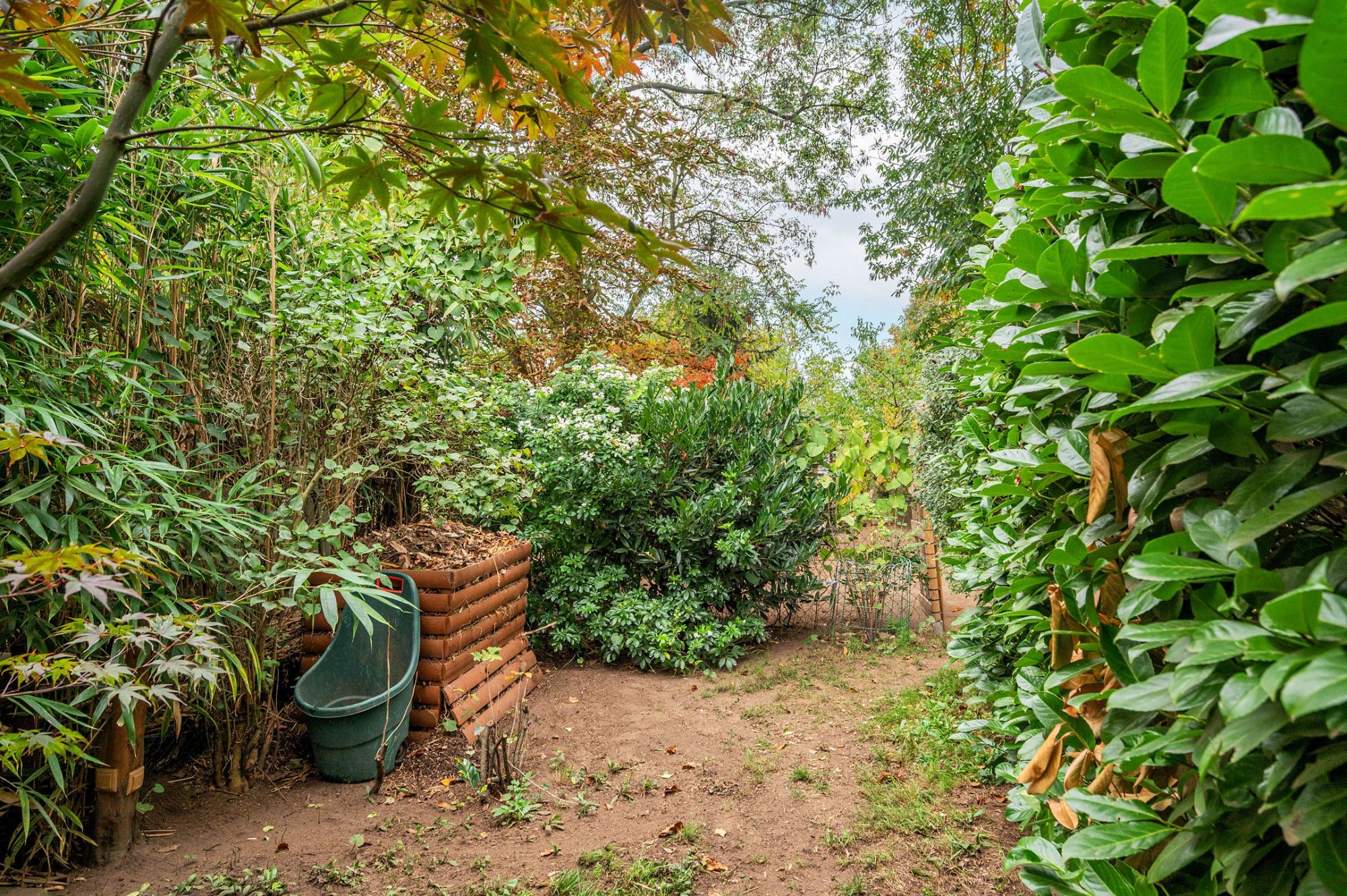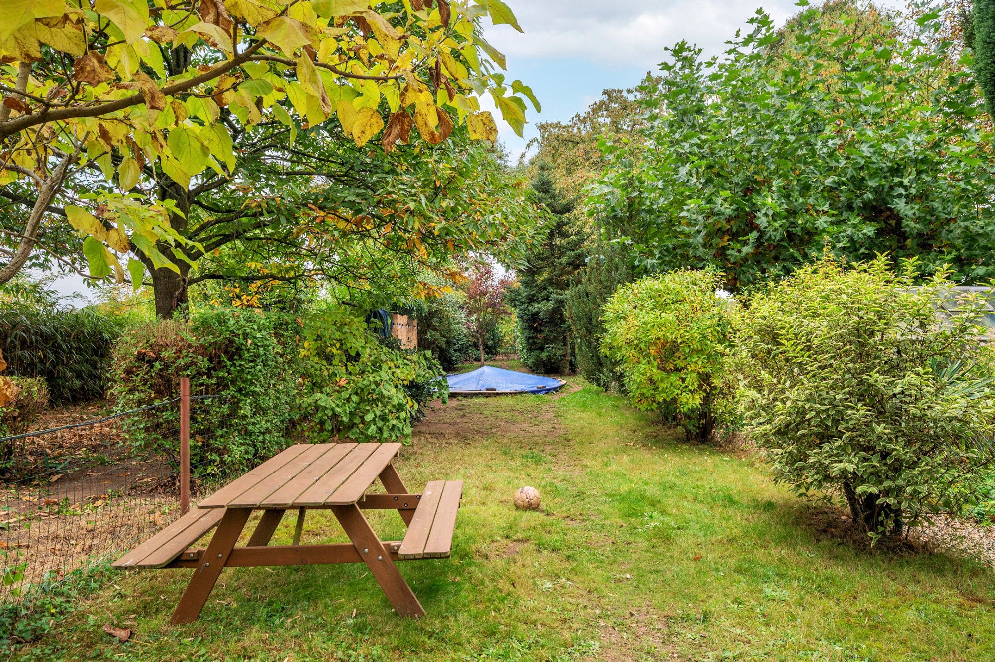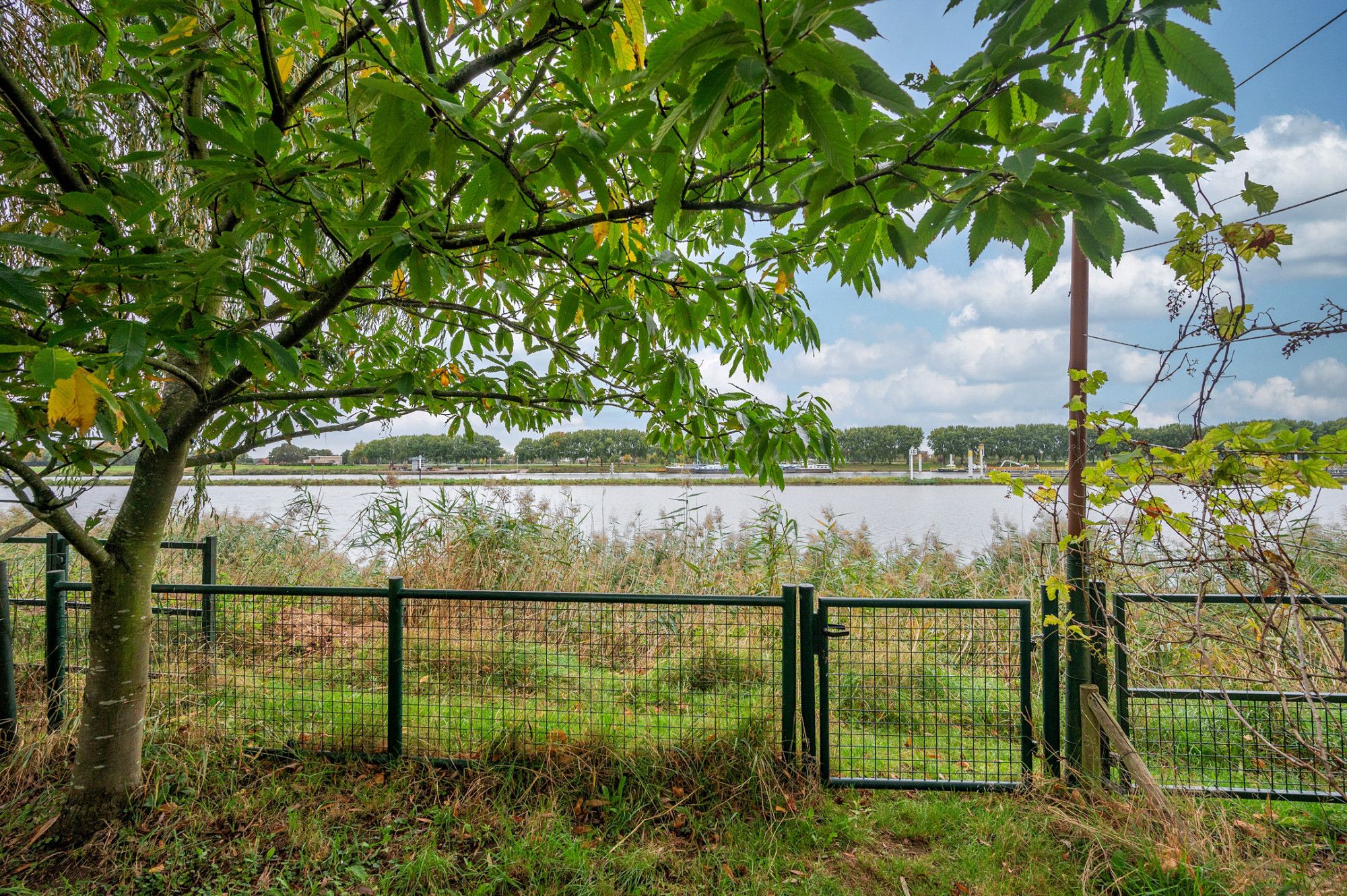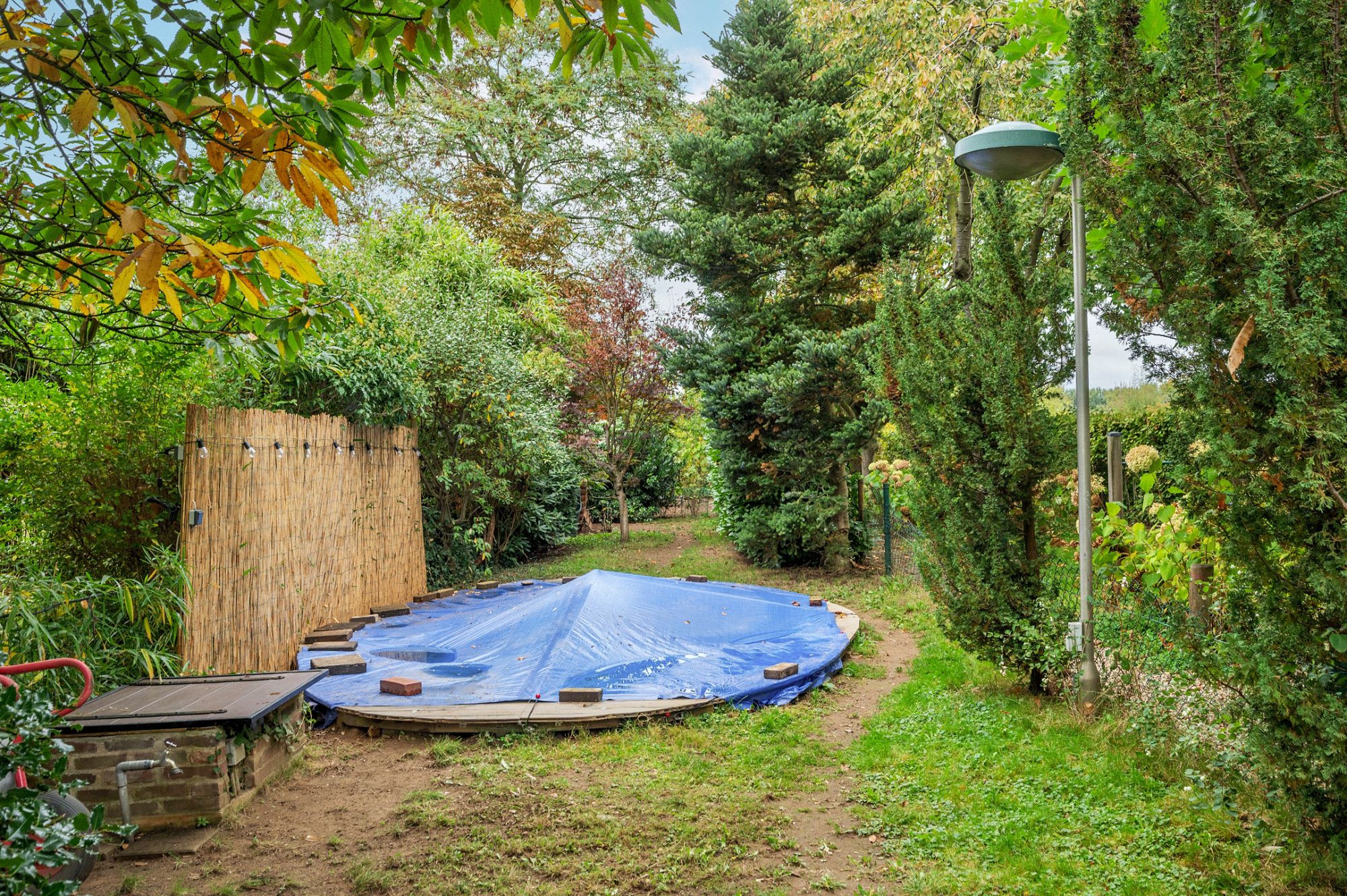 Middels de bijkeuken is de buitenruimte te bereiken. Hier is een betegeld terras aanwezig. De garage is aan de achterzijde gelegen en biedt de mogelijkheid om een auto binnen te zetten en geeft toegang tot de ruime hobbyruimte. De riante tuin met zeer veel groen heeft volledige privacy en beschikt over een zwembad. De achtertuin is ruim 120m² diep en geeft een prachtig uitzicht op de Maas en haar uiterwaarden.