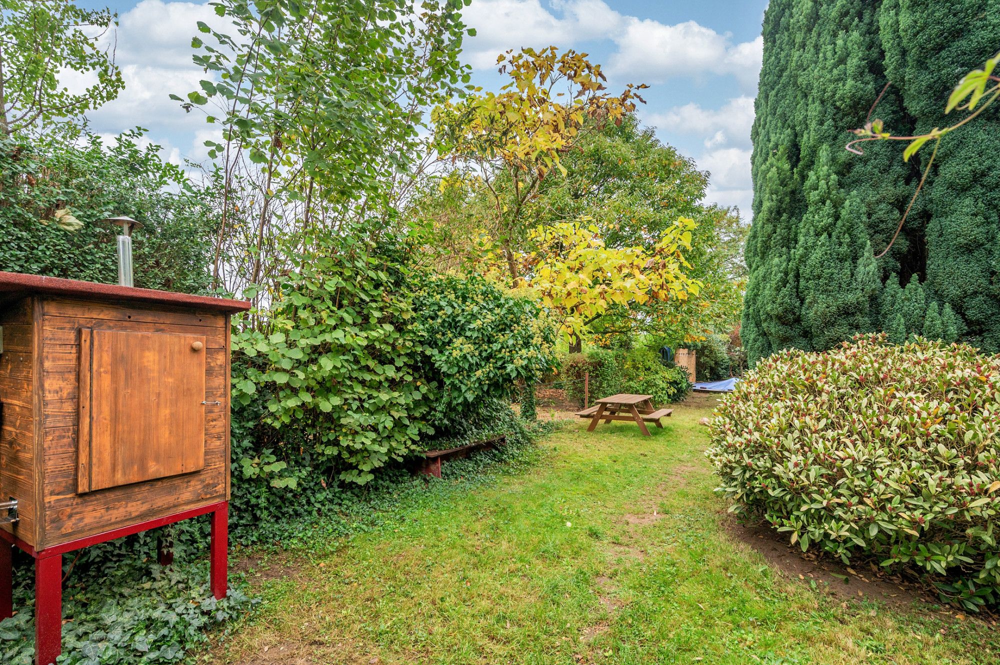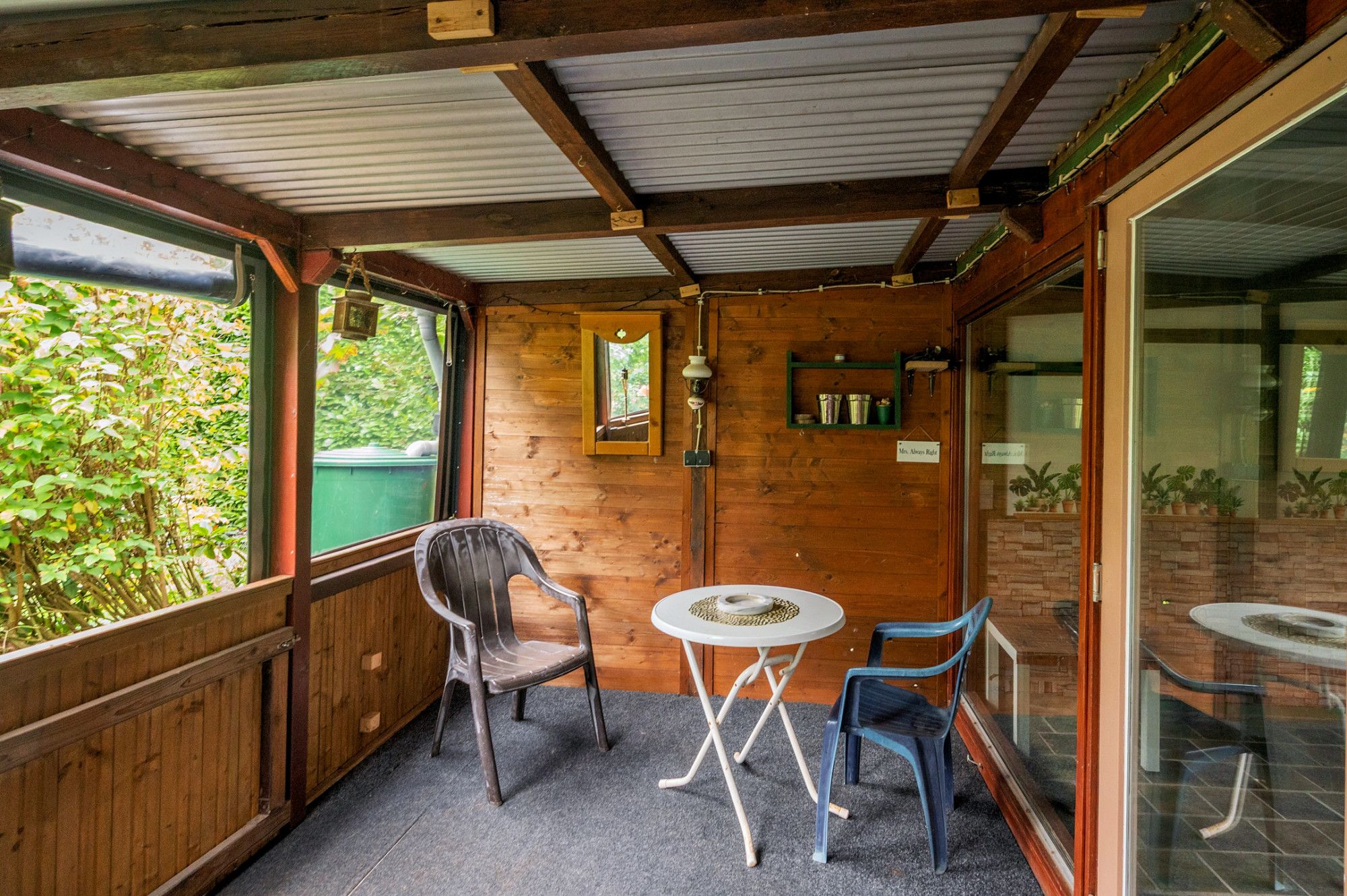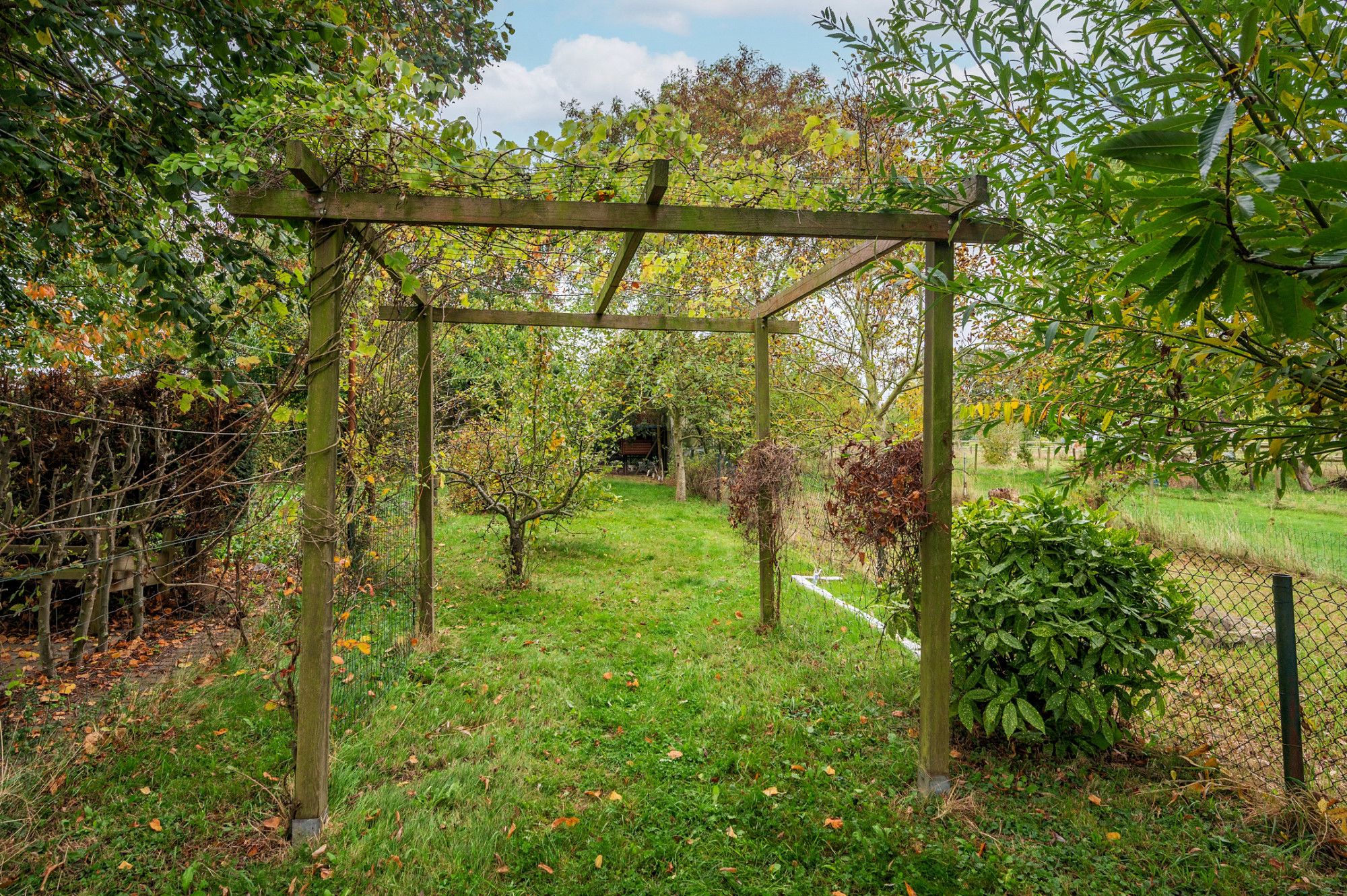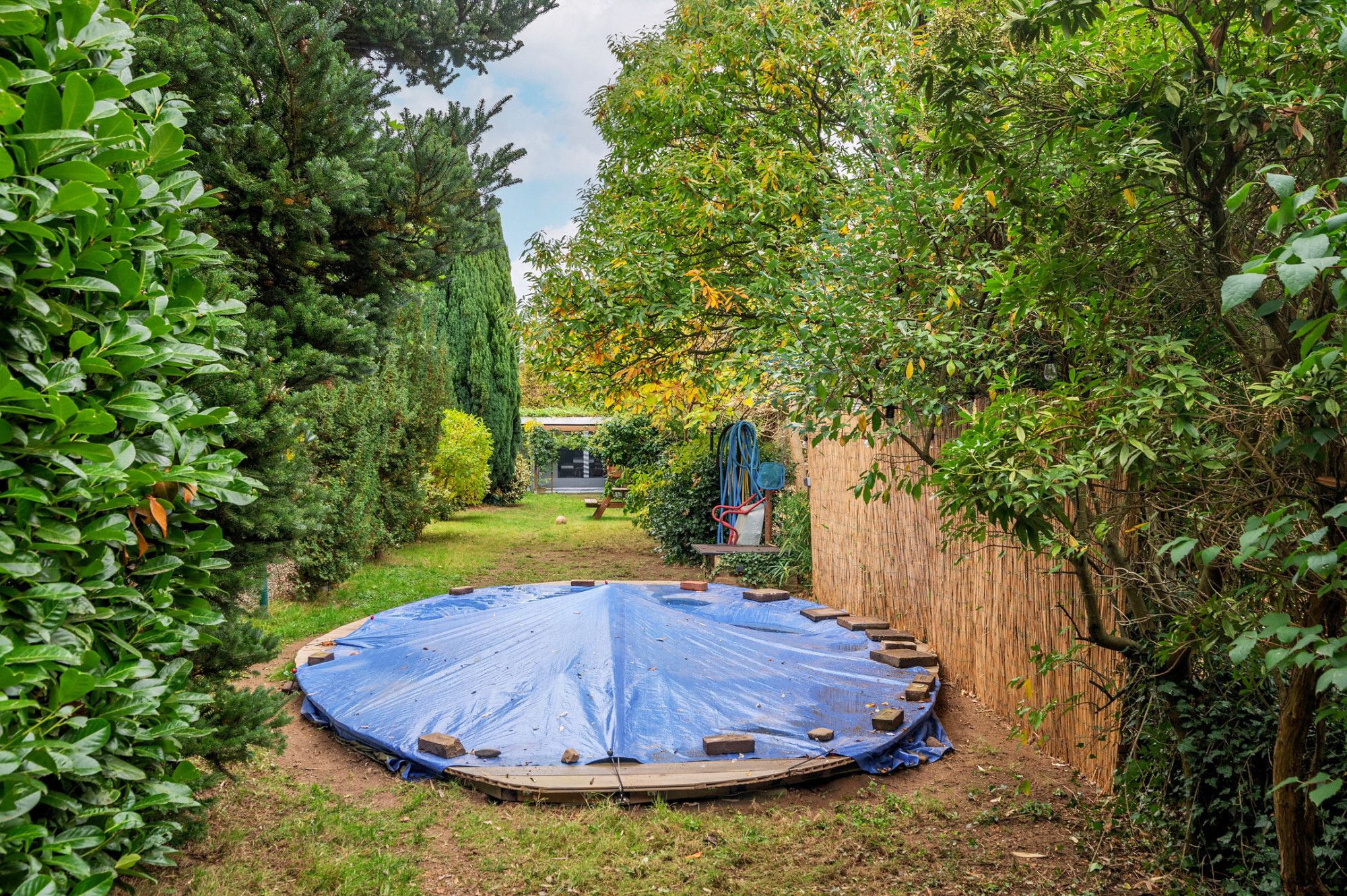 Middels de bijkeuken is de buitenruimte te bereiken. Hier is een betegeld terras aanwezig. De garage is aan de achterzijde gelegen en biedt de mogelijkheid om een auto binnen te zetten en geeft toegang tot de ruime hobbyruimte. De riante tuin met zeer veel groen heeft volledige privacy en beschikt over een zwembad. De achtertuin is ruim 120m² diep en geeft een prachtig uitzicht op de Maas en haar uiterwaarden.