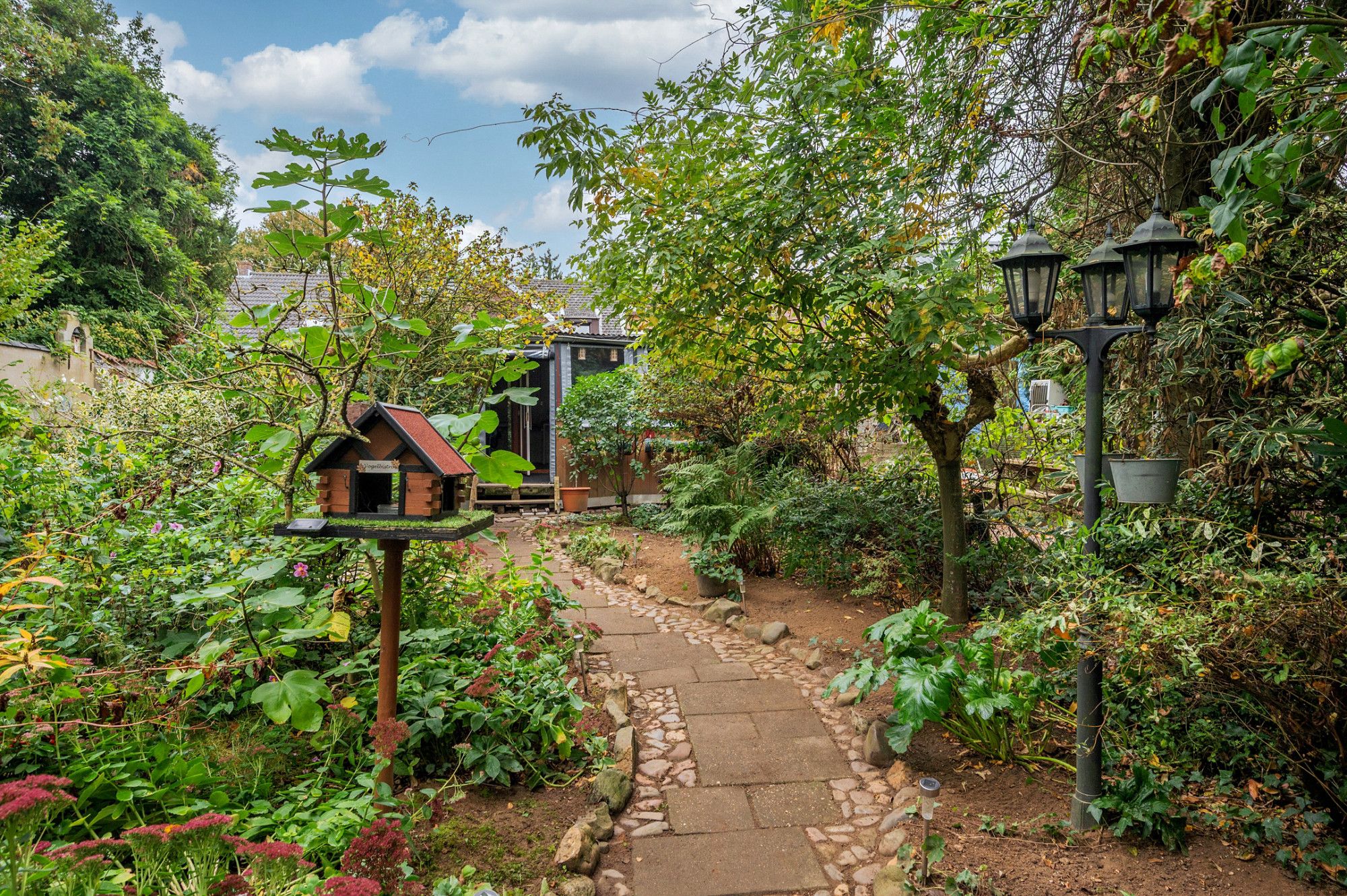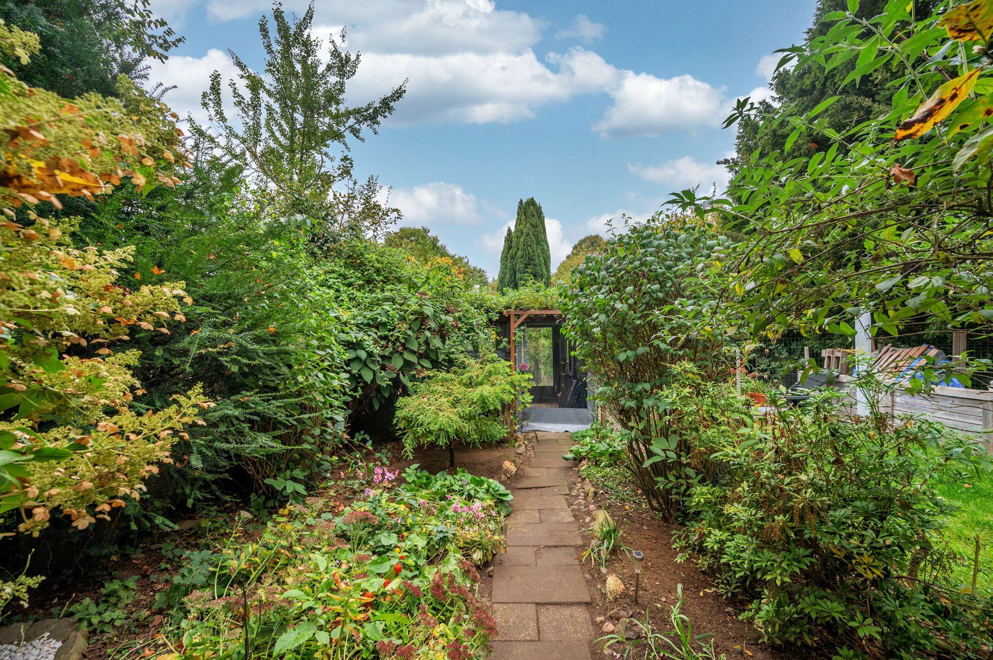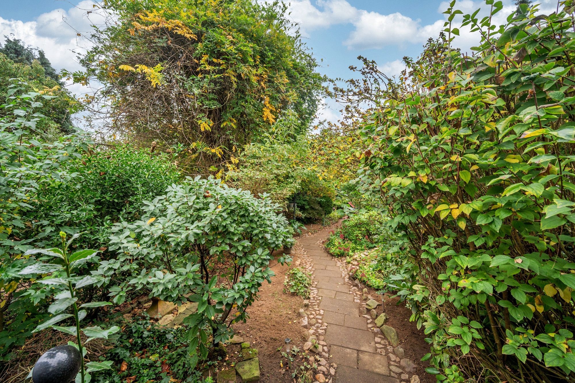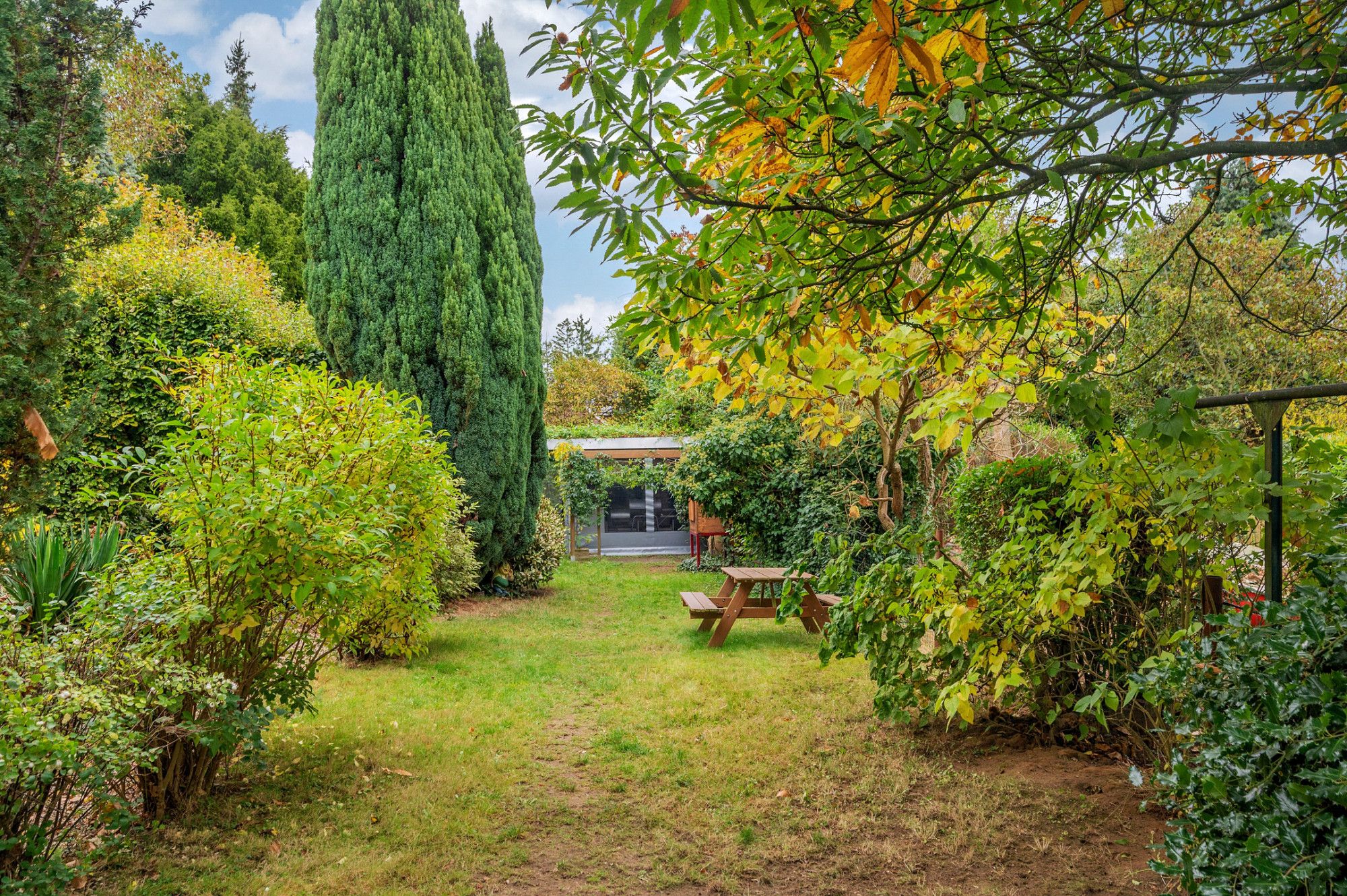 Middels de bijkeuken is de buitenruimte te bereiken. Hier is een betegeld terras aanwezig. De garage is aan de achterzijde gelegen en biedt de mogelijkheid om een auto binnen te zetten en geeft toegang tot de ruime hobbyruimte. De riante tuin met zeer veel groen heeft volledige privacy en beschikt over een zwembad. De achtertuin is ruim 120m² diep en geeft een prachtig uitzicht op de Maas en haar uiterwaarden.