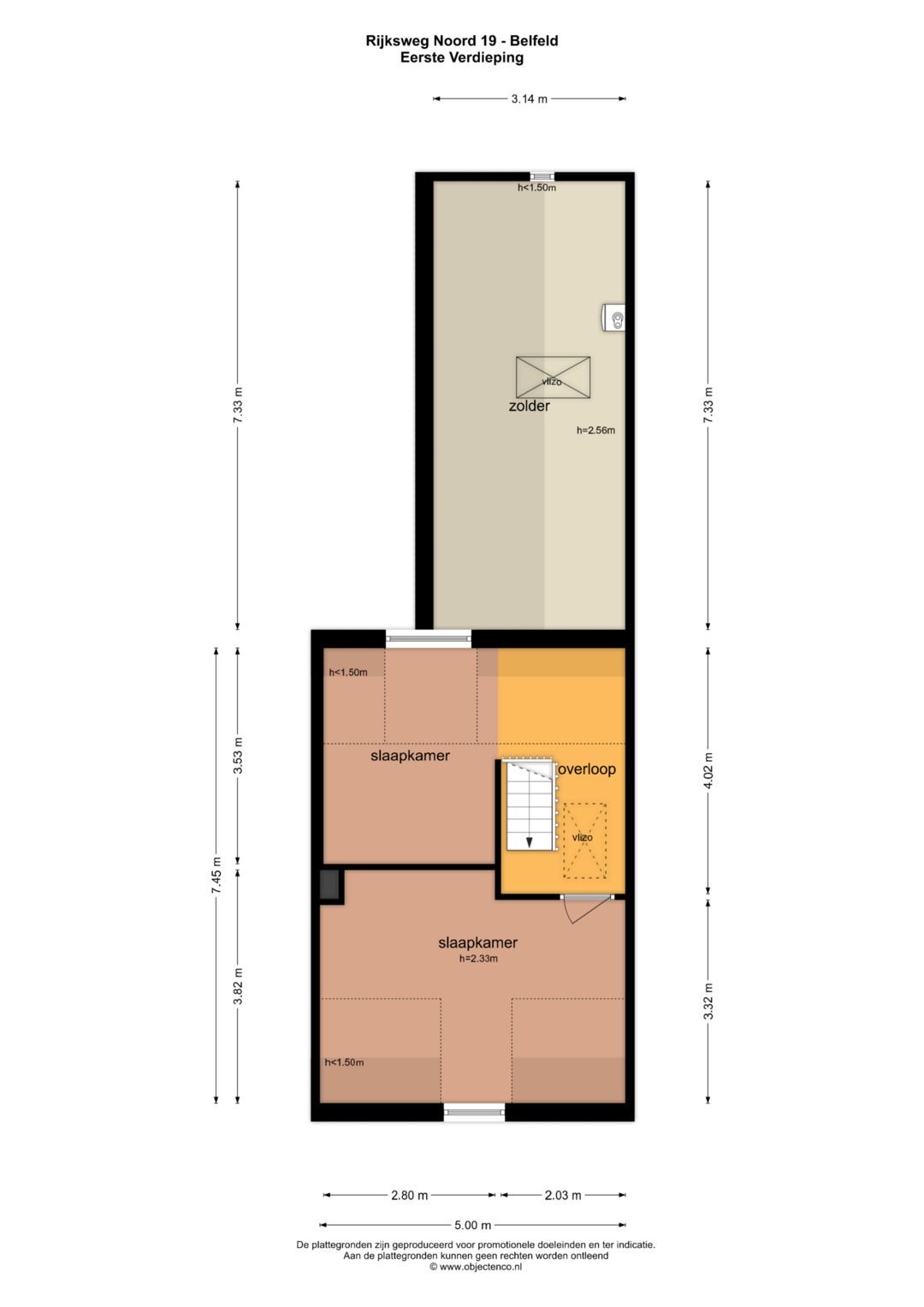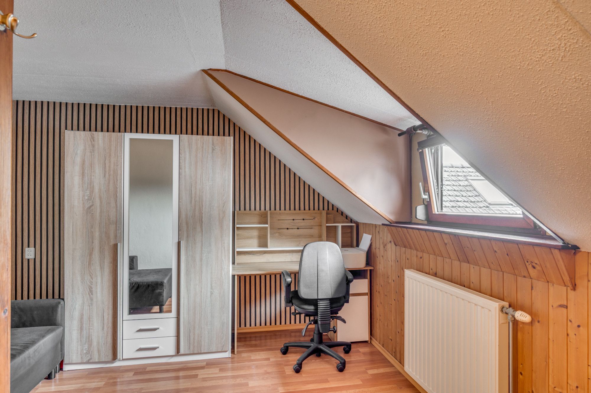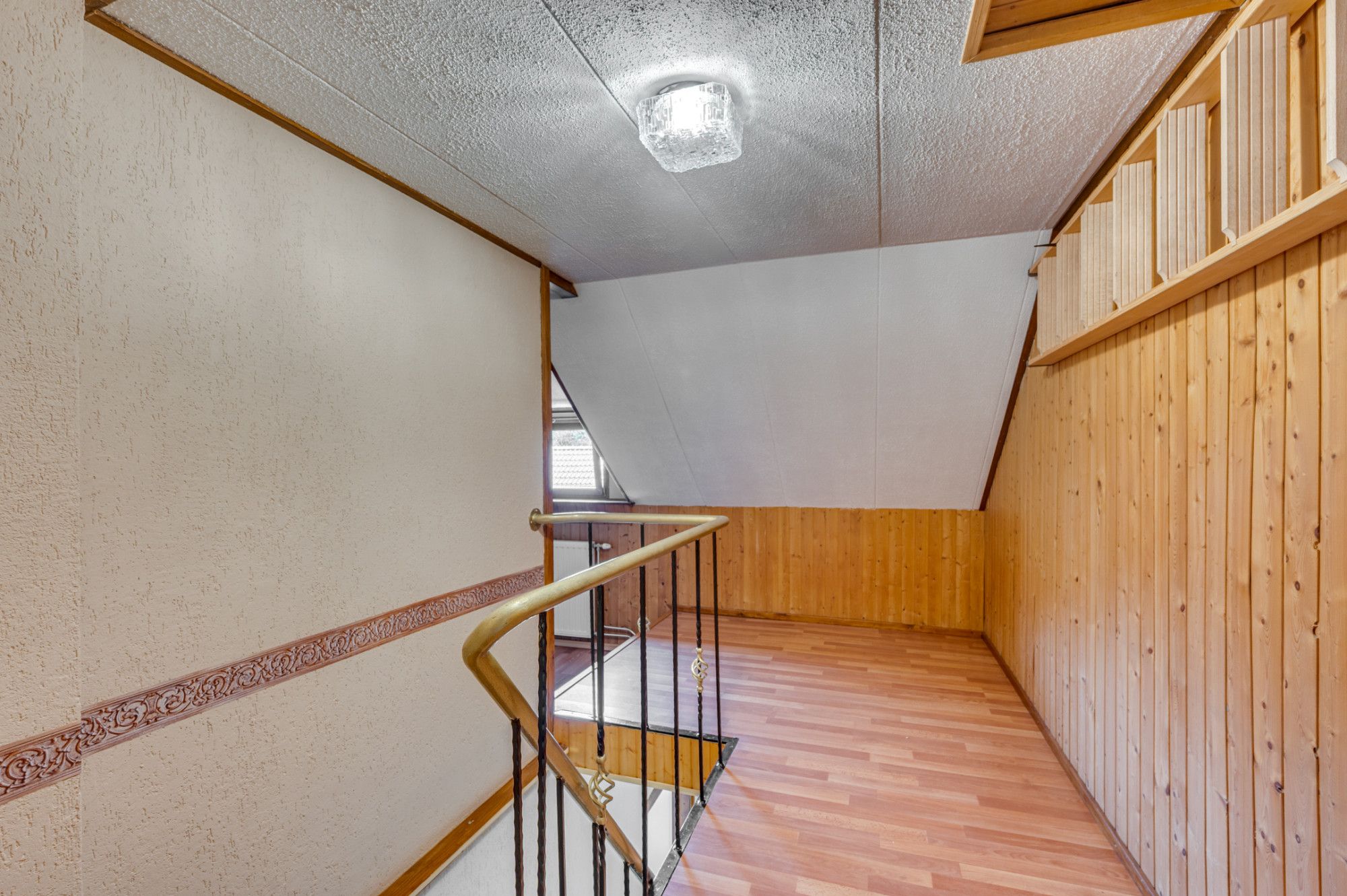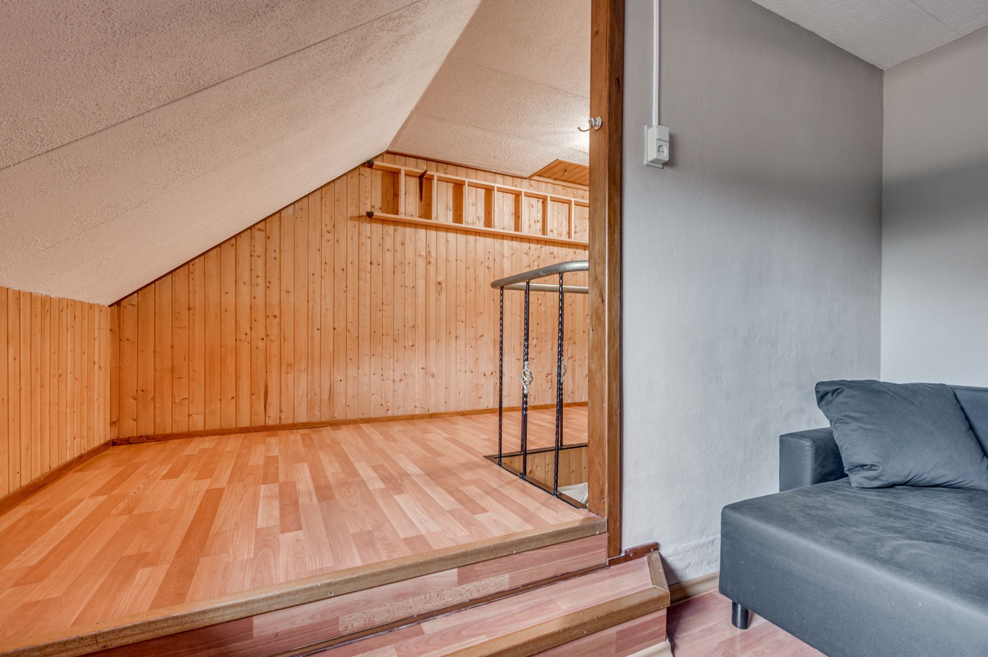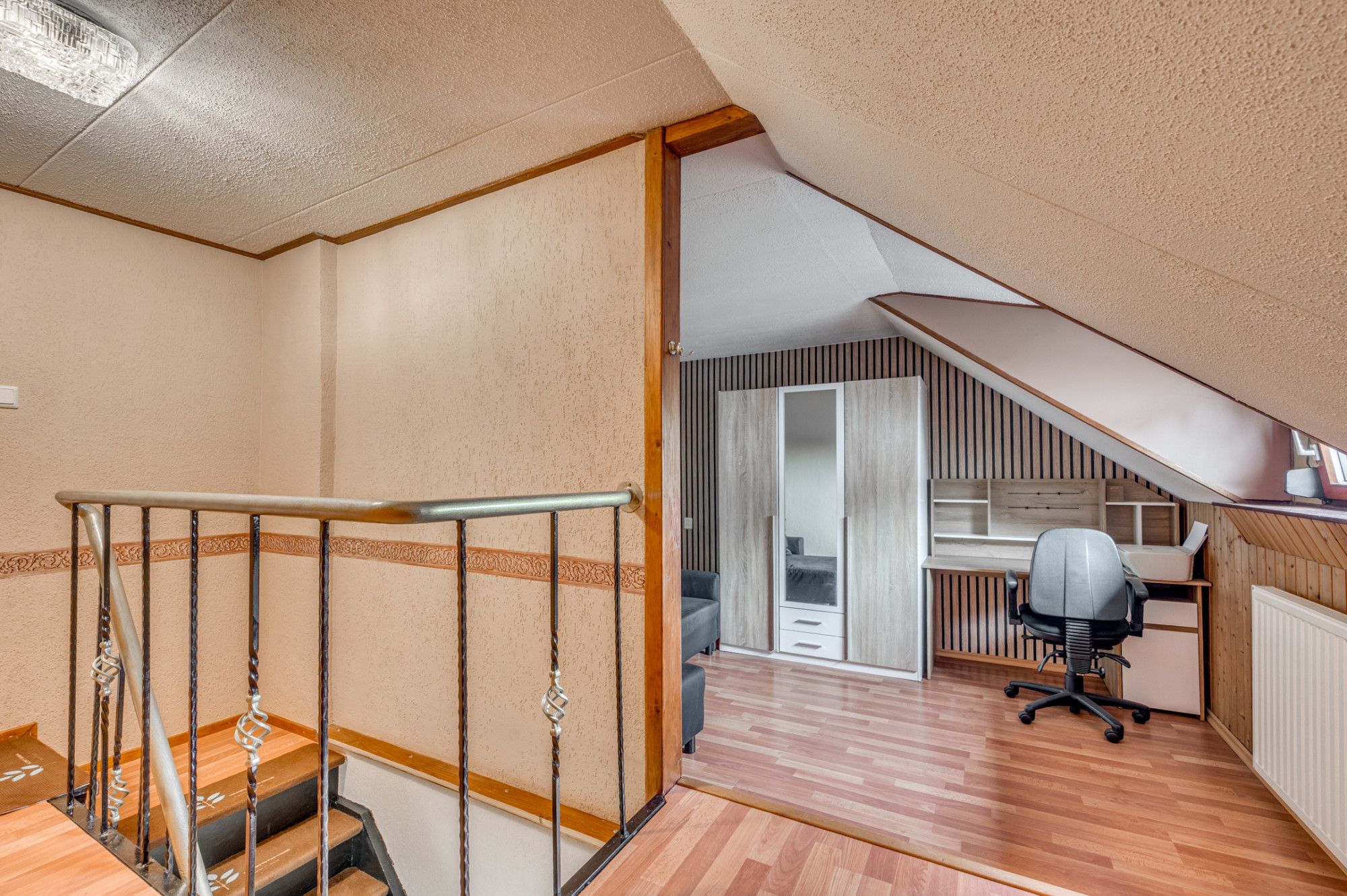 De overloop geeft toegang tot de 2 slaapkamers en vlizotrap naar de zolder. De slaapkamers zijn ca. 10m² en 19m² groot en beide voorzien van een laminaatvloer.