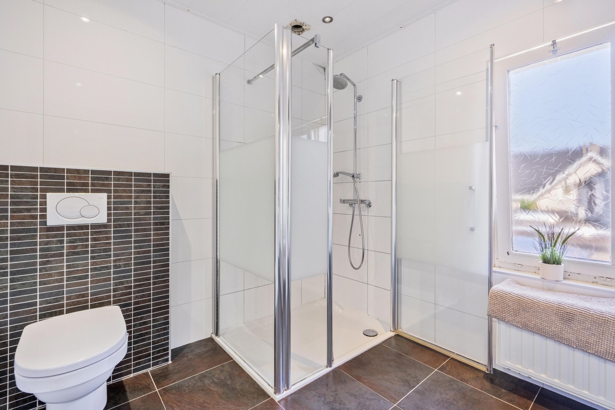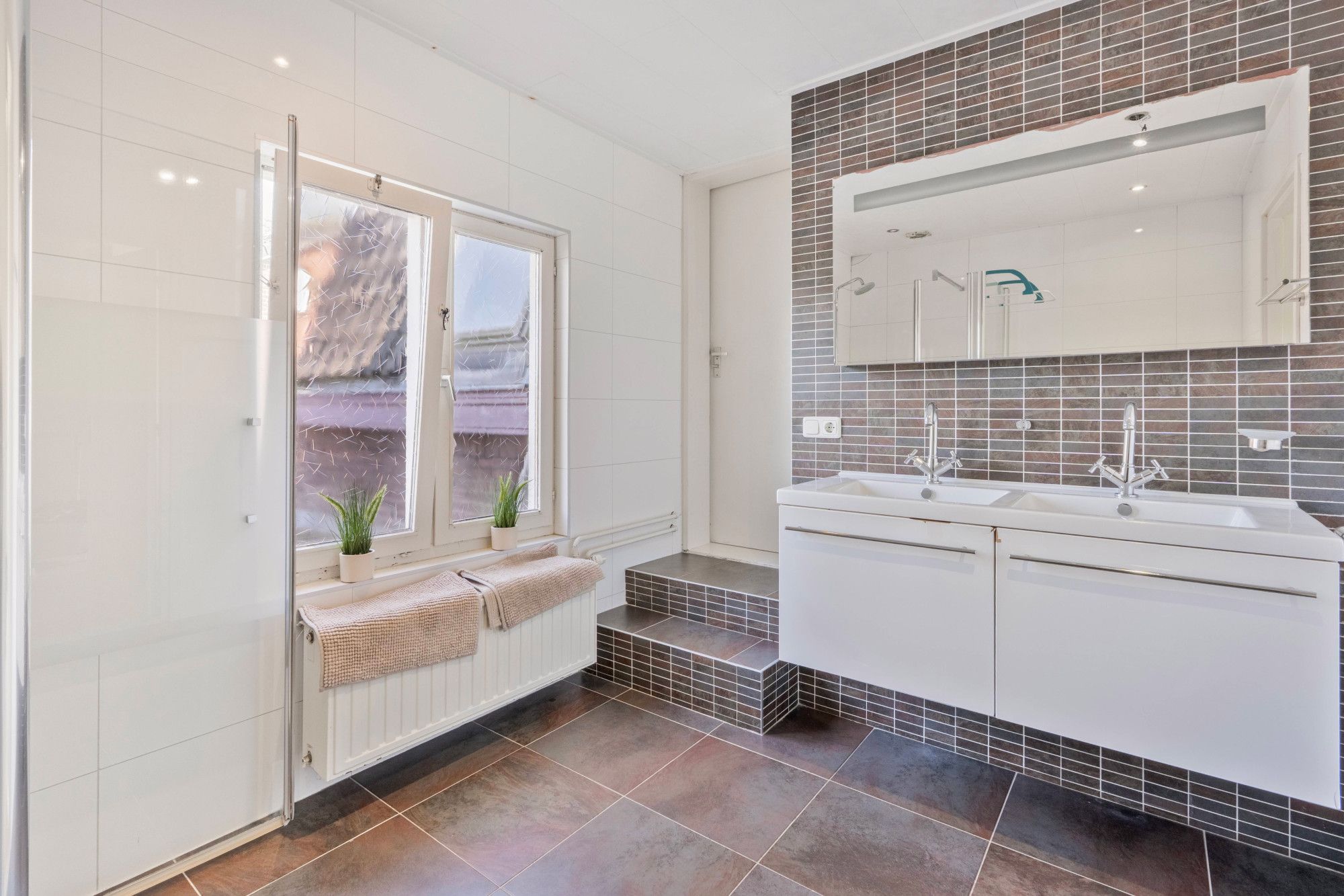 • Badkamer met inloopdouche, dubbele wastafel en zwevend toilet