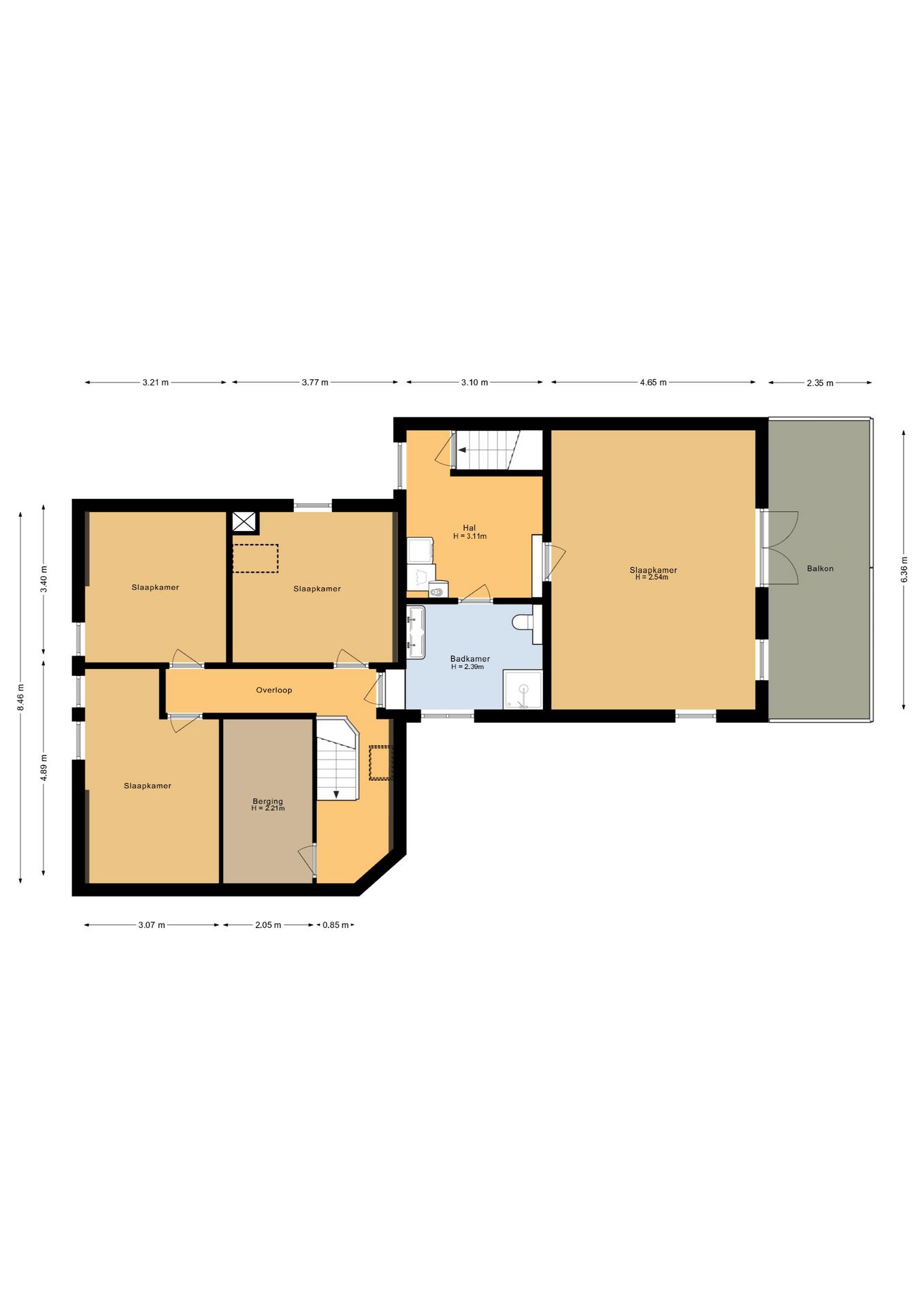 • Vier slaapkamers, waarvan één met balkon van circa 16 m²