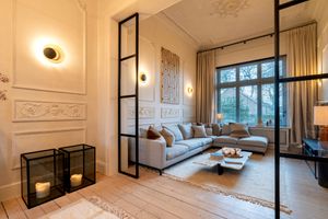 De royale inkomhal brengt je met haar originele mozaikvloer meteen in de sfeer die dit soort historische gebouwen met zich mee horen te brengen. De tweedelige doorzonwoonkamer met haard en erker is een ideale rustplaats. De ultra uitgeruste maatwerkkeuken met gezellige eethoek is een droom voor elke hobbykok, de keuken geeft direct toegang tot het buitenterras aan het zwembad. Ook praktische ruimtes zoals een ruim gastentoilet, een vestaire, een bijkeuken, een wasruimte, de wijnkelder en een cv-ruimte ontbreken niet.