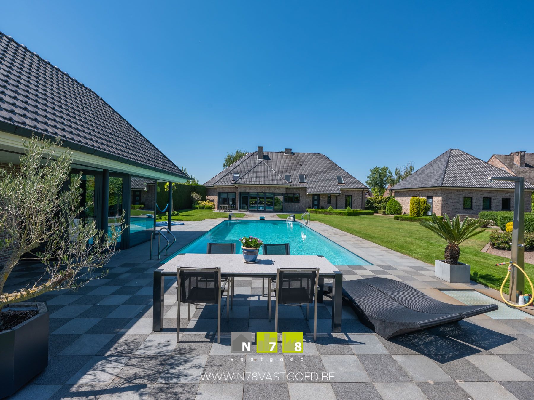 INSTAPKLARE VILLA MET 4 SLAAPKAMERS, 3 DUBBELE (VRIJSTAANDE) GARAGE, PRACHTIGE TUIN MET VERWARMD ZWEMBAD, JACUZZI EN POOLHOUSE OP 32A09CA TE BREE.