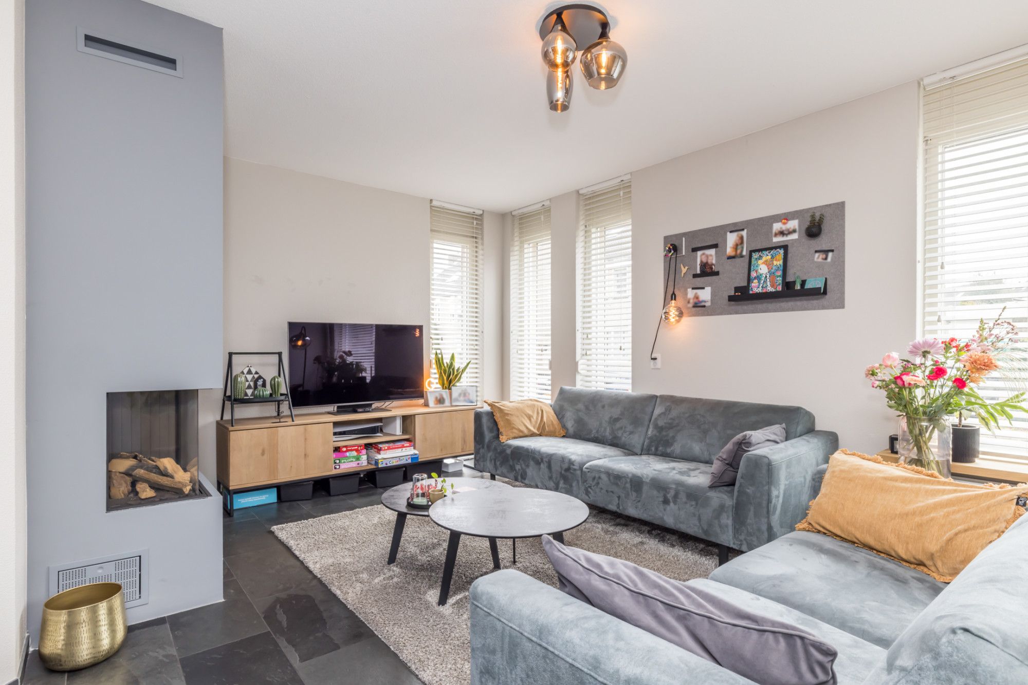 * LICHTE WOONKAMER MET VOORGELEGEN LOUNGE EN SFEERVOLLE GASHAARD EN AIRCO