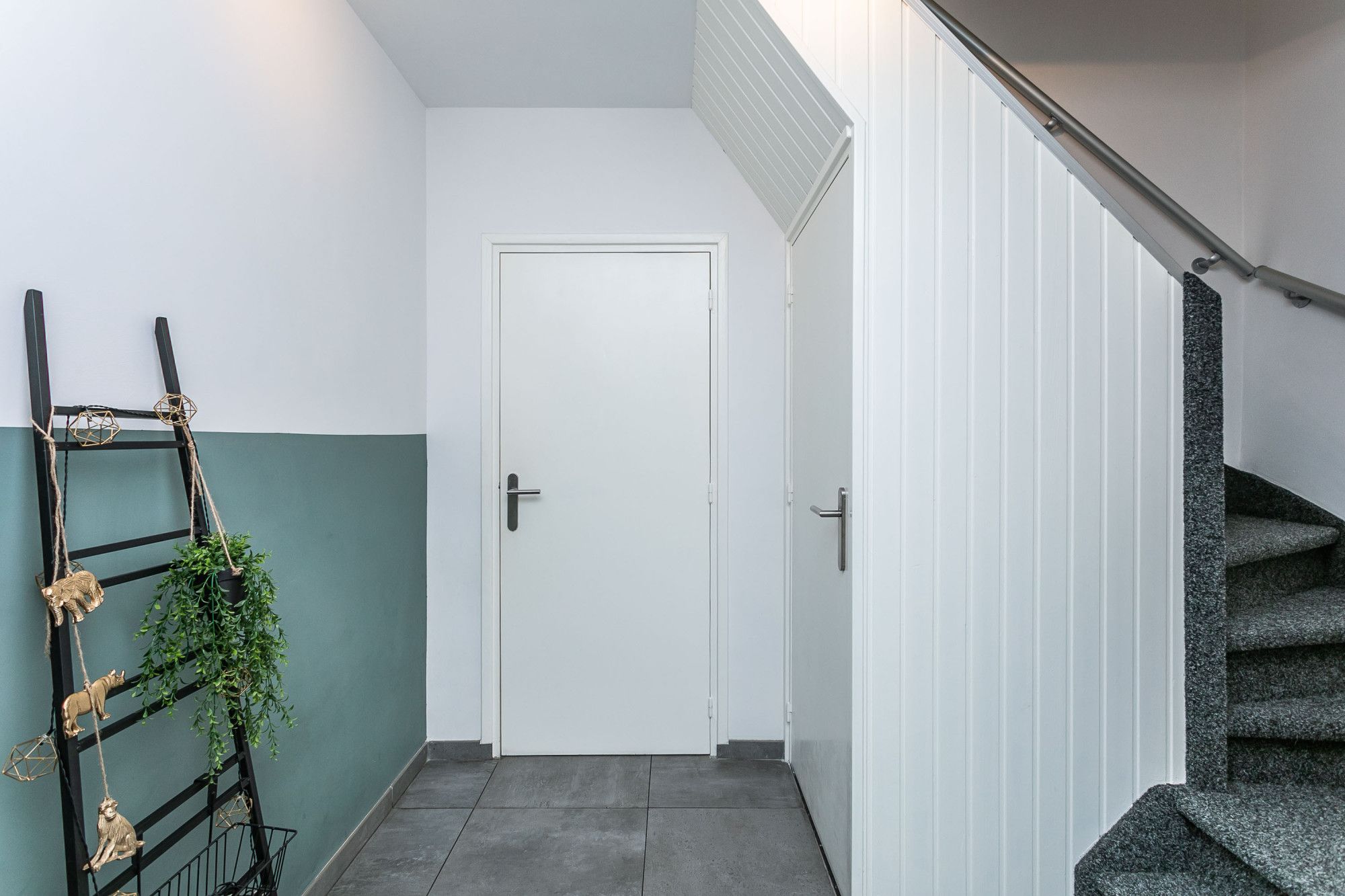 Hal/entree, trappenhuis naar de verdieping en trapkast met bergruimte. Meterkast voorzien van 10 groepsinstallatie / 2x aardlekschakelaar / separate groep voor de zonnepanelen / digitale meters met dag- en nachtstroomaansluiting. Modern gastentoilet met zwevend wandcloset. Toegang tot de woonkamer, eetkamer en keuken.