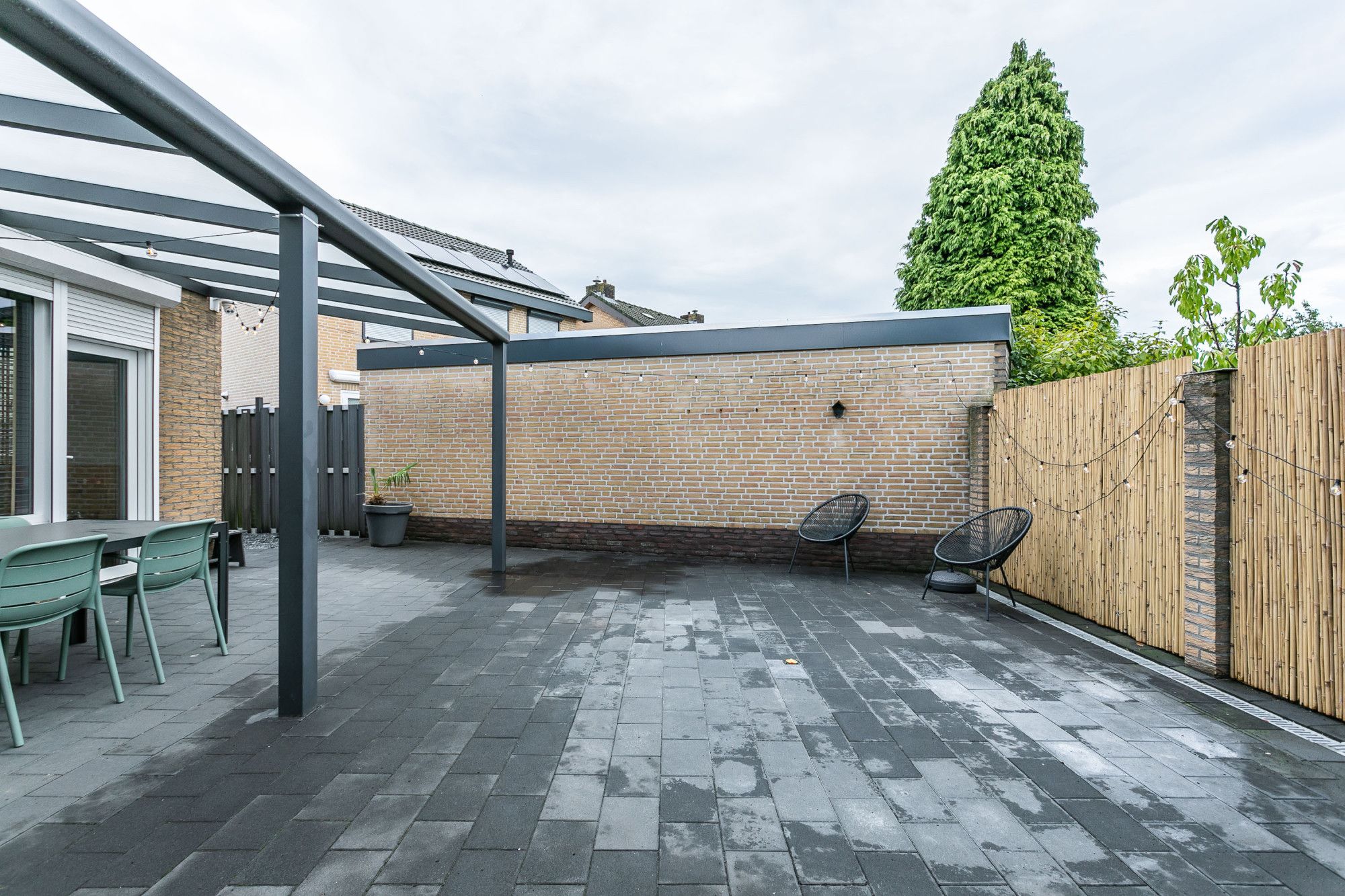 * ONDERHOUDSVRIJE ACHTERTUIN MET TERRAS, GROTE OVERKAPPING EN ZIJINGANG