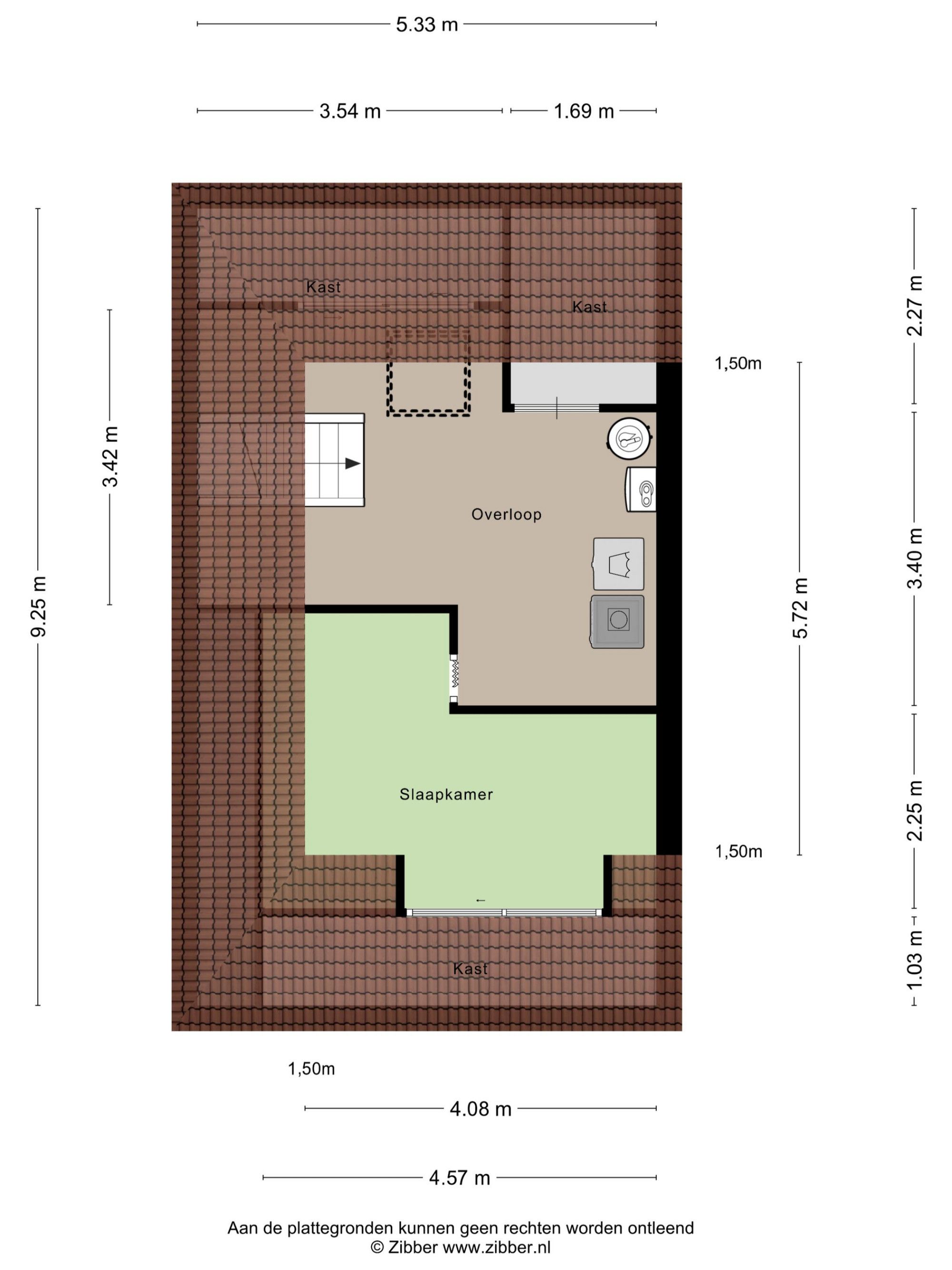 Slaapkamer 4/studeerkamer (4.08 x 2.55 m) met dakkapel en voorzien van airco.