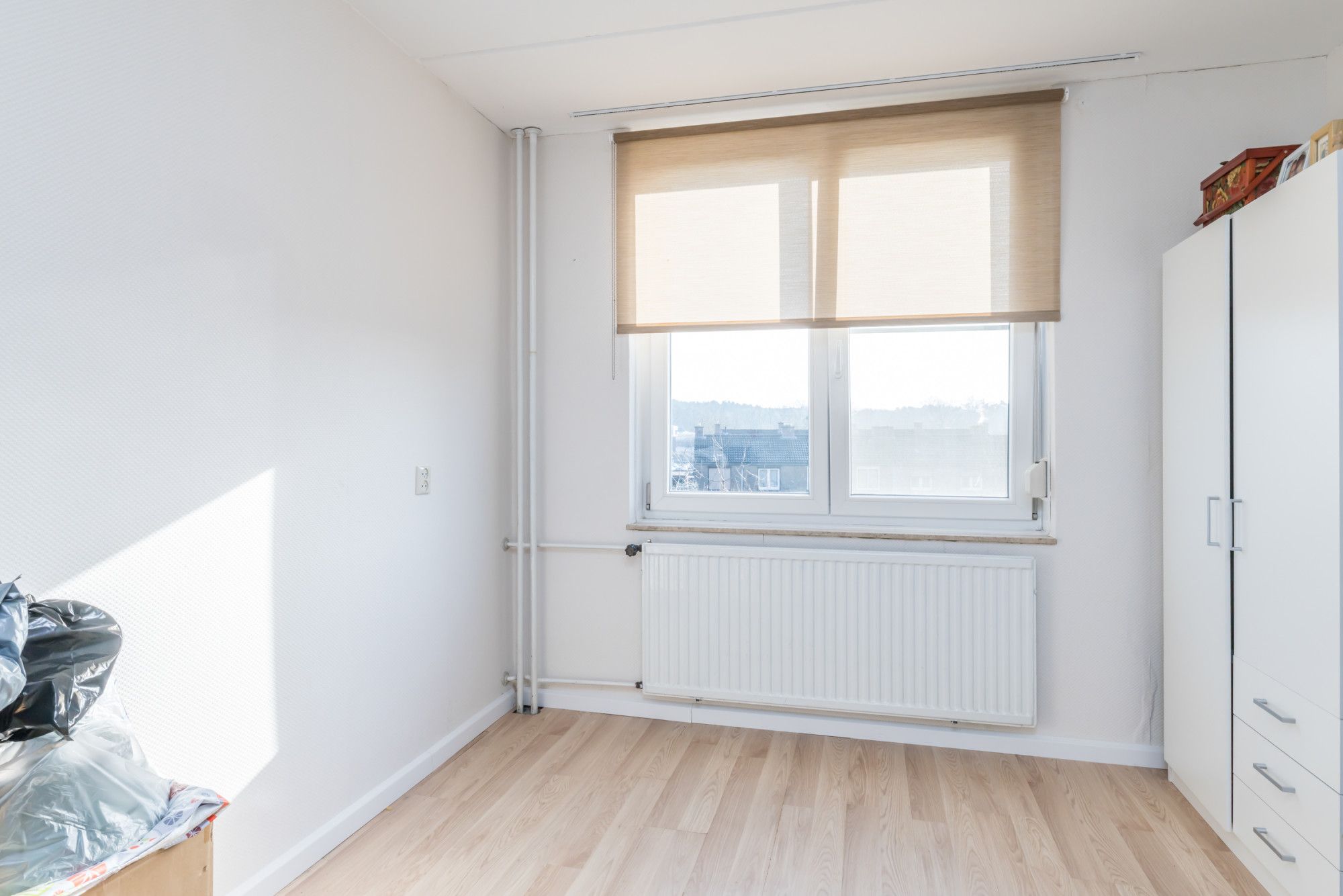 De derde slaapkamer aan de rechter achterzijde doet dienst als kleedkamer.