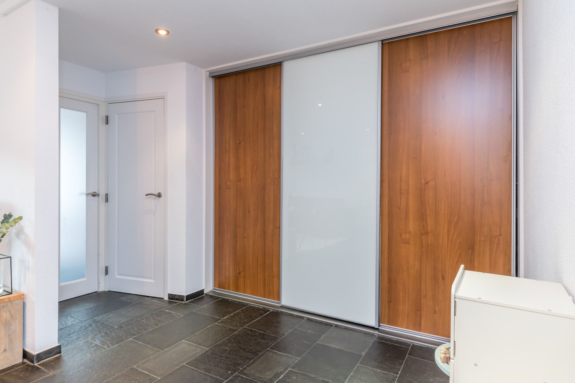 Centraal op de overloop is een muurkast met bergruimte.