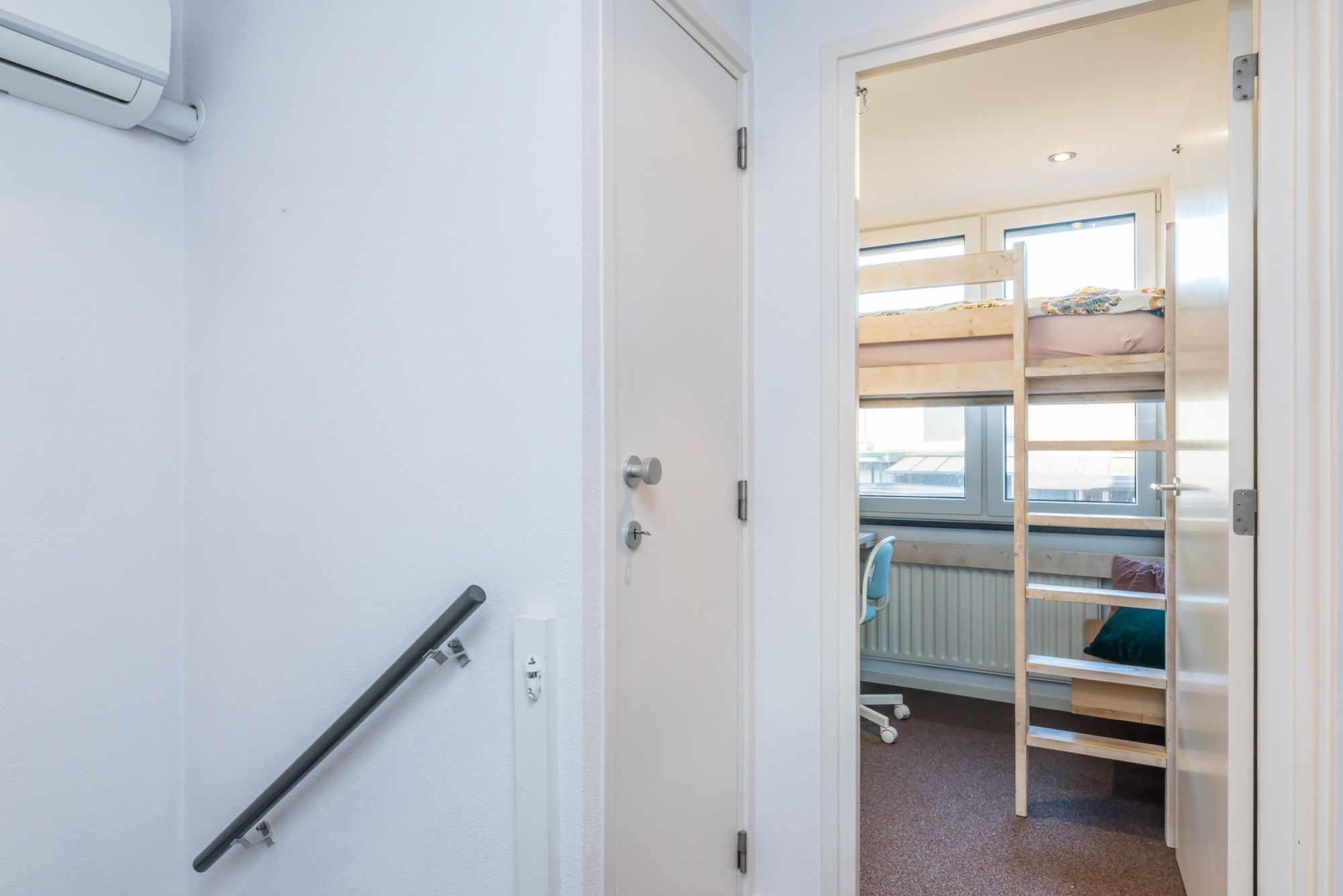 De overloop voorzien van een airconditioningsinstallatie biedt toegang tot de slaapvertrekken en de badkamer.