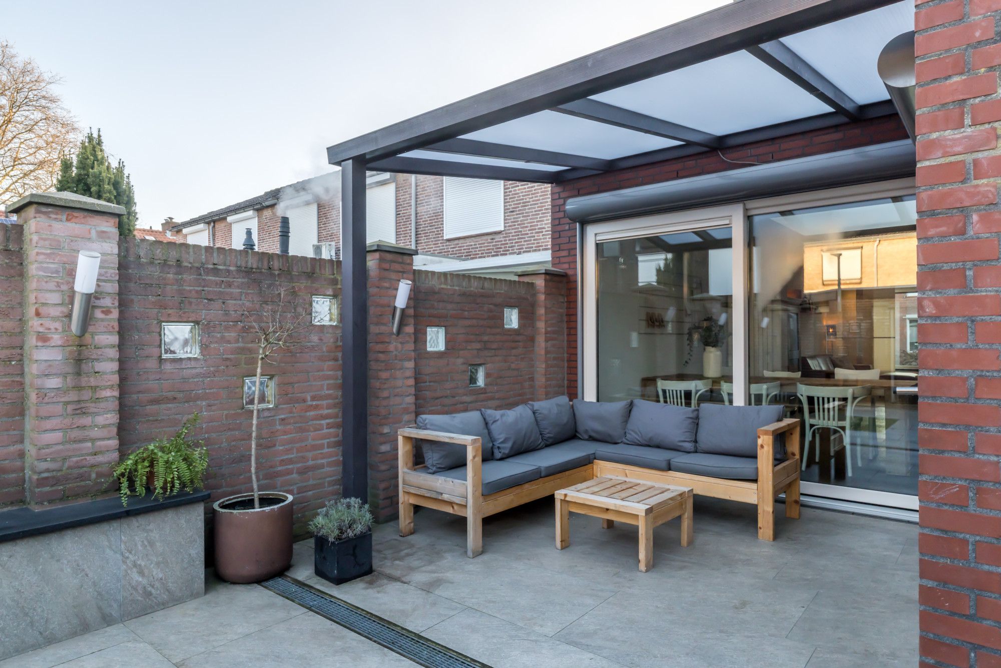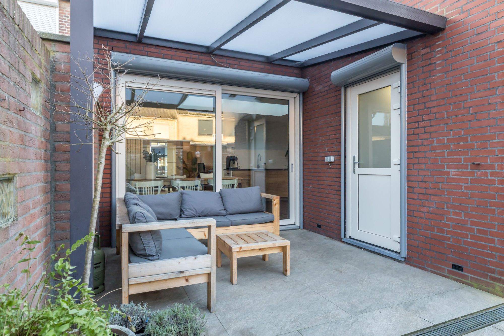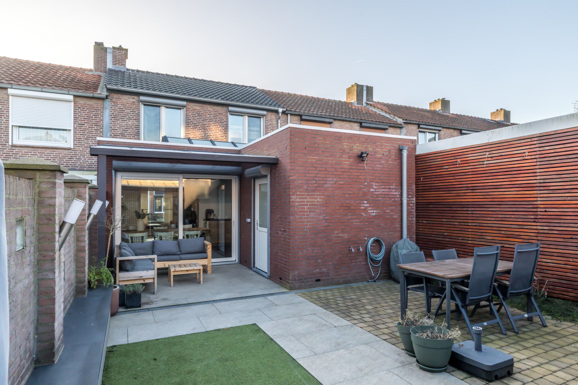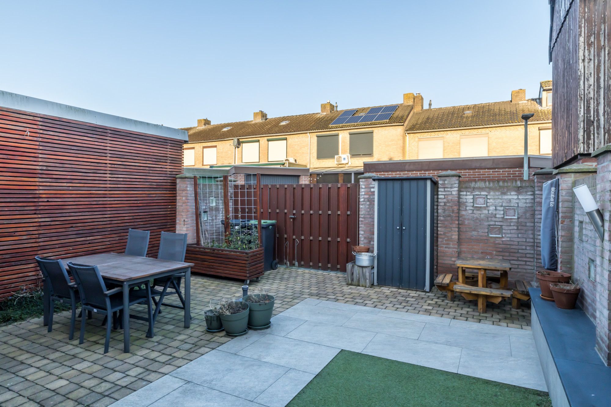 * GEHEEL OMSLOTEN, ONDERHOUDSVRIENDELIJKE ACHTERTUIN MET OVERDEKT TERRAS EN ZITHOEKJES