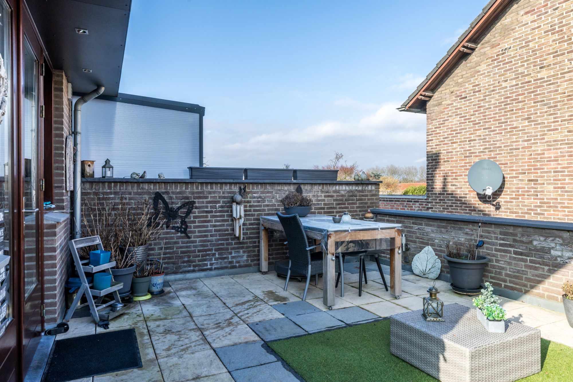 Geheel omsloten onderhoudsvriendelijk dakterras met zithoek, zijingang en veel privacy.