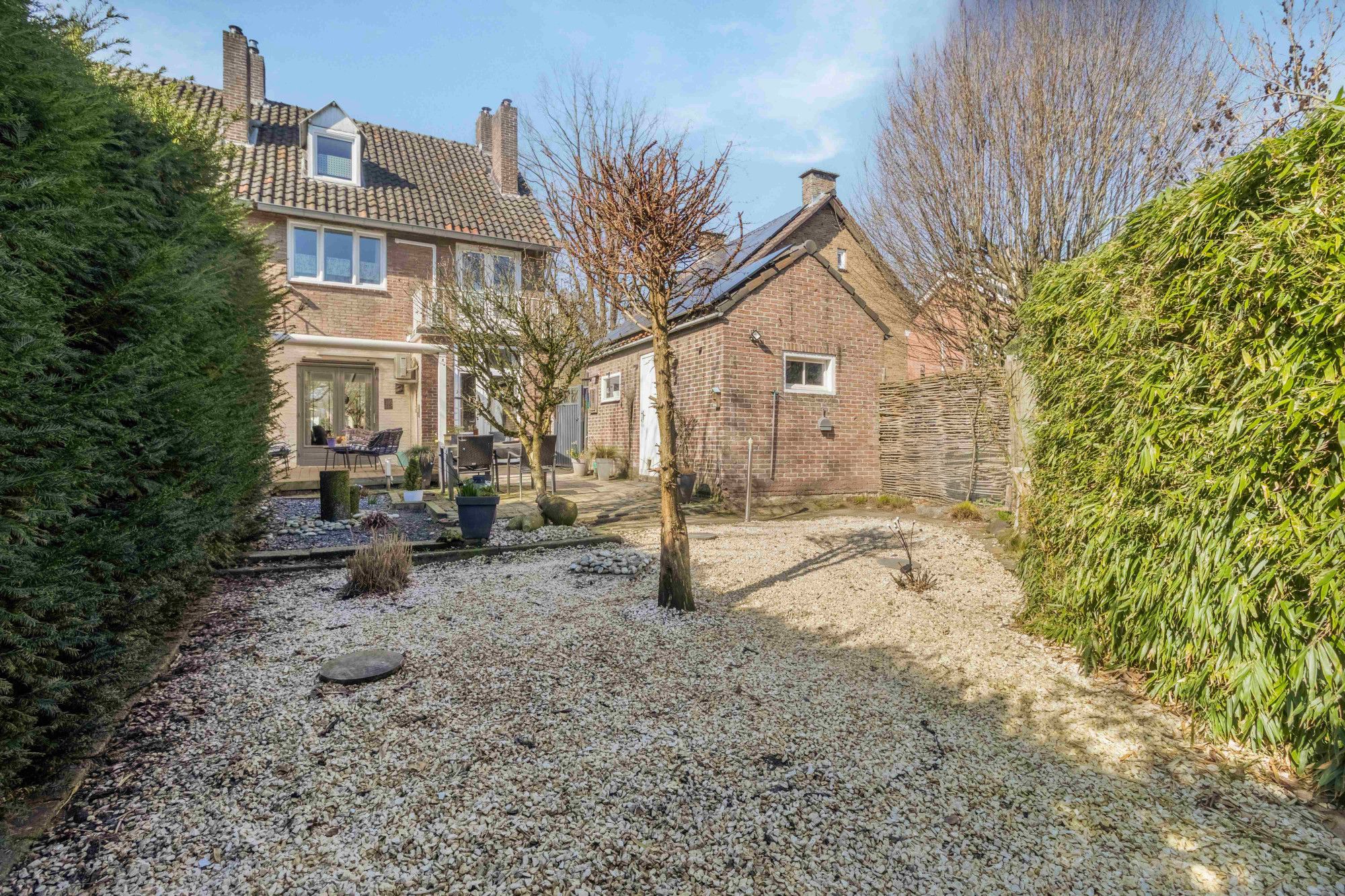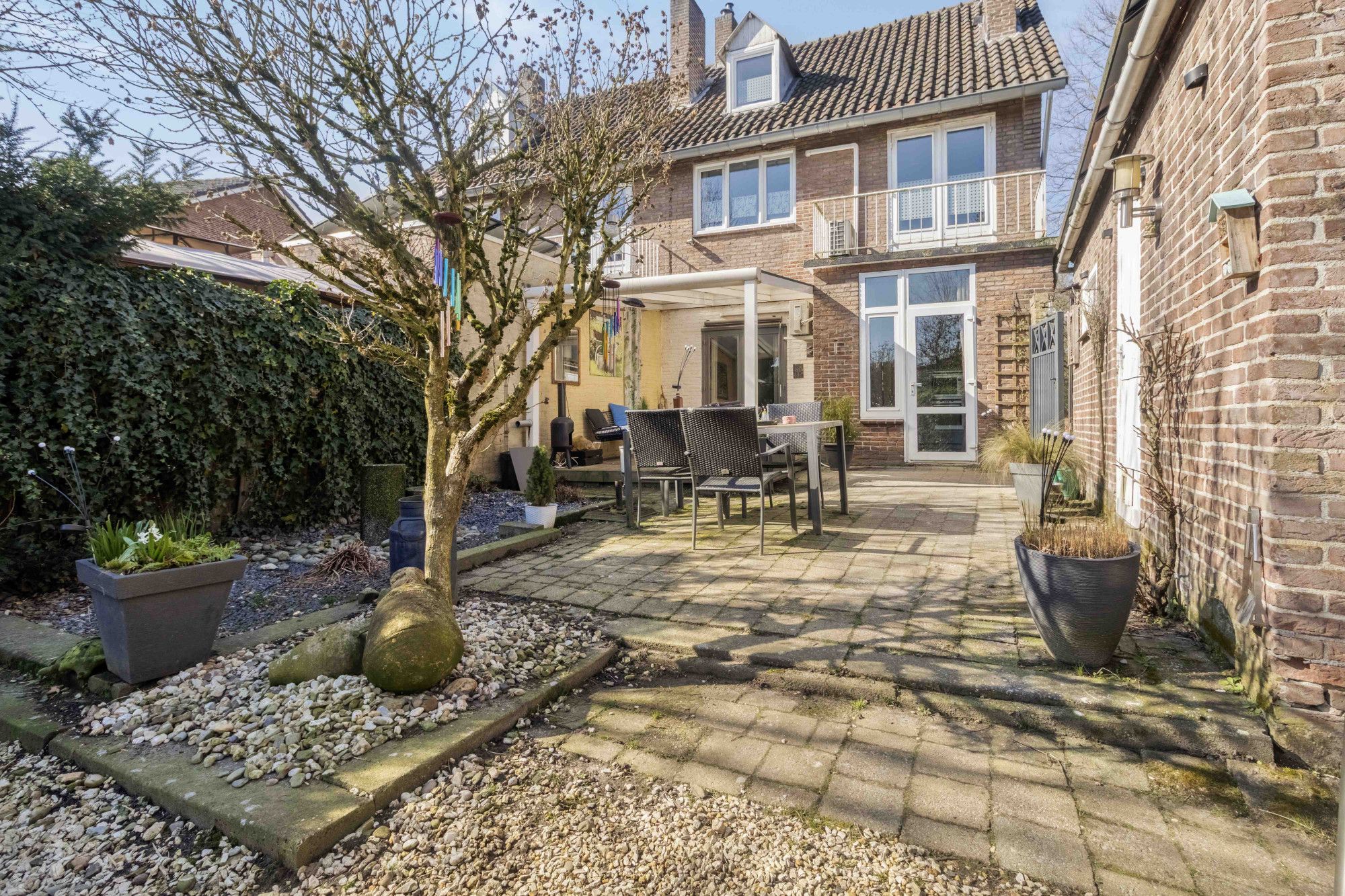 Wonen tegenover de vijver en het Vijverpark in Brunssum, dat kan in deze sfeervolle twee onder een kap woning met vrijstaande garage, ruime terrasoverkapping, voor- en achtertuin.