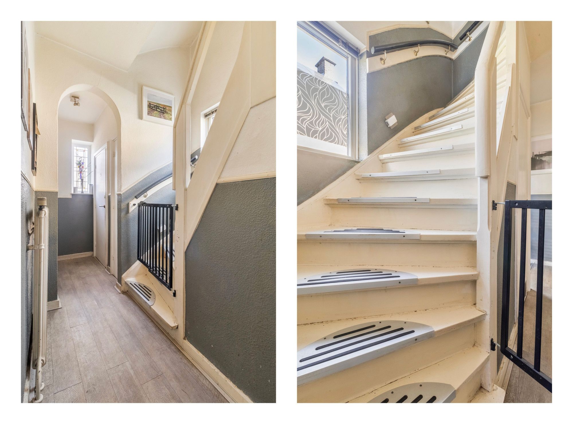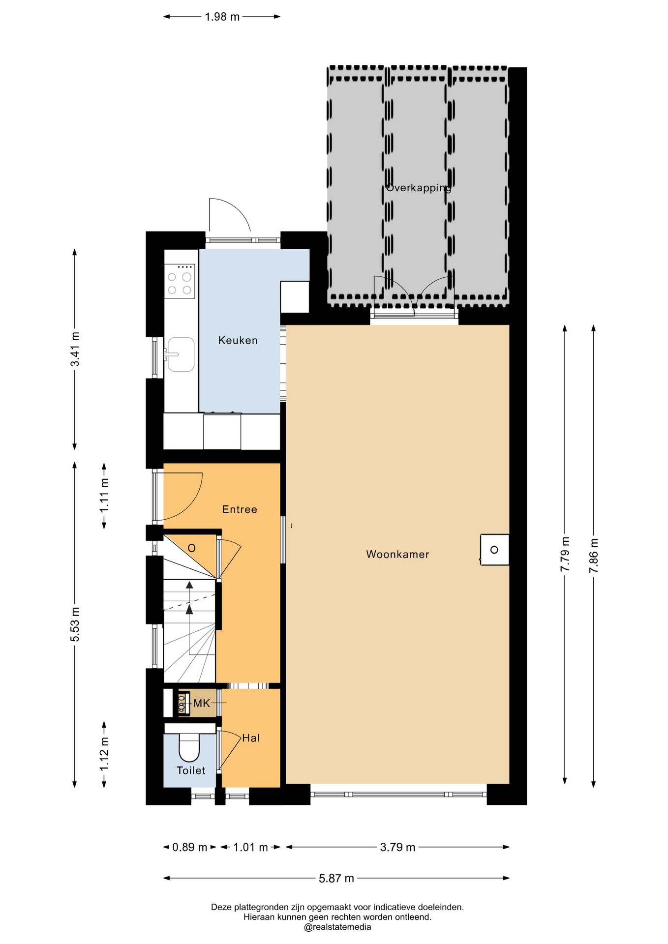 Ontvangsthal (5.53 x 2.01 m) met trap naar verdieping en souterrain.