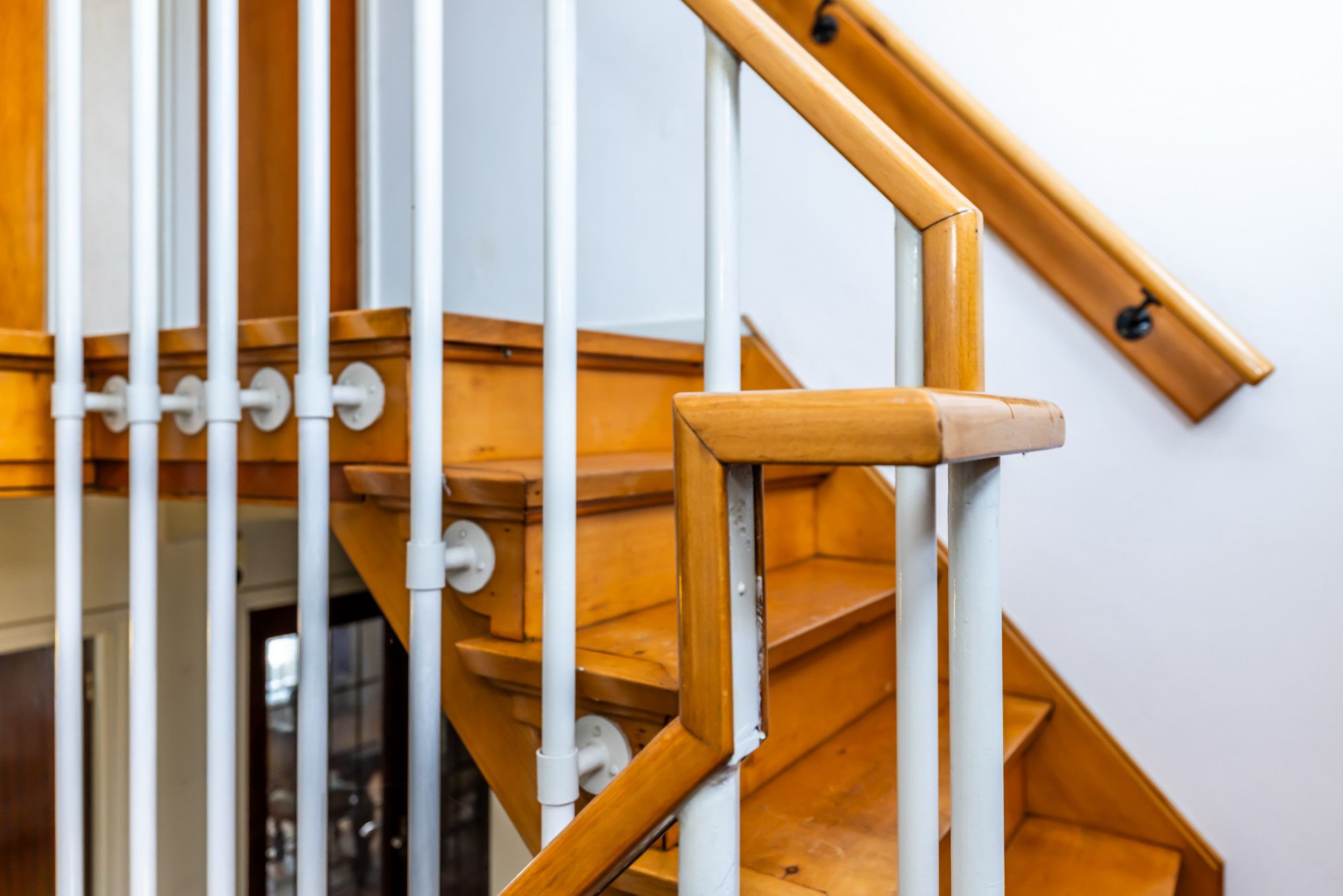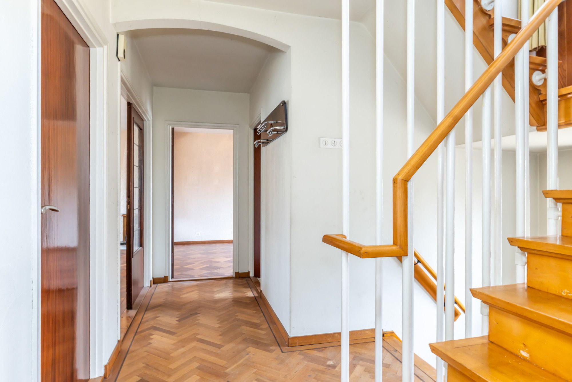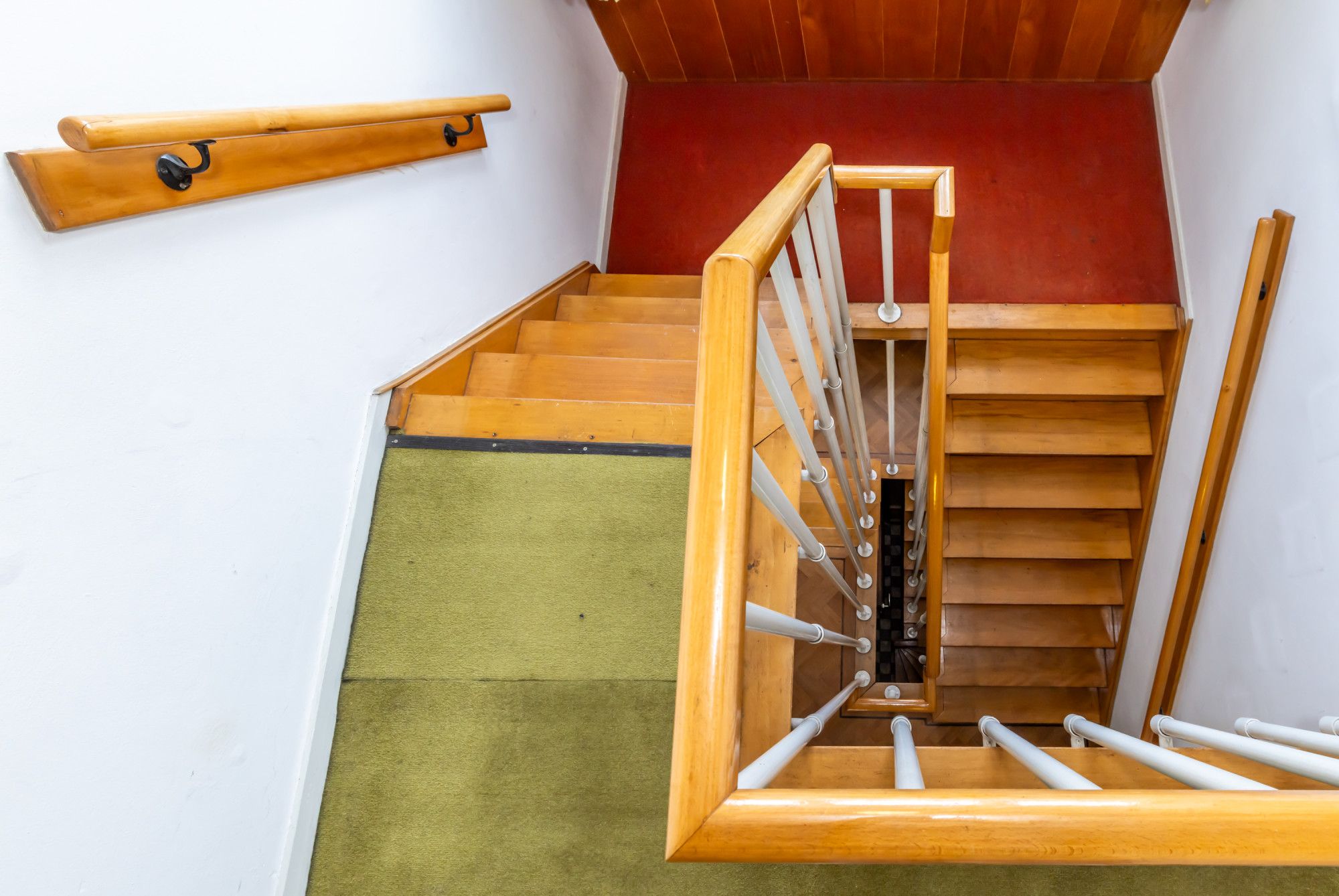 De klassieke bordestrap is een opgang naar de overloop met visgraat parketvloer, en geeft toegang tot de huiskamer, slaapkamers en de badkamer.
