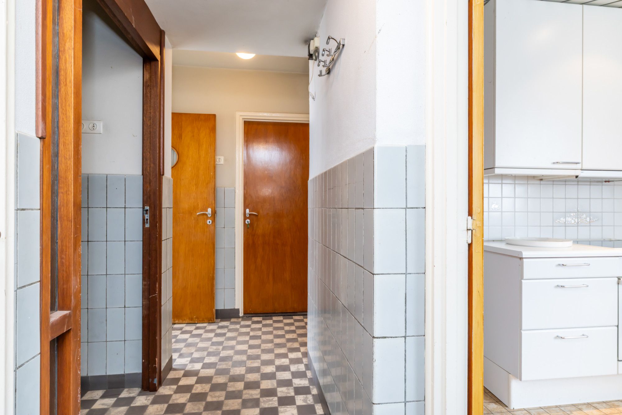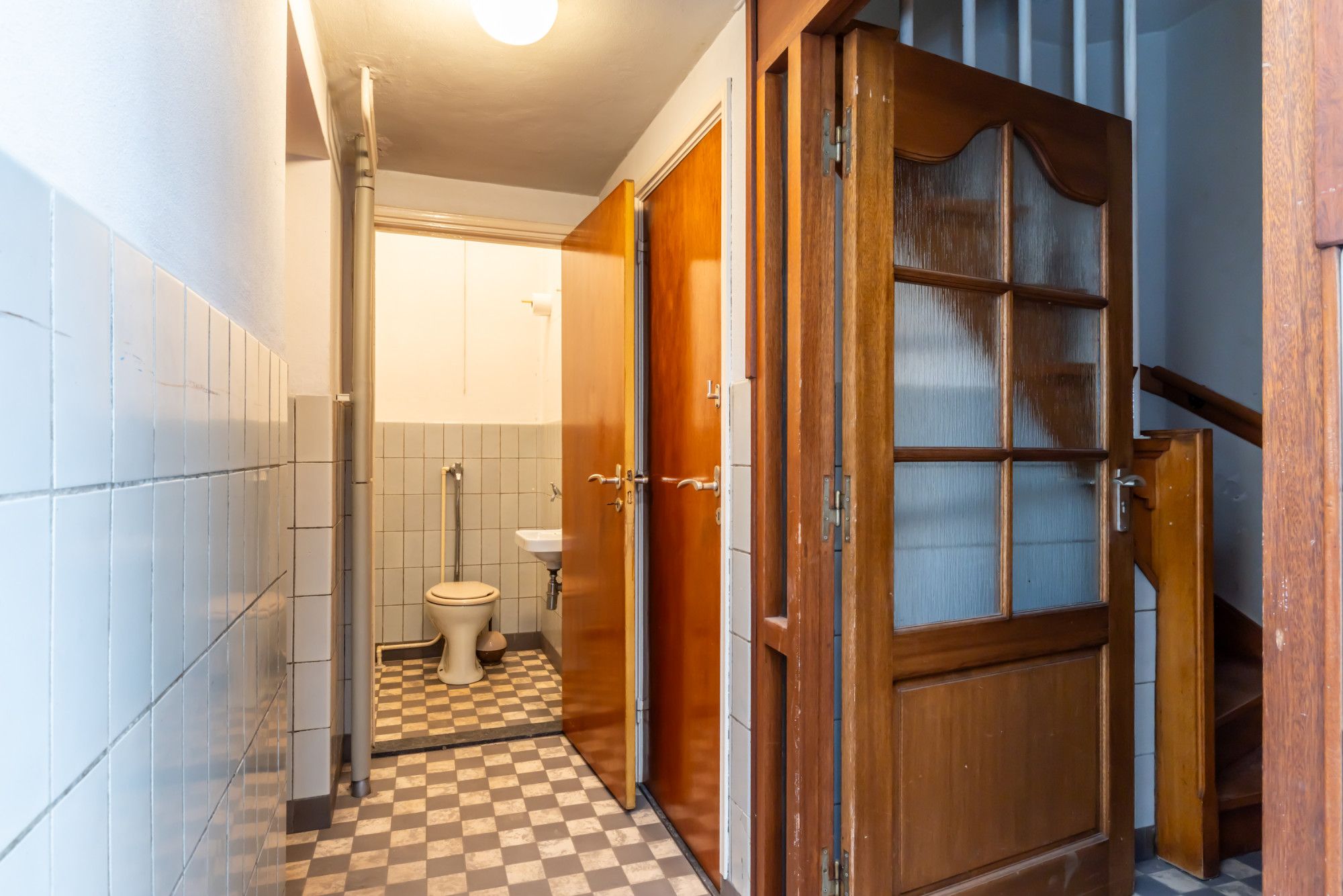 Centrale verdeelhal met toegang tot de keuken / kantoorruimte / slagerij / bedrijfsruimte / trappenhuis naar de kelder, de eerste verdieping en het gastentoilet dat voorzien is van een staand closet en fonteintje.