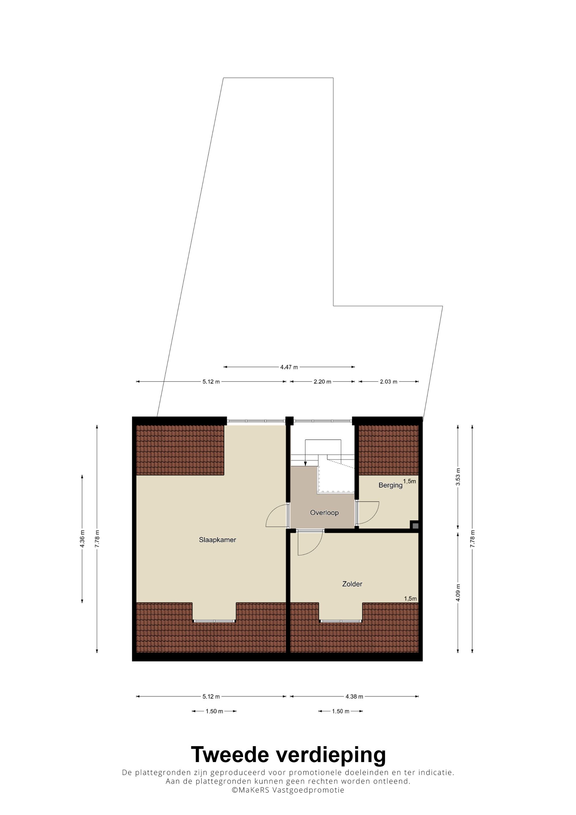 De tweede verdieping biedt een ruime slaapkamer met een dakkapel op de voor- en achterzijde en met een vaste kastenwand. Daarnaast is er een separate bergruimte met dakkapel waar eenvoudig een vierde slaapkamer gerealiseerd kan worden. Extra bergruimte is aanwezig in de schuinte van het dak en op de achtergelegen bergzolder.