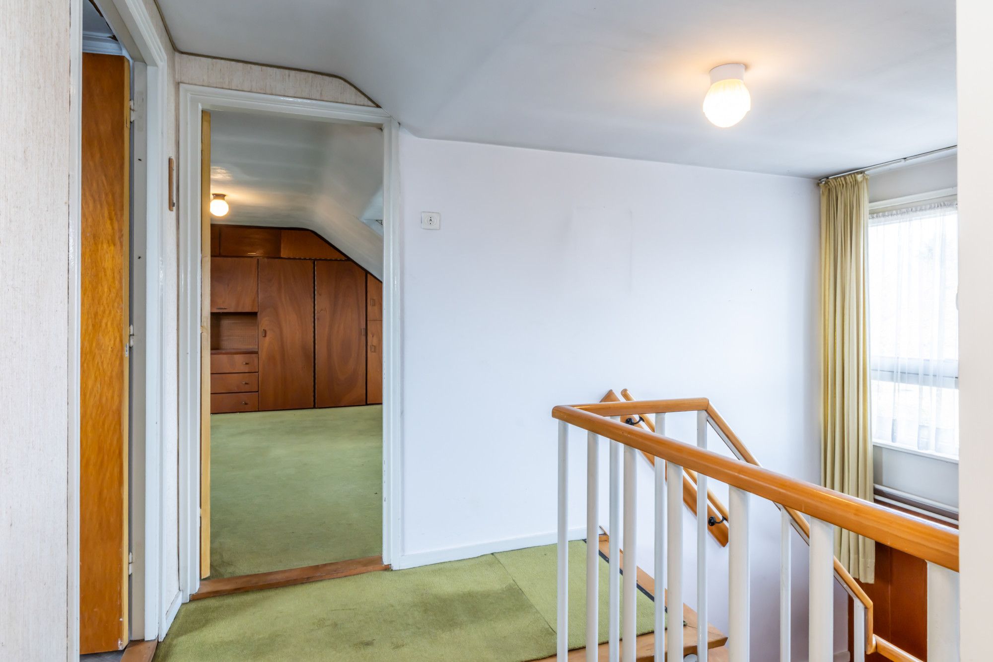 De tussenhal vormt het centrale hart van de woning en biedt toegang tot de kelder, de verdiepingen en de inpandige garage.