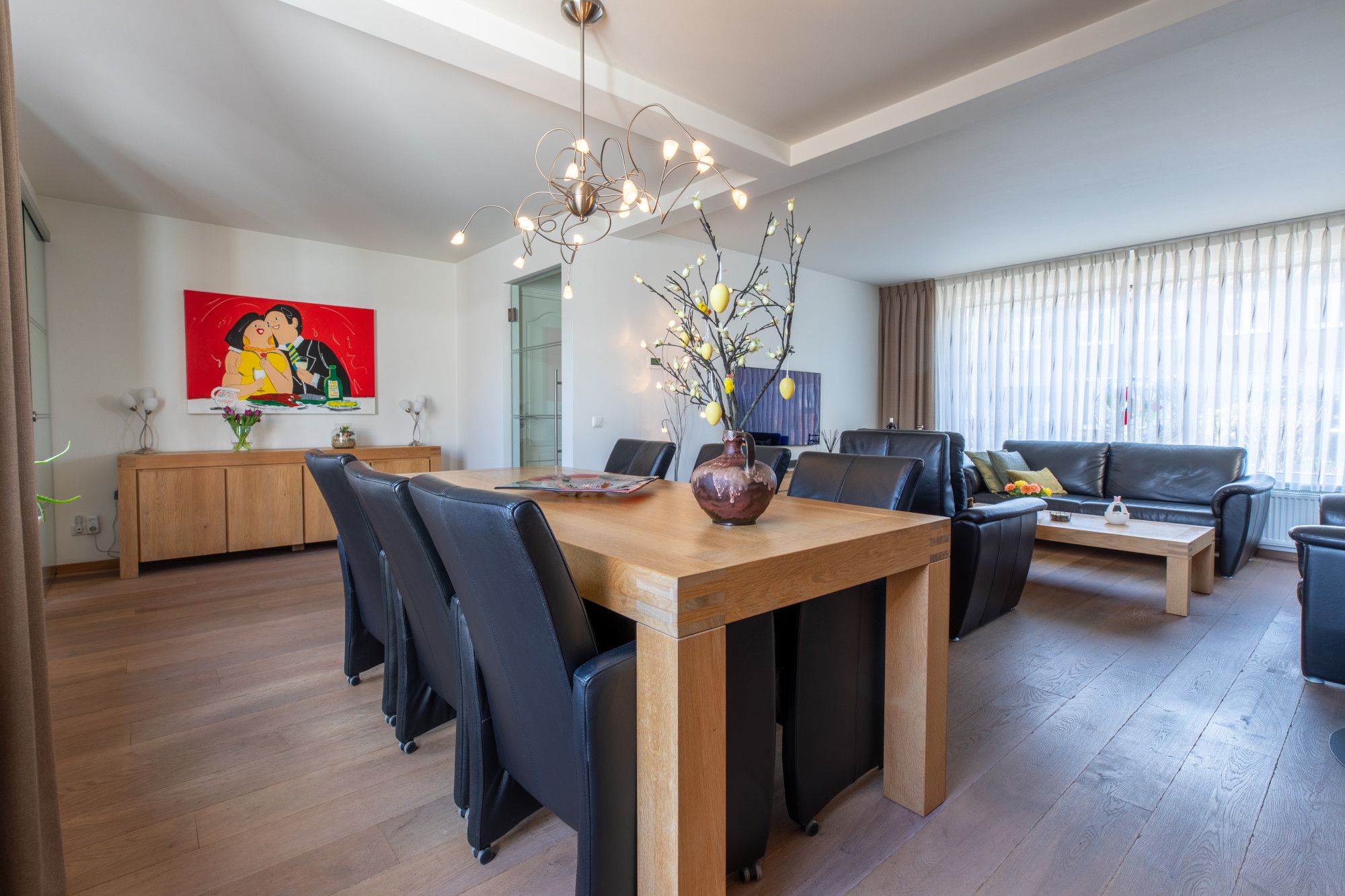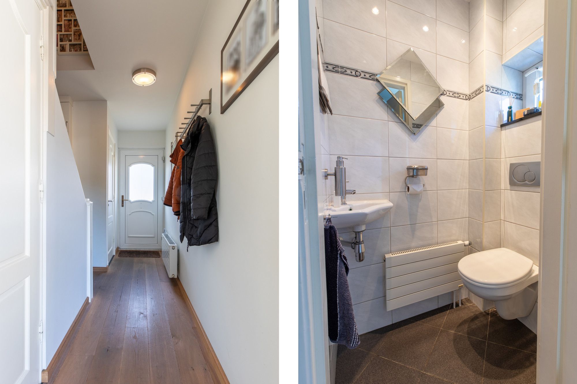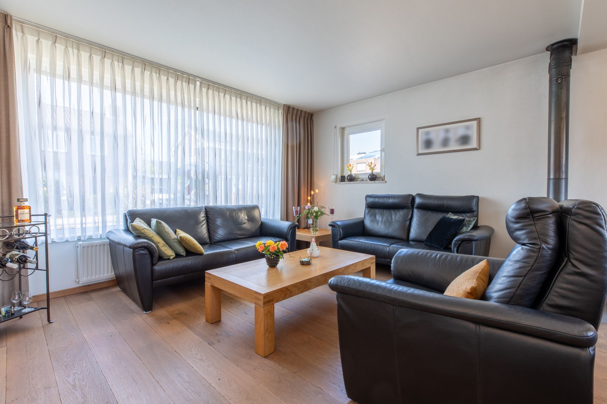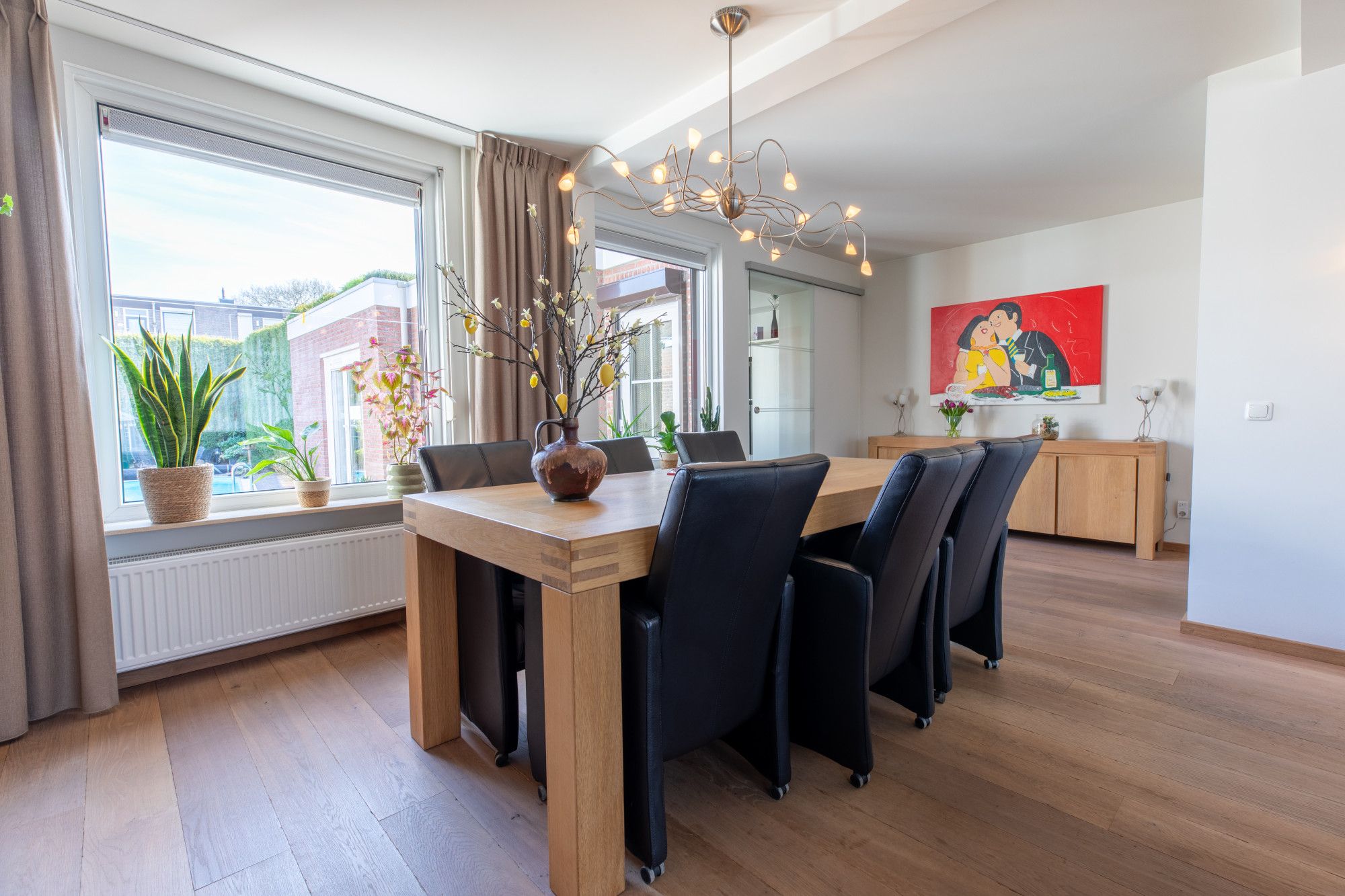 Middels voortuin toegang tot de entree. Hal met doorlopende planken vloer en geheel zwevend toilet met fonteintje. Middels hardglazen deur toegang tot de woonkamer (7.03 x 6.30/4.36 m) eveneens voorzien van eiken planken vloer en sfeervolle houtkachel. Middels hard glazen schuifdeur toegang tot de keuken (4.78 x 2.45 m) voorzien eiken planken vloer en luxe greeploze luxe keuken installatie met diverse onder- en bovenkasten, inbouwapparatuur te weten: 5-pits inductie kookplaat, afzuigkap, vaatwasser, koelkast, magnetron en separate heteluchtoven. Vanuit de keuken toegang tot de riante bij-keuken - hobbyruimte (4.18 x 2.89 m) voorzien van granieten tegelvloer, witgoed aansluiting, wastafel en CV installatie (Remeha). Vanuit de keuken en bijkeuken toegang tot de geheel omsloten bestrate tuin met plantenborders, tuinhuis met zuiveringsinstallatie en verwarmd zwembad (7.50 x 3.50 m en 1.50 m diep). Vanuit de oprit en tuin toegang tot de garage (5.91 x 2.94 m) met sectionaalpoort.