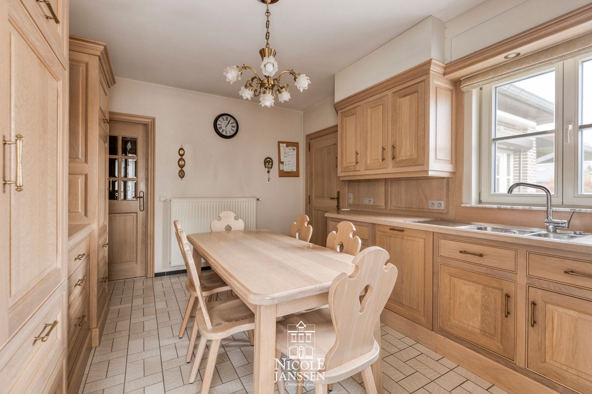 - Volledig eiken keuken voorzien van afzuigkap, koelkast, spoelbak en vaatwasser