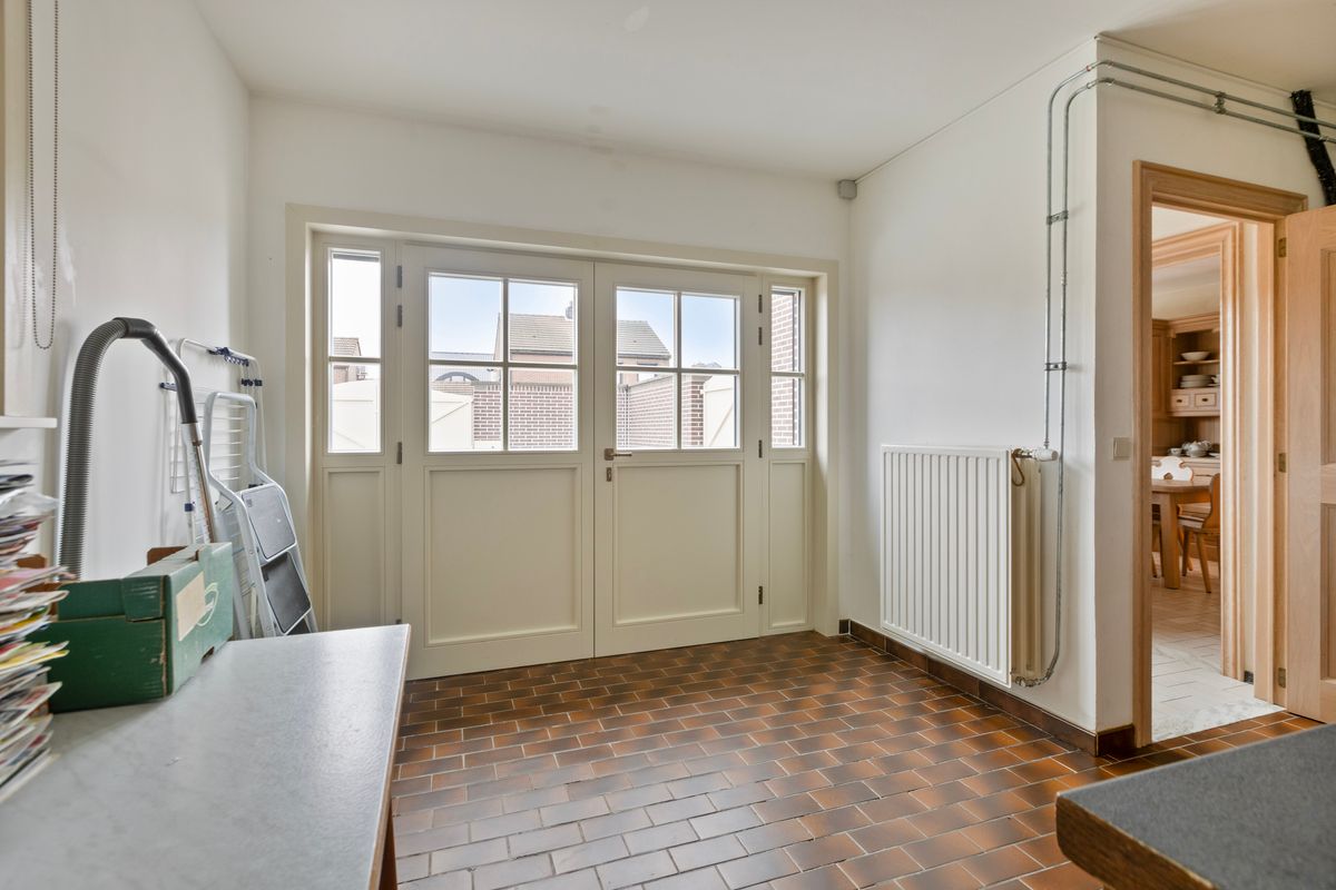 - Bijkeuken met demonteerbare kastenwand en aansluiting voor wasmachine en droogkast op hoogte
