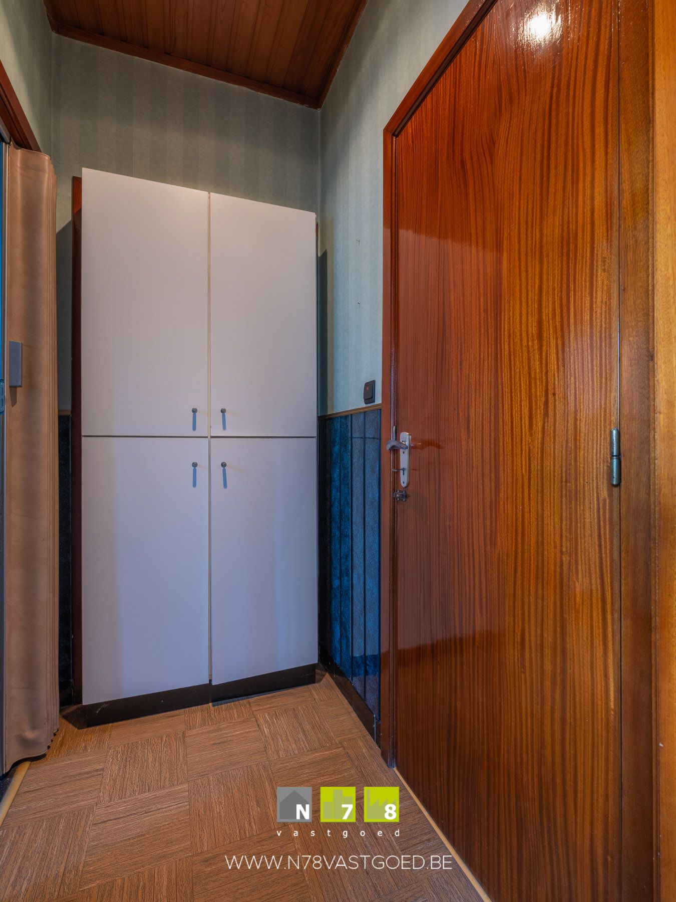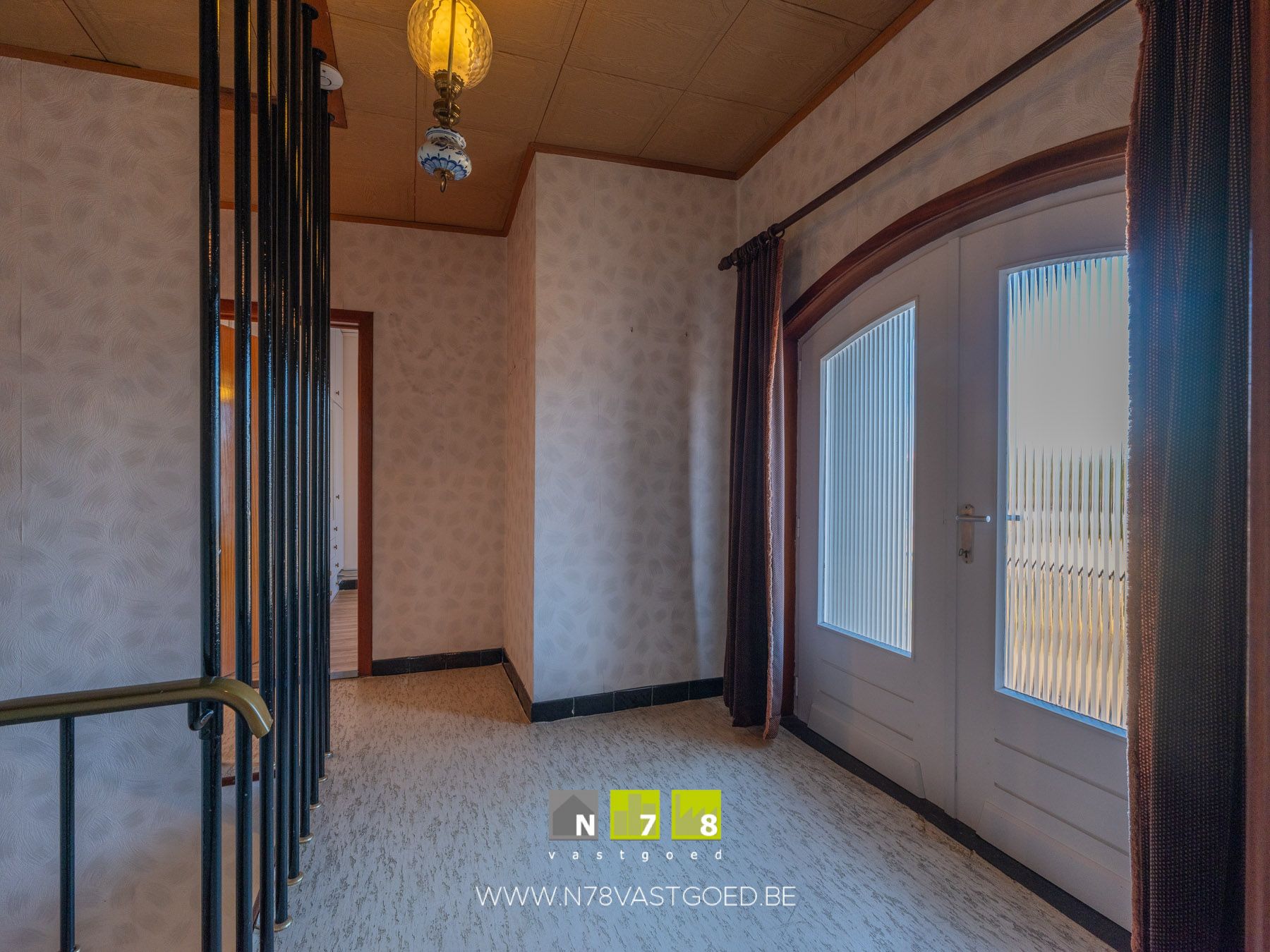 - Inkomhal (9,70m²): trap naar 1ste verdieping, tegelvloer.