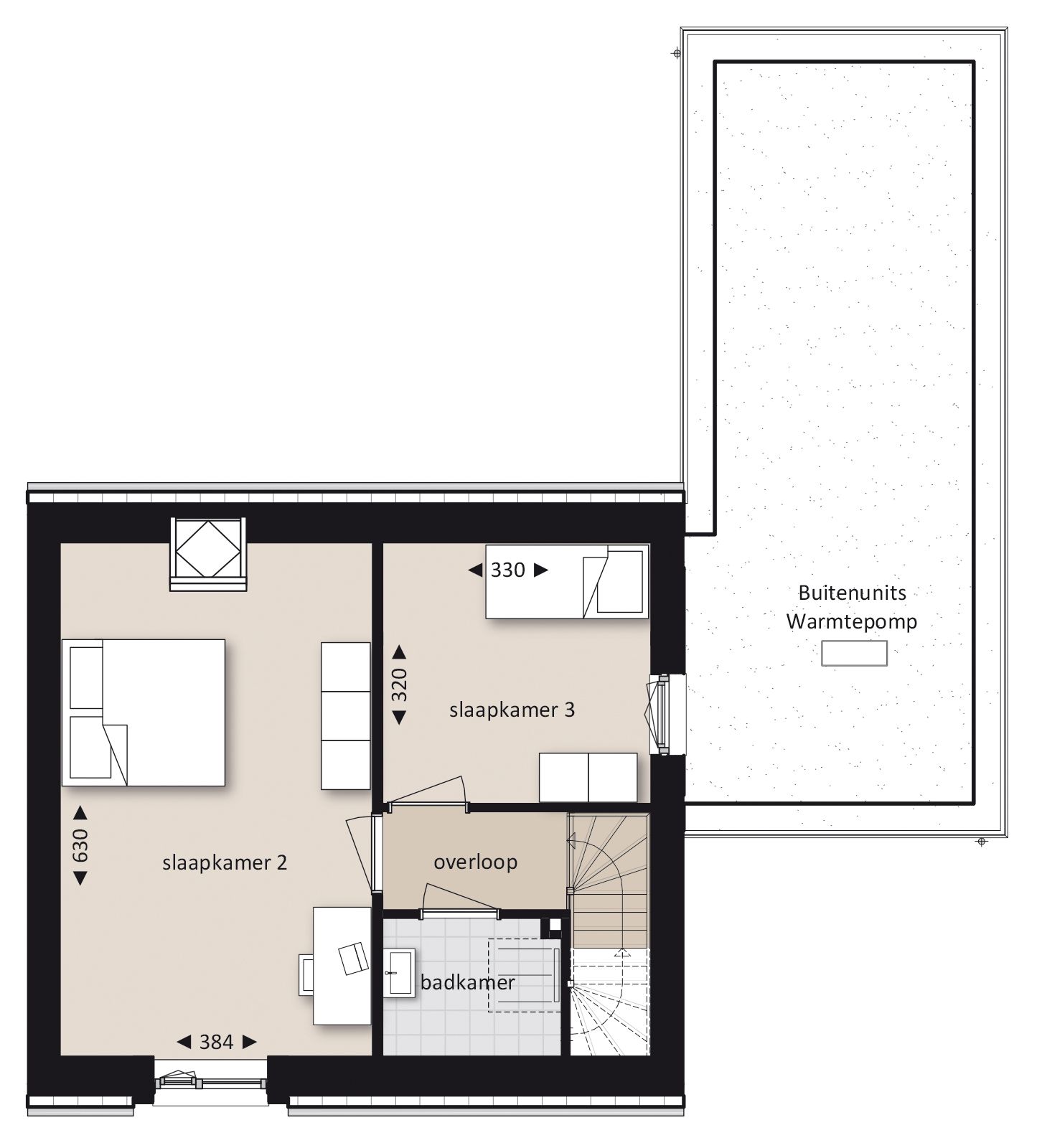 Op de eerste verdieping bevinden zich optioneel ( tegen meerwerkprijs) twee riante slaapkamers. Ideaal als extra slaapkamer voor gasten, hobbyruimte of werkplek. Erg comfortabel is zonder twijfel ook de aangrenzende badkamer met wastafel en inloopdouche.
