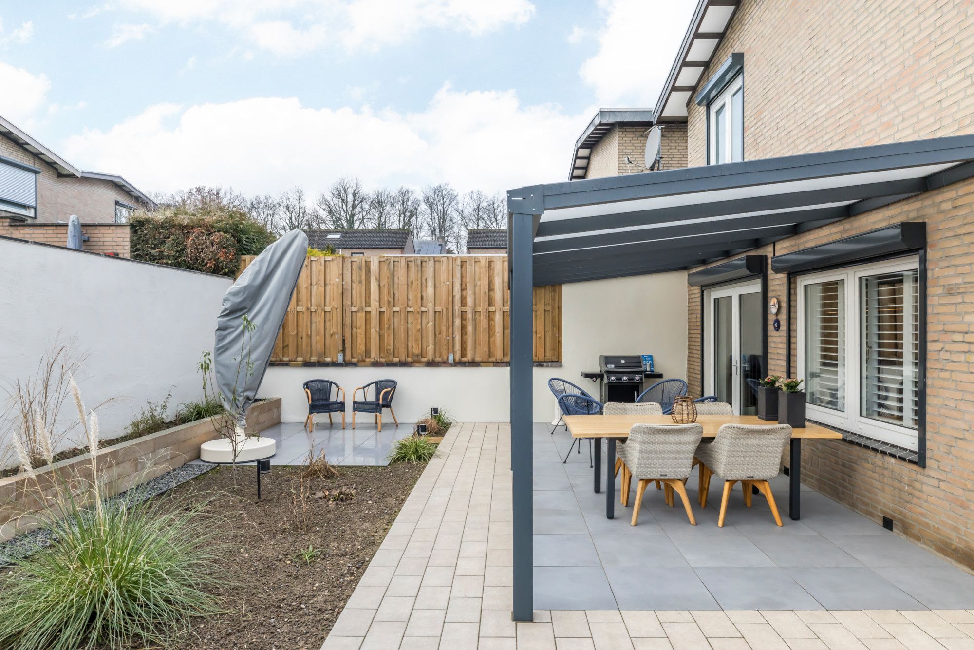 * ACHTERTUIN VOORZIEN VAN RUIM TERRAS MET OVERKAPPING EN BORDERS MET AANPLANTING
