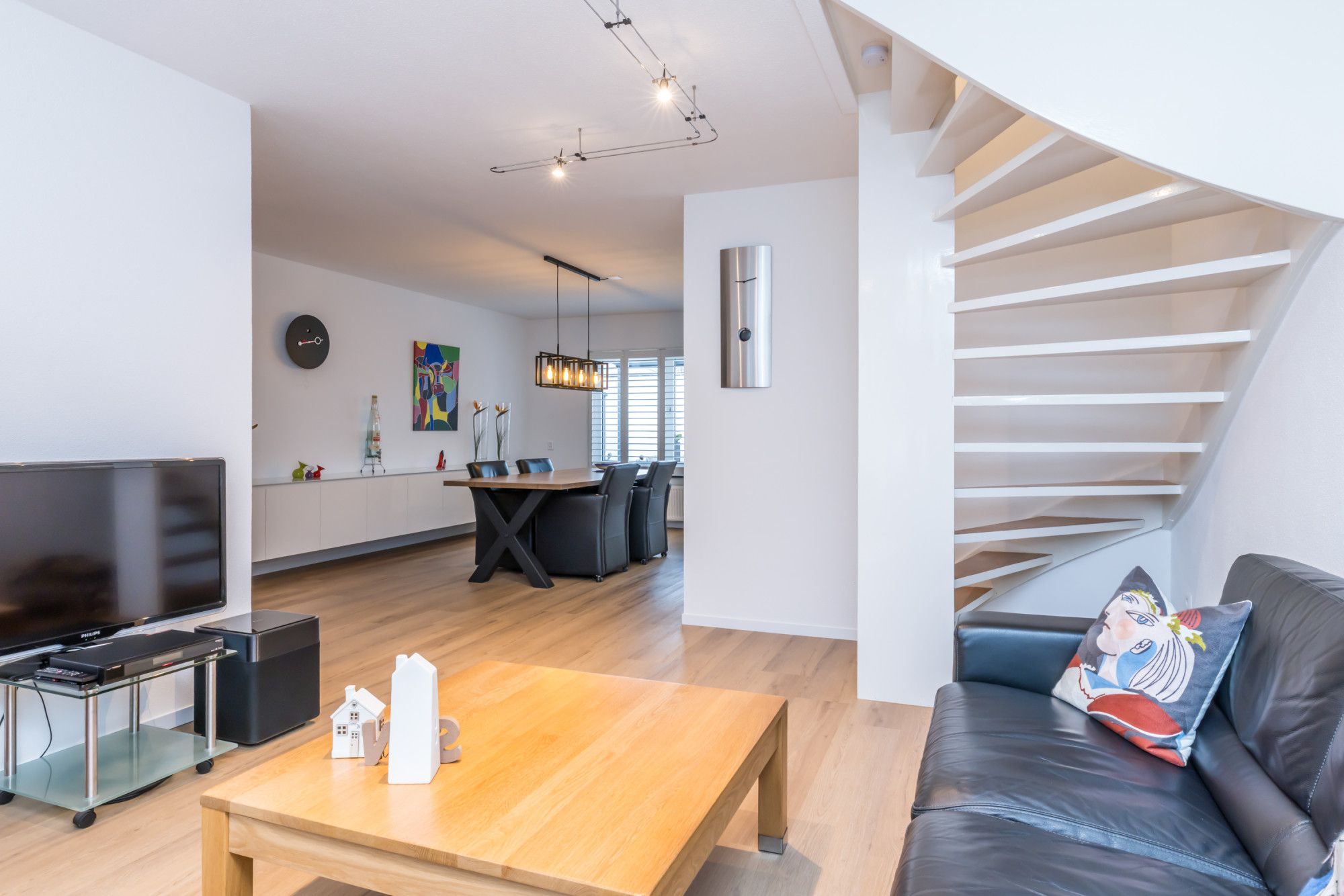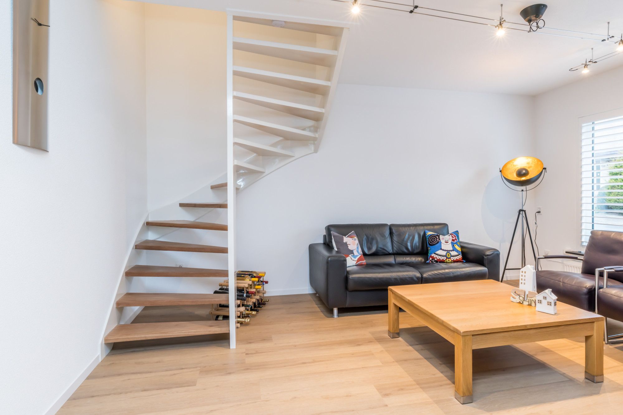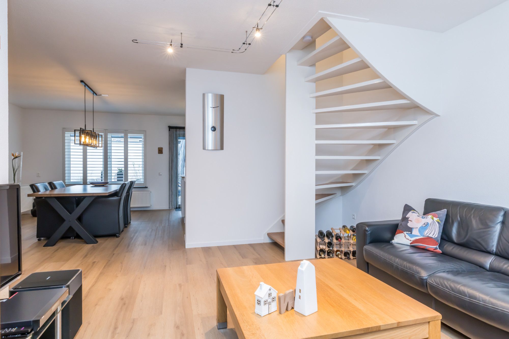Bij binnenkomst ervaart u direct de prettige sfeer. De lichte L-vormige woonkamer beschikt aan de voorzijde over een comfortabele lounge/living met multimediale aansluitingen. De stijlvolle, in de hoek geplaatste trap vormt een fraai element en geeft de ruimte extra karakter.