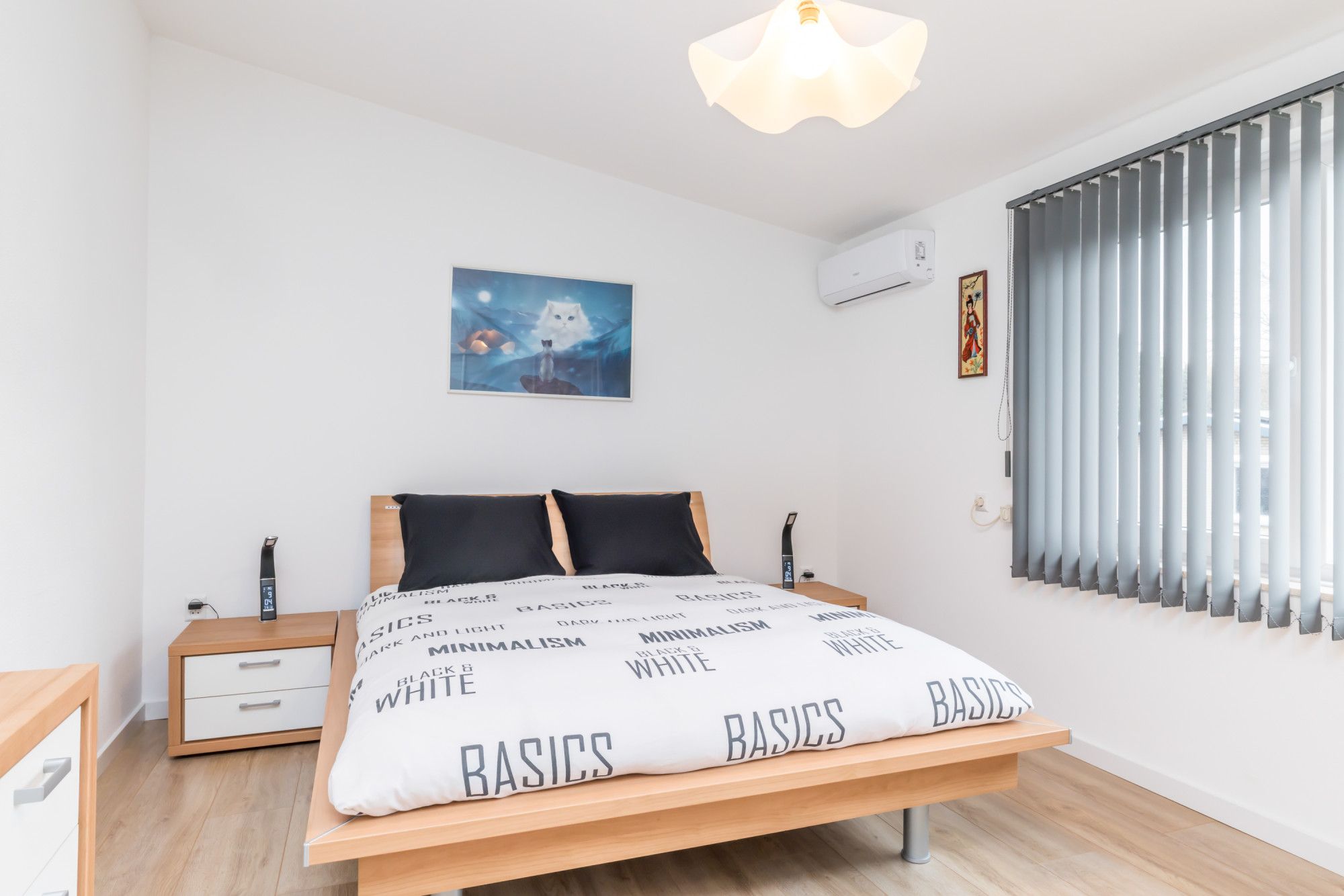 Linksvoor gelegen ruime hoofdslaapkamer voorzien van een airconditioningsinstallatie. De achtergelegen slaapkamer doet dienst als kleedkamer.