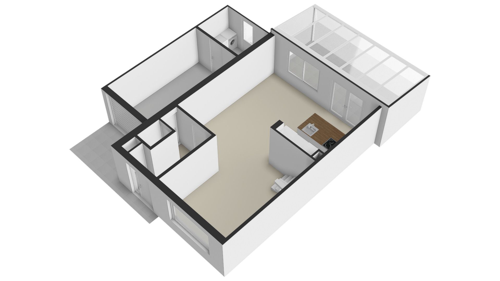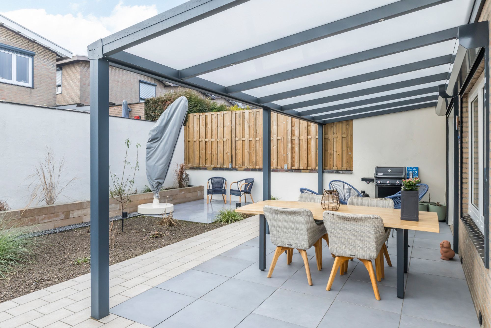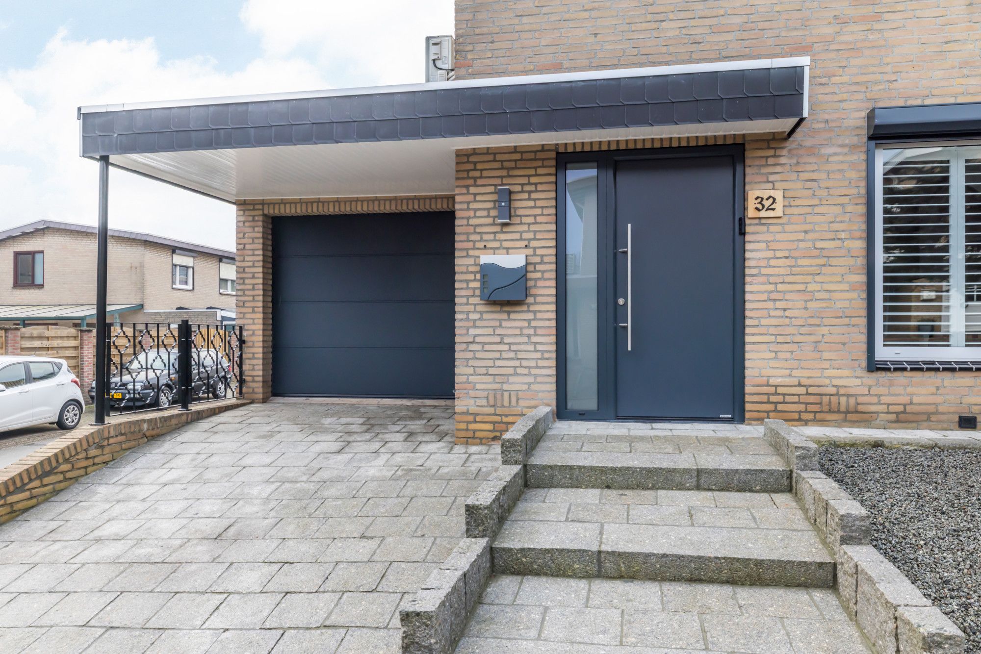 De inpandig bereikbare garage is voorzien van een elektrisch bedienbare sectionaalpoort. In de achtergelegen wasruimte zijn de witgoedaansluitingen voor wasmachine en droger gesitueerd en via een loopdeur is de achtertuin bereikbaar. Aan de voorzijde beschikt de woning over een oprit met carport, waardoor parkeren op eigen terrein mogelijk is.