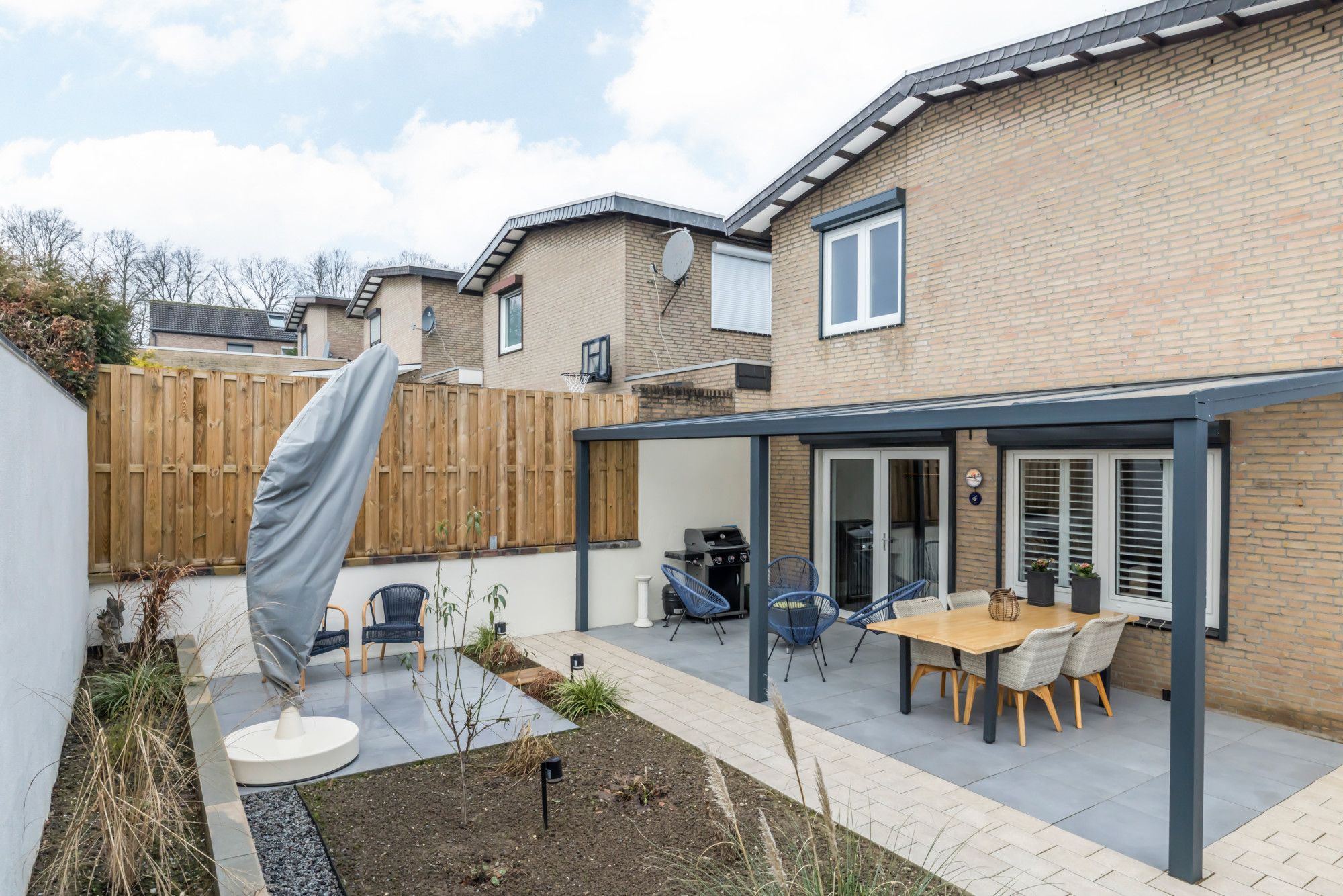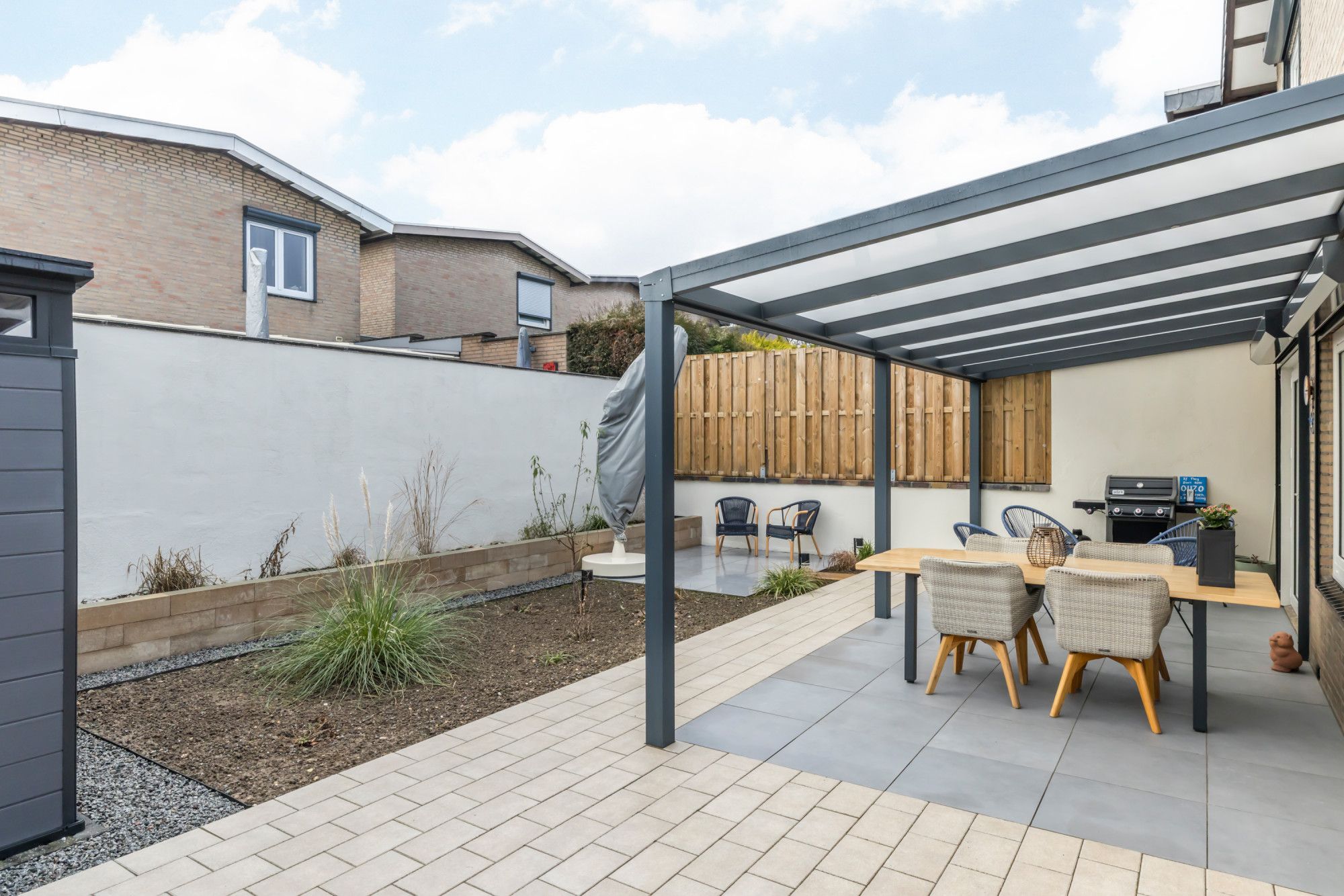 De geheel omsloten, fraai aangelegde achtertuin is gelegen op het zuiden en onderhoudsvriendelijk ingericht met een royaal overdekt terras, gezellige zithoek, borders met aanplanting en een vrijstaande tuinberging. De tuin is tevens bereikbaar via een praktische zijingang.